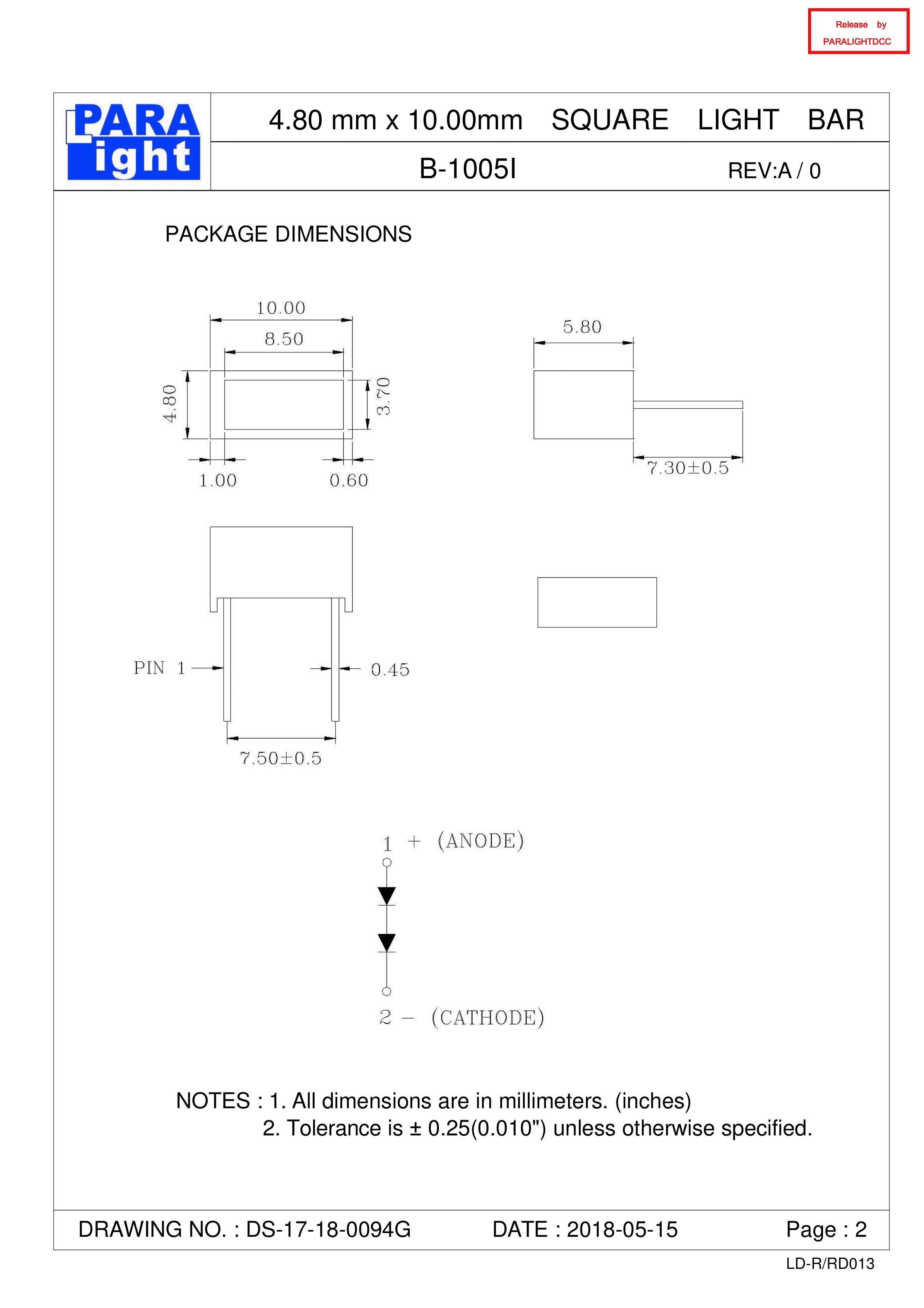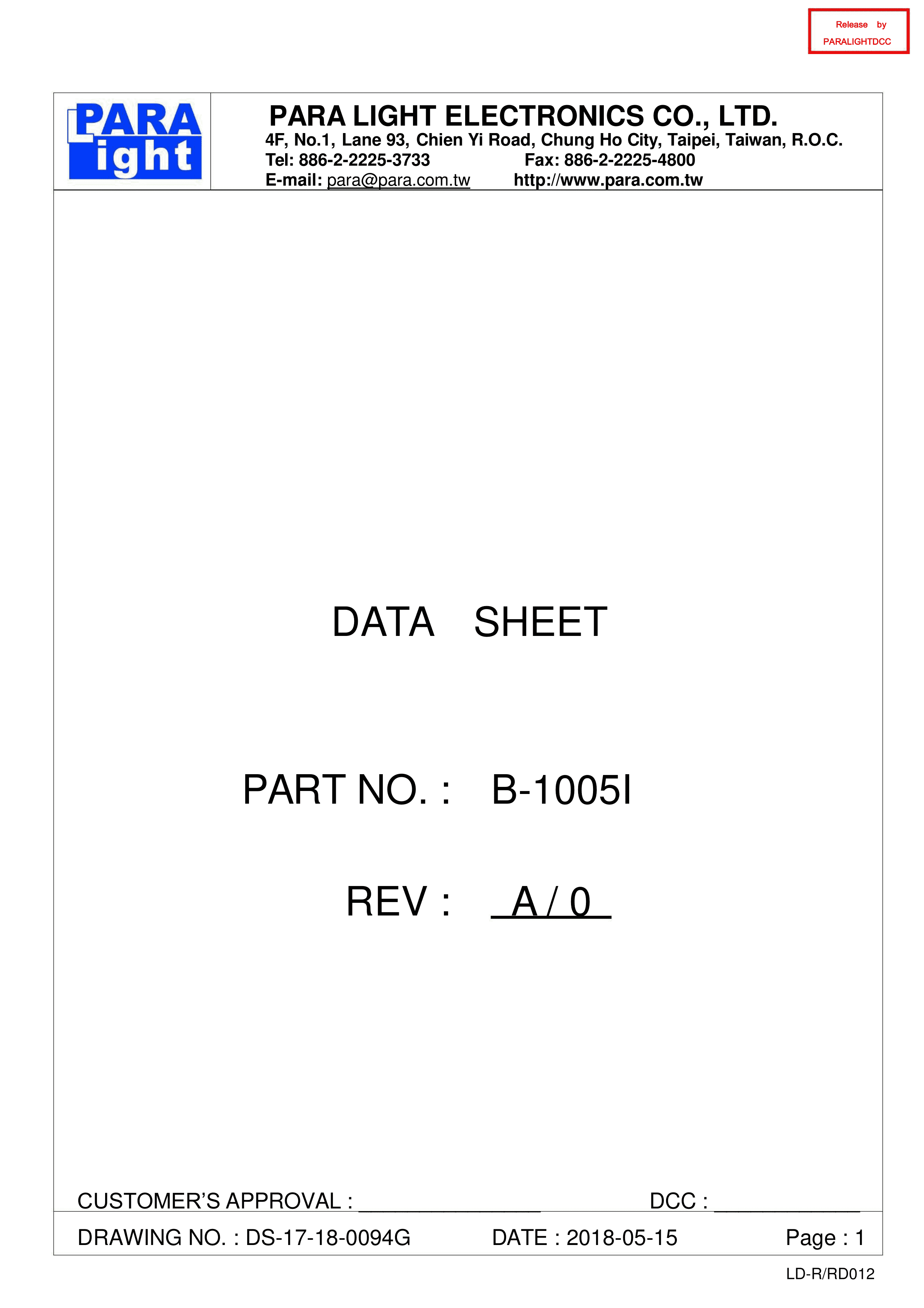 B-1005I数据手册插件封装PARALIGHT(台湾光鼎)PDF规格书,中英文下载