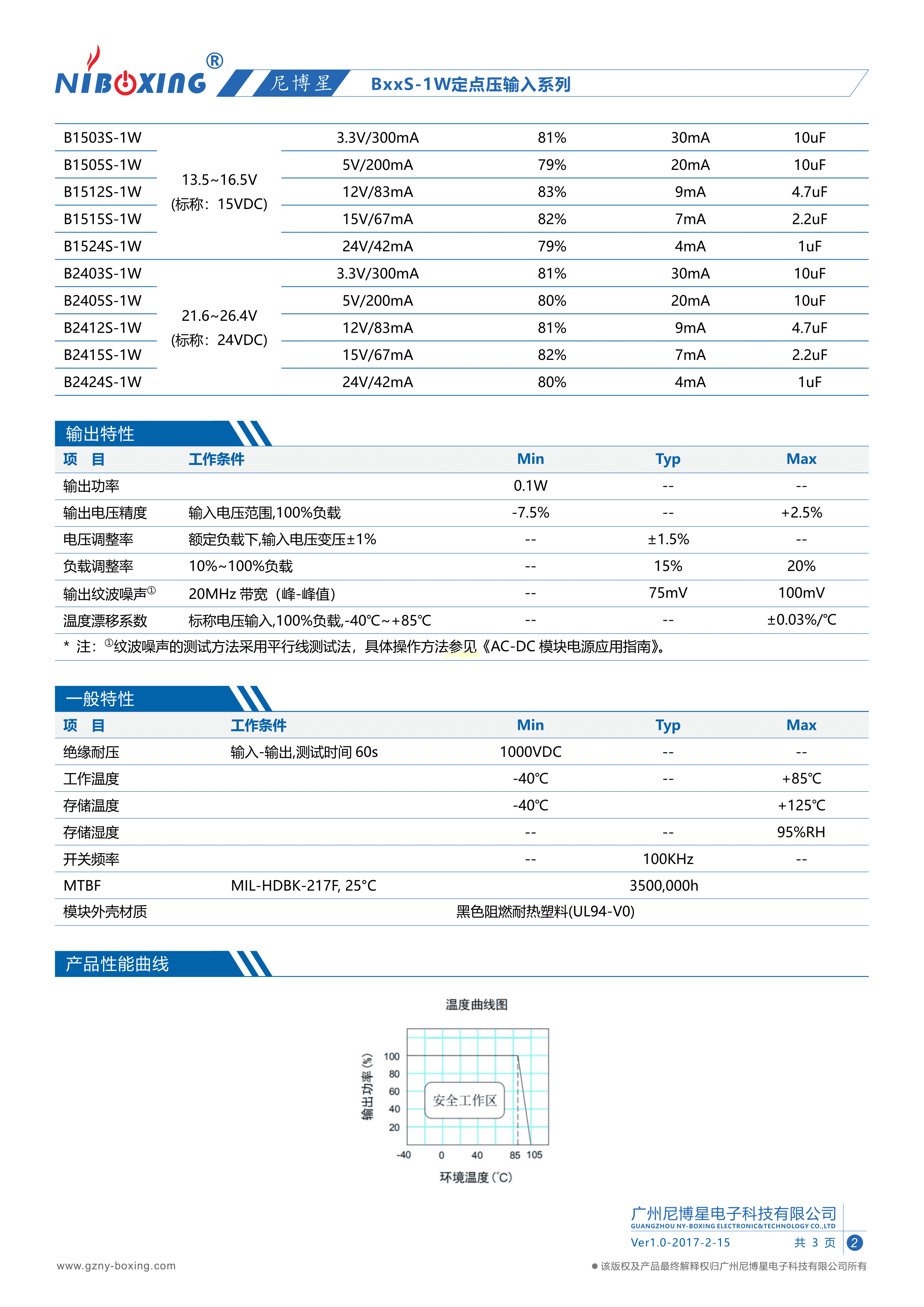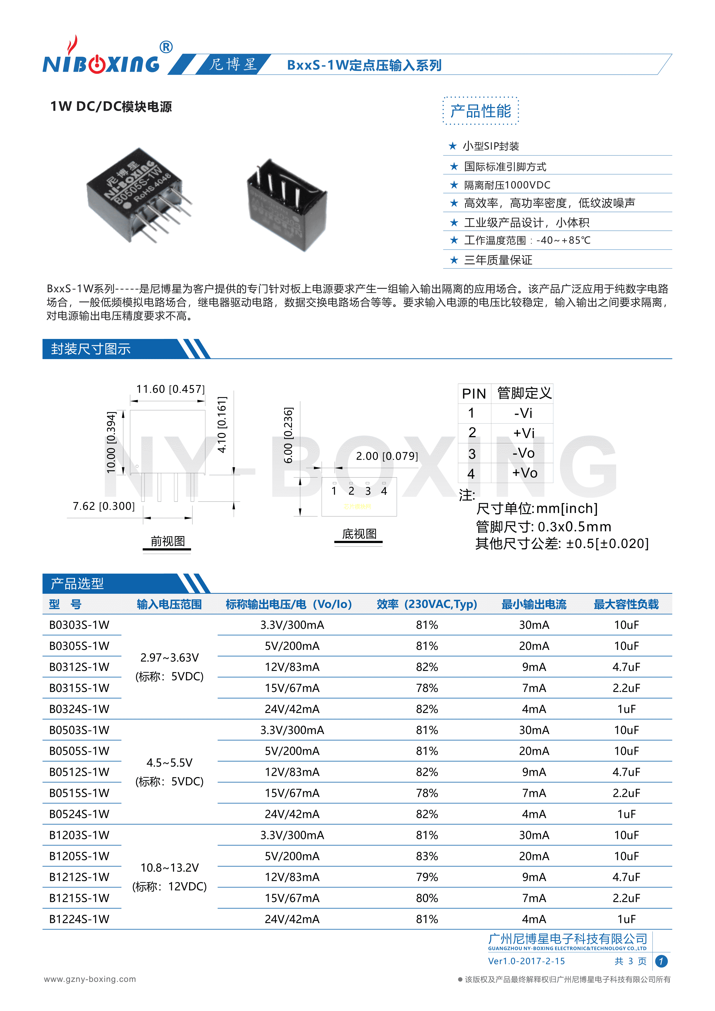B0505S-1W数据手册插件封装NYBOXING(尼博星)PDF规格书,中英文下载