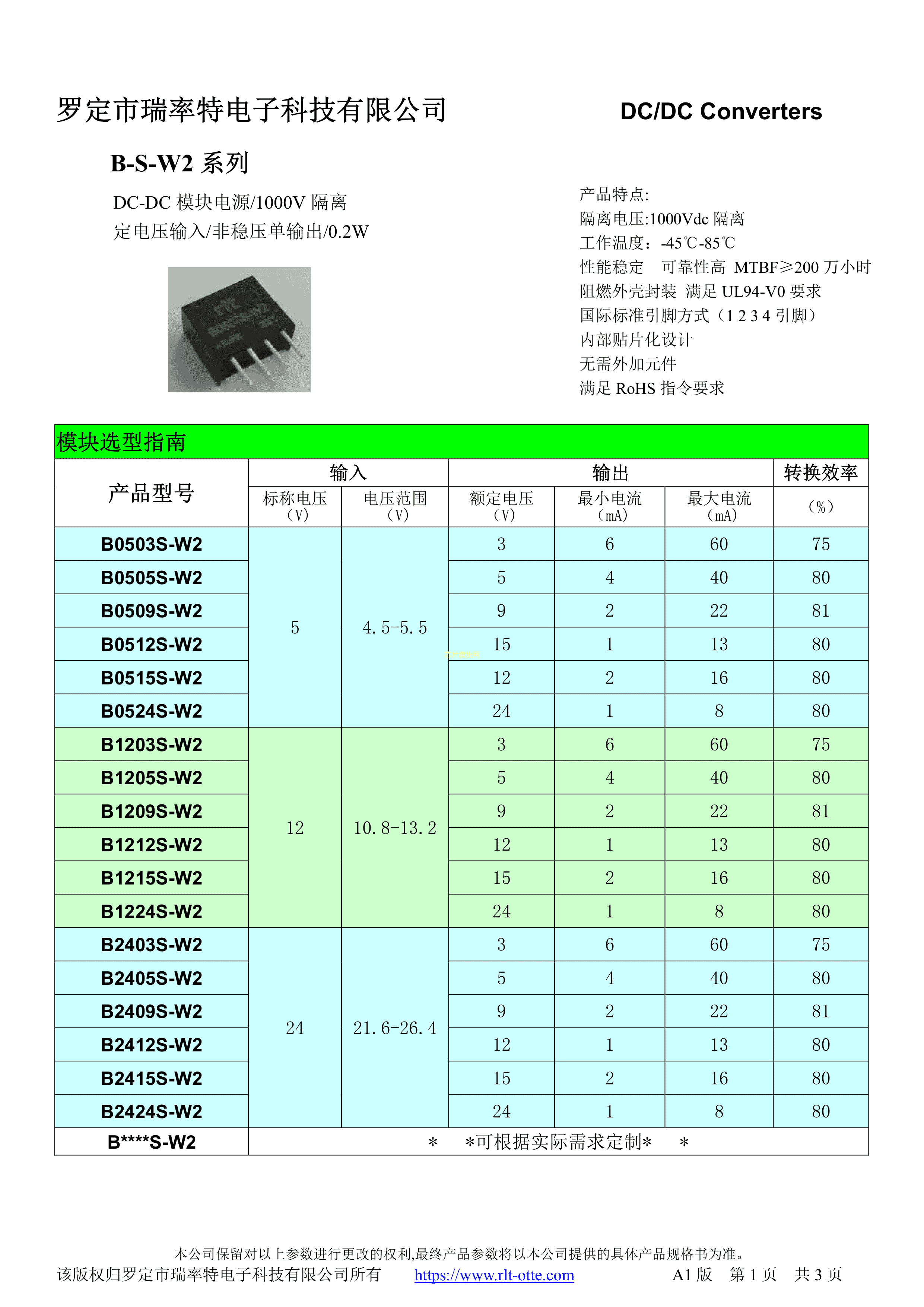 B0505S-W2数据手册插件封装rltPDF规格书,中英文下载
