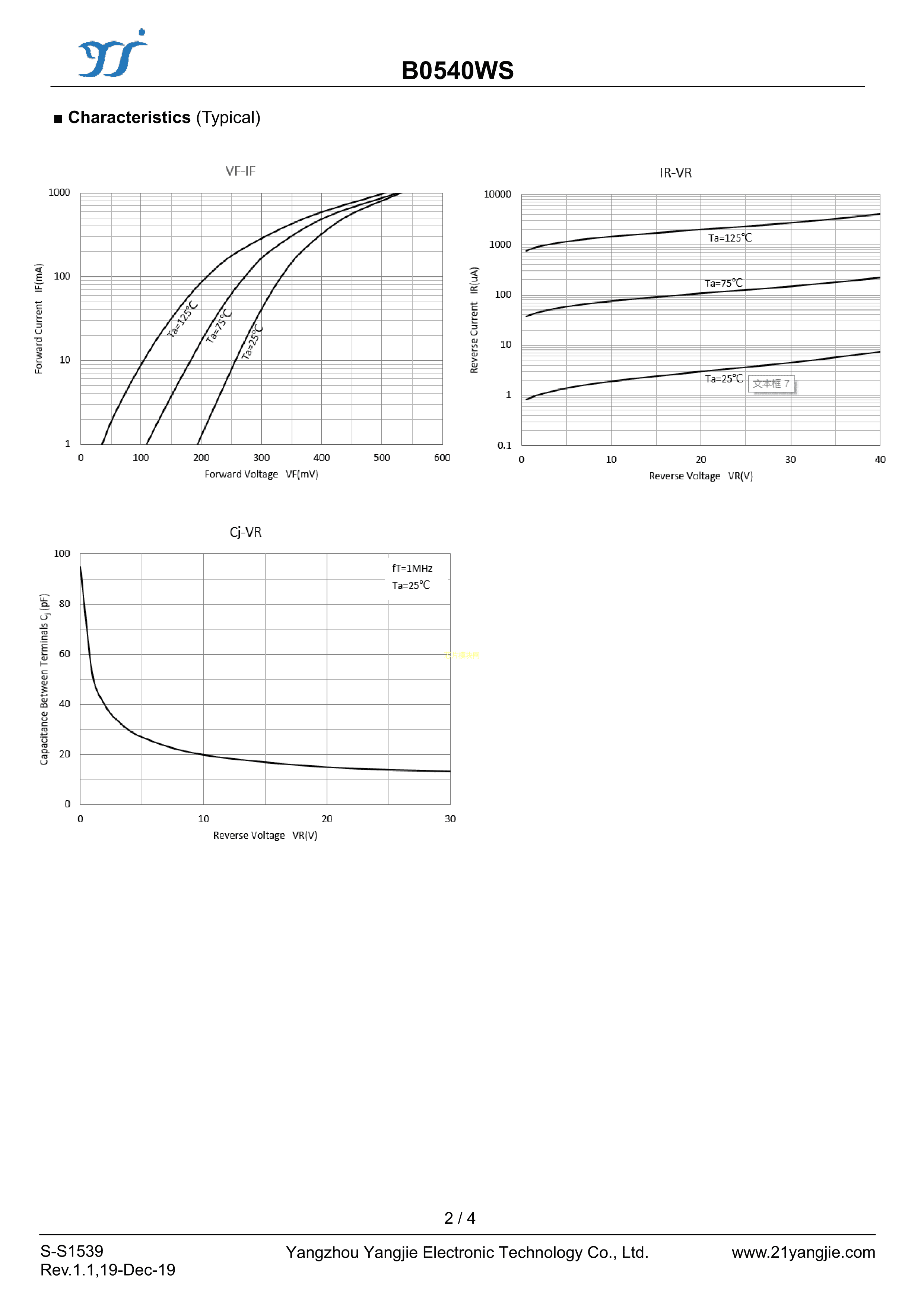 B0540WS数据手册SOD-323封装YANGJIE(扬杰)PDF规格书,中英文下载