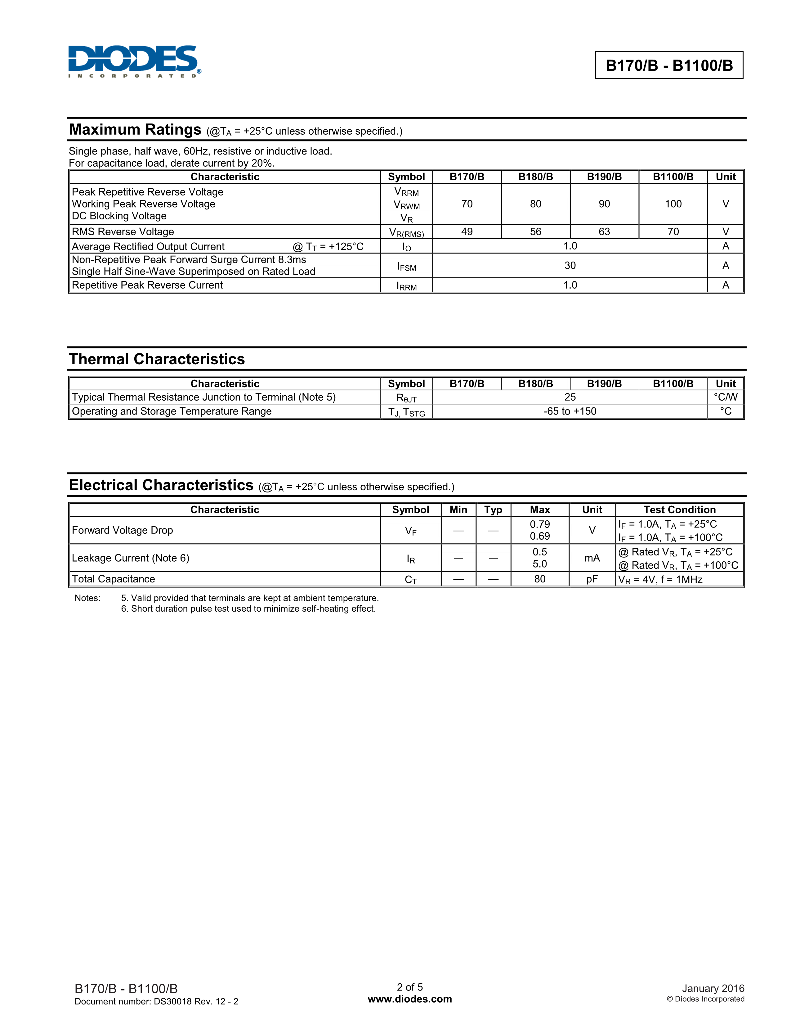 B1100B-13-F数据手册SMB(DO-214AA)封装DIODES(美台)PDF规格书,中英文
