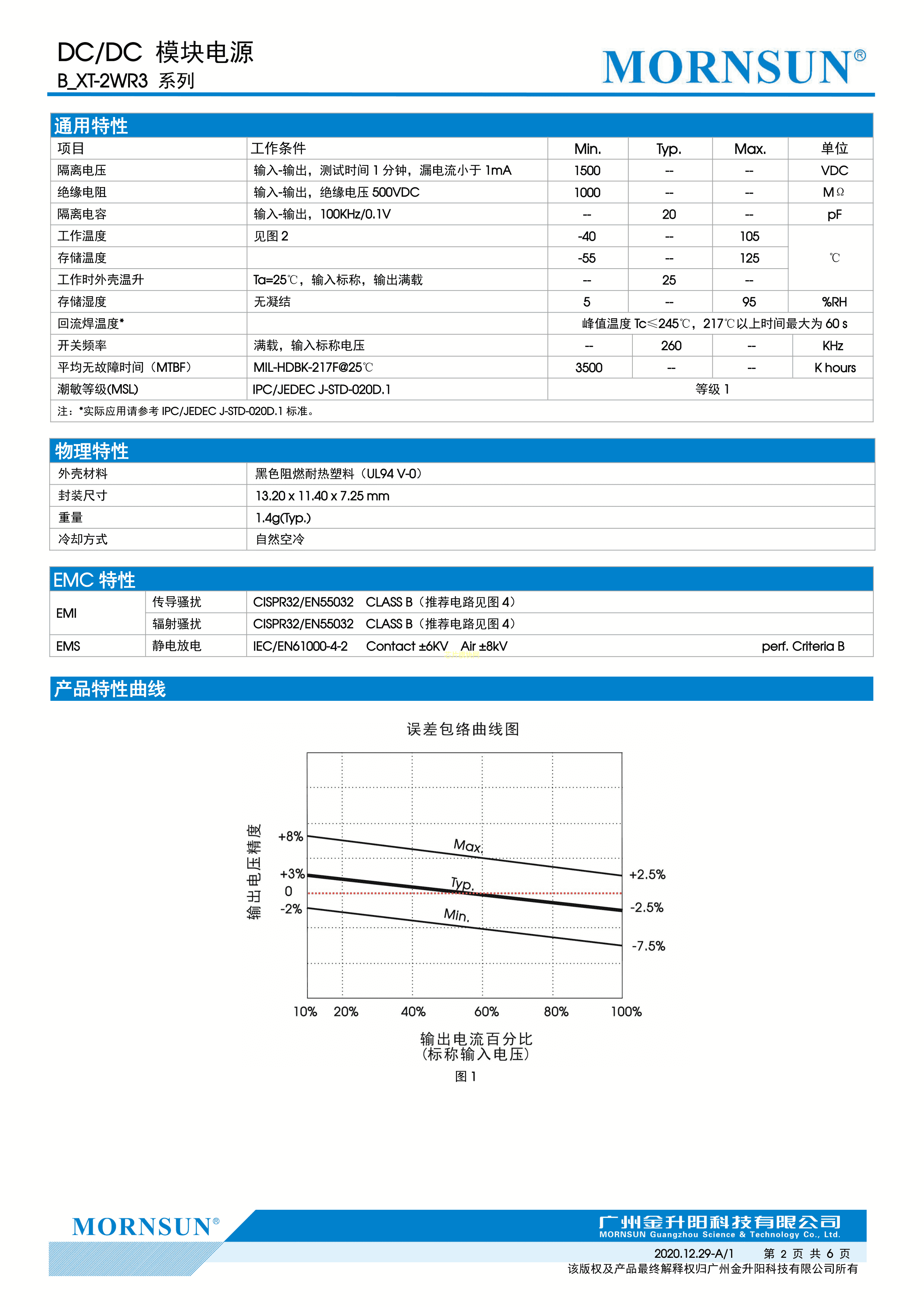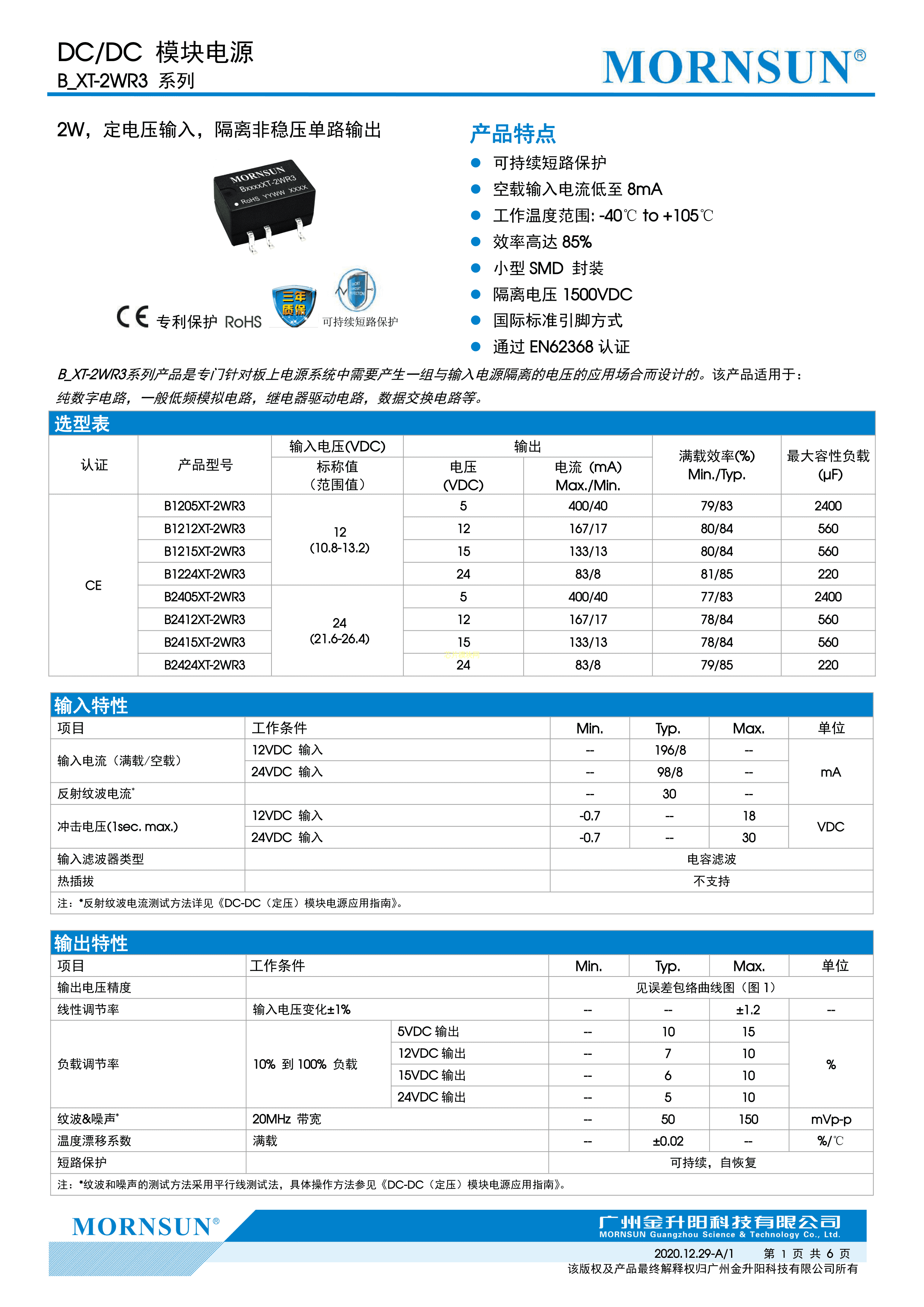 B1212XT-2WR3数据手册SMD封装MORNSUN(金升阳)PDF规格书,中英文下载
