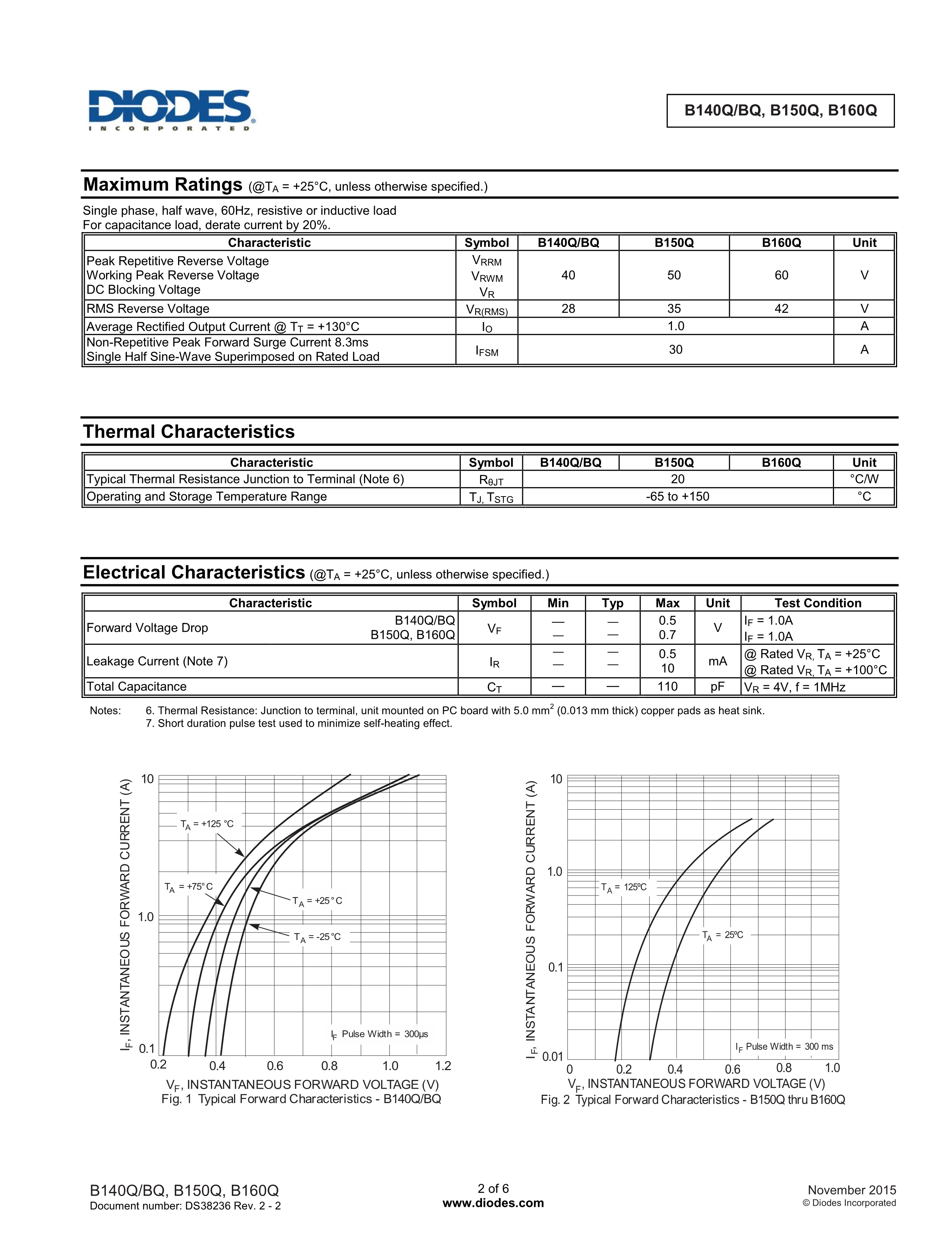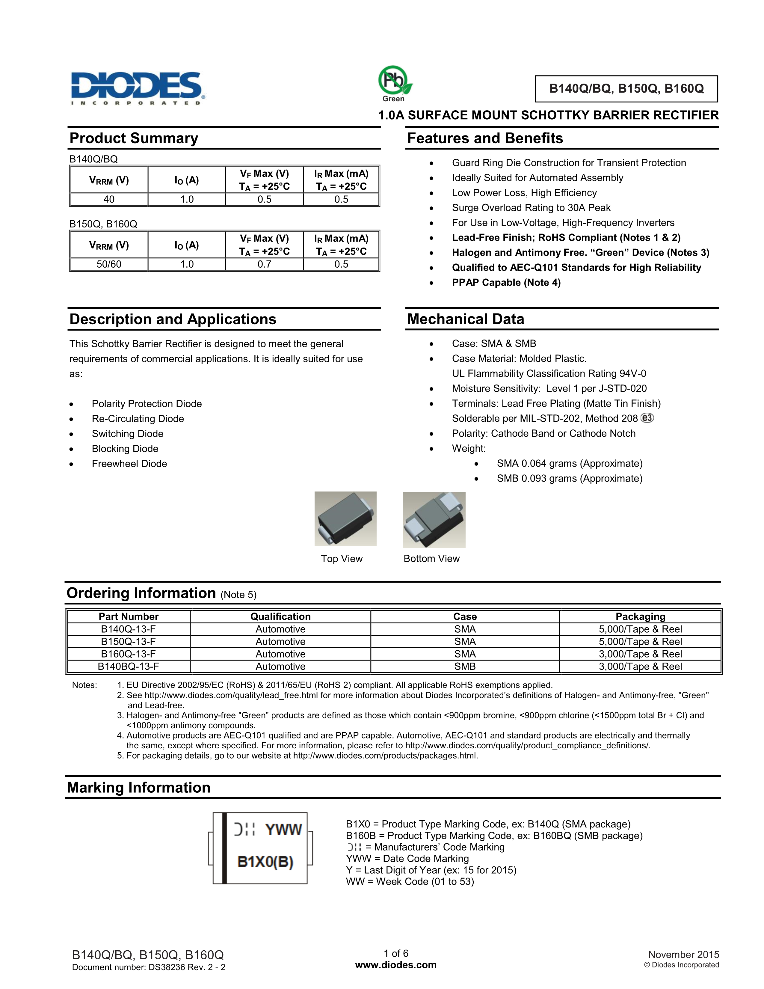 B140Q-13-F数据手册SMA(DO-214AC)封装DIODES(美台)PDF规格书,中英文下