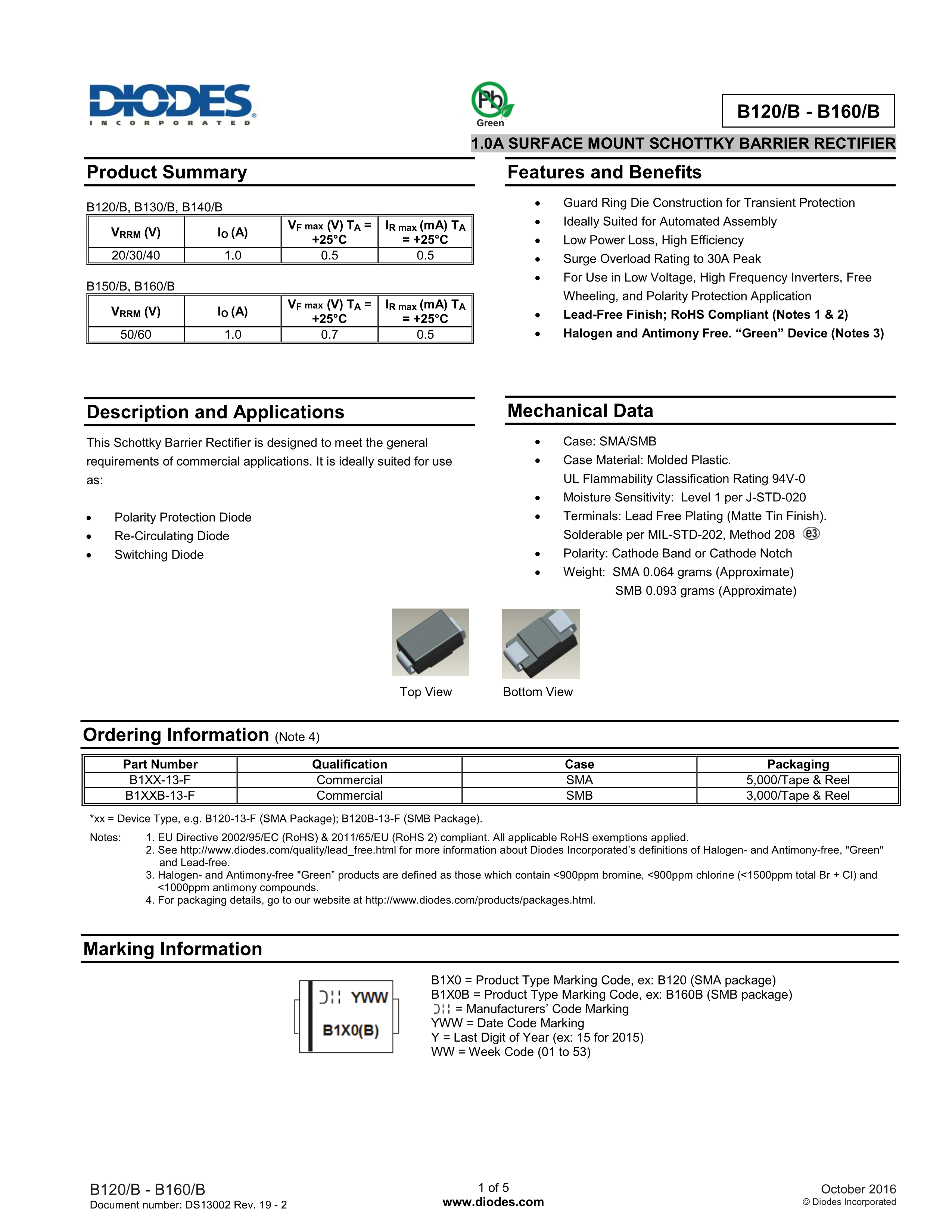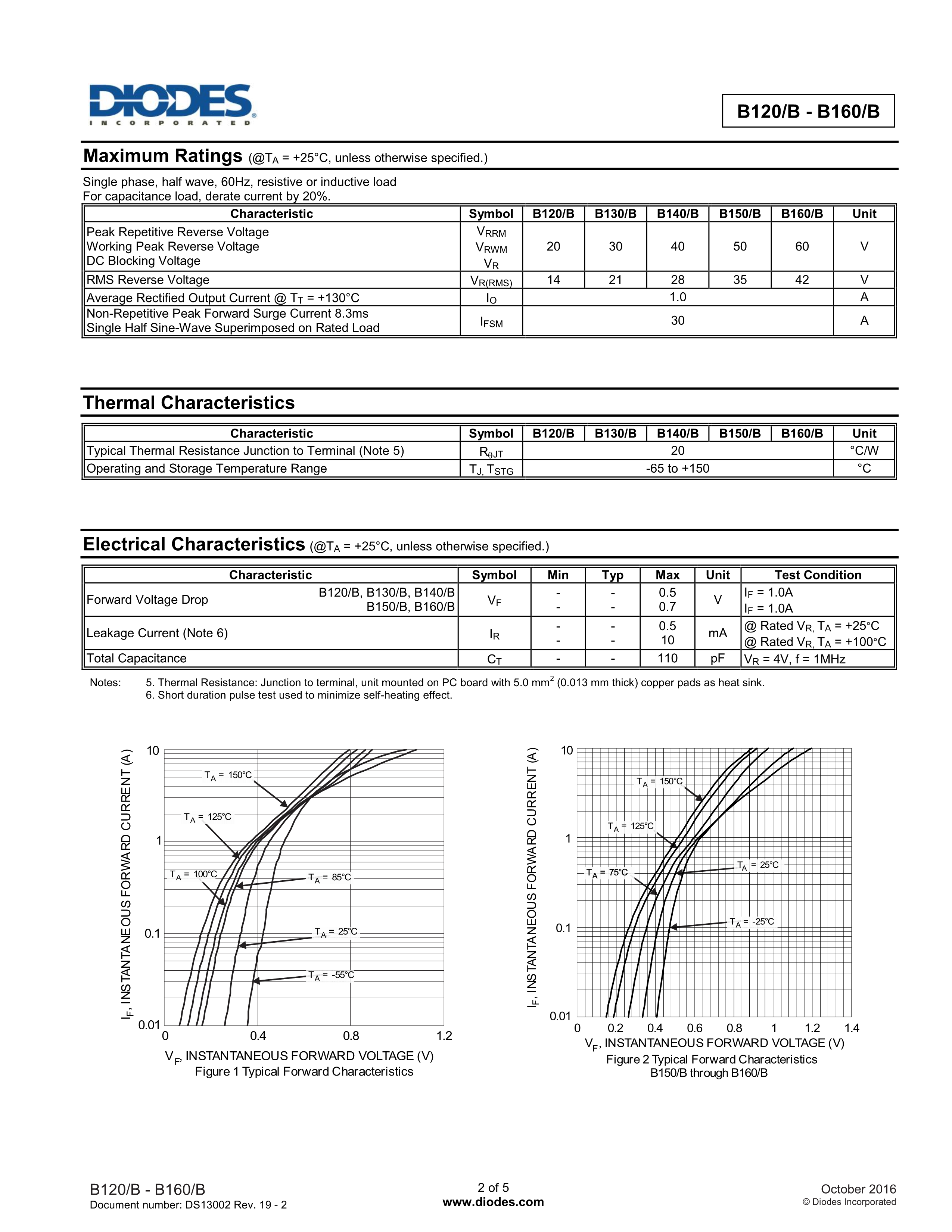 B150-13-F数据手册SMA(DO-214AC)封装DIODES(美台)PDF规格书,中英文下载