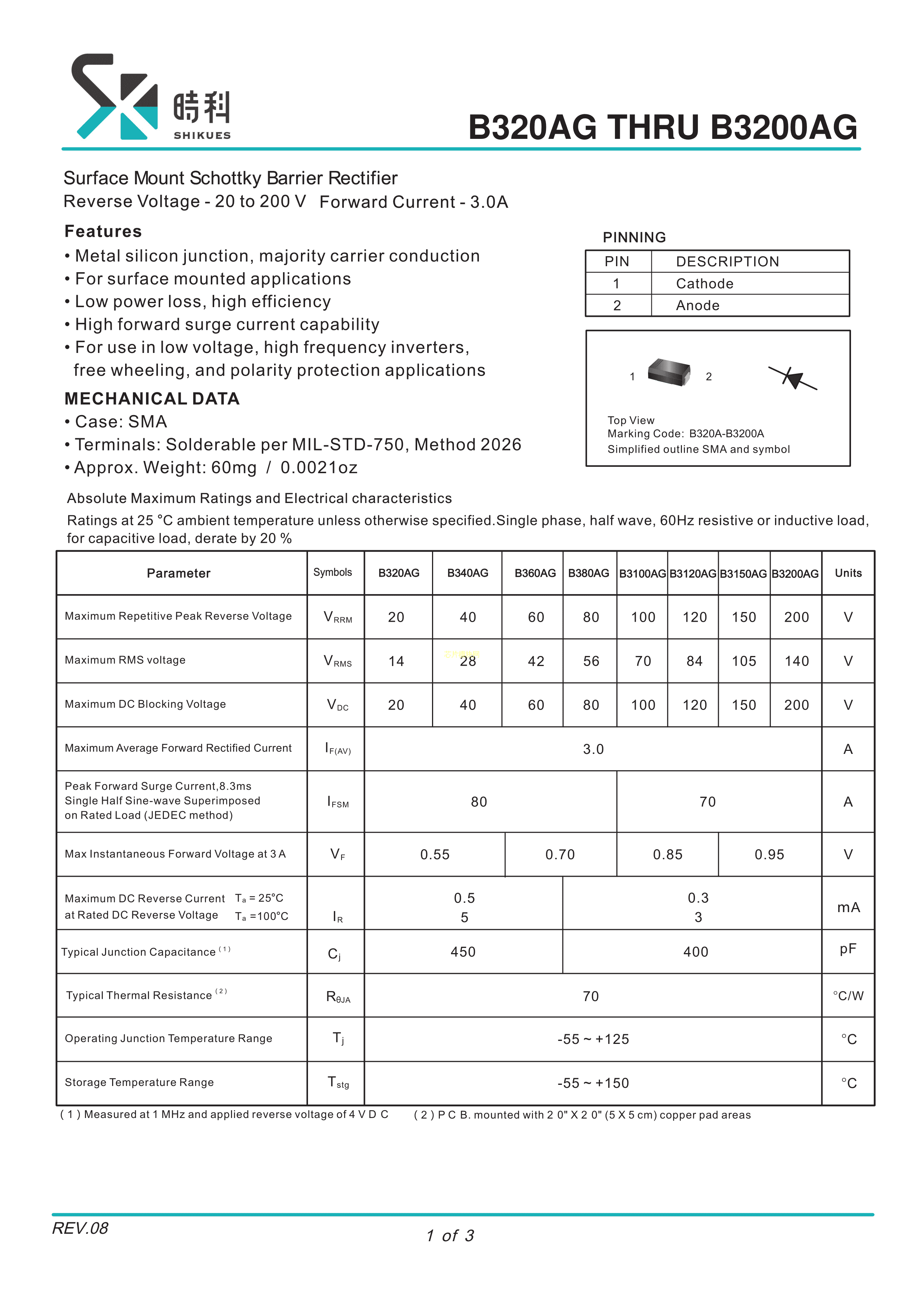 B340AG数据手册SMA封装SHIKUES(时科)PDF规格书,中英文下载