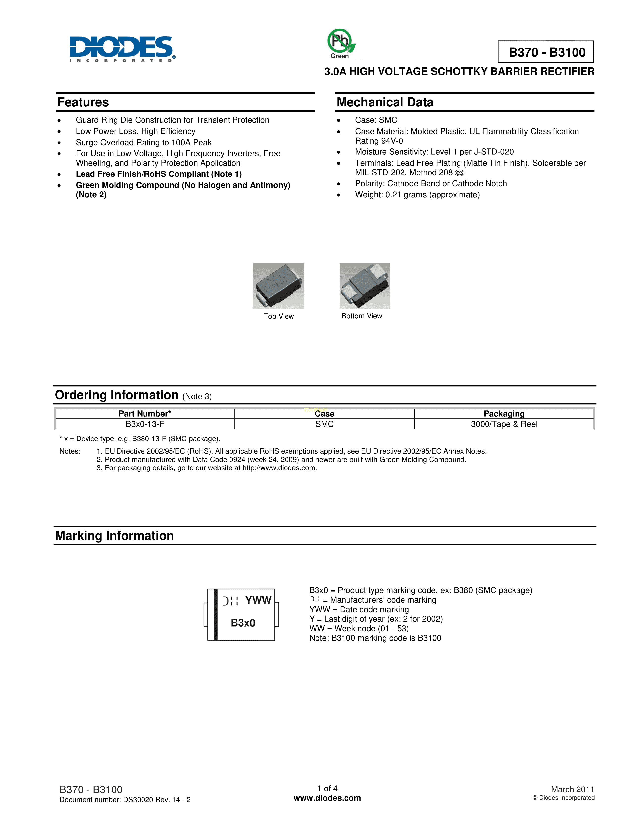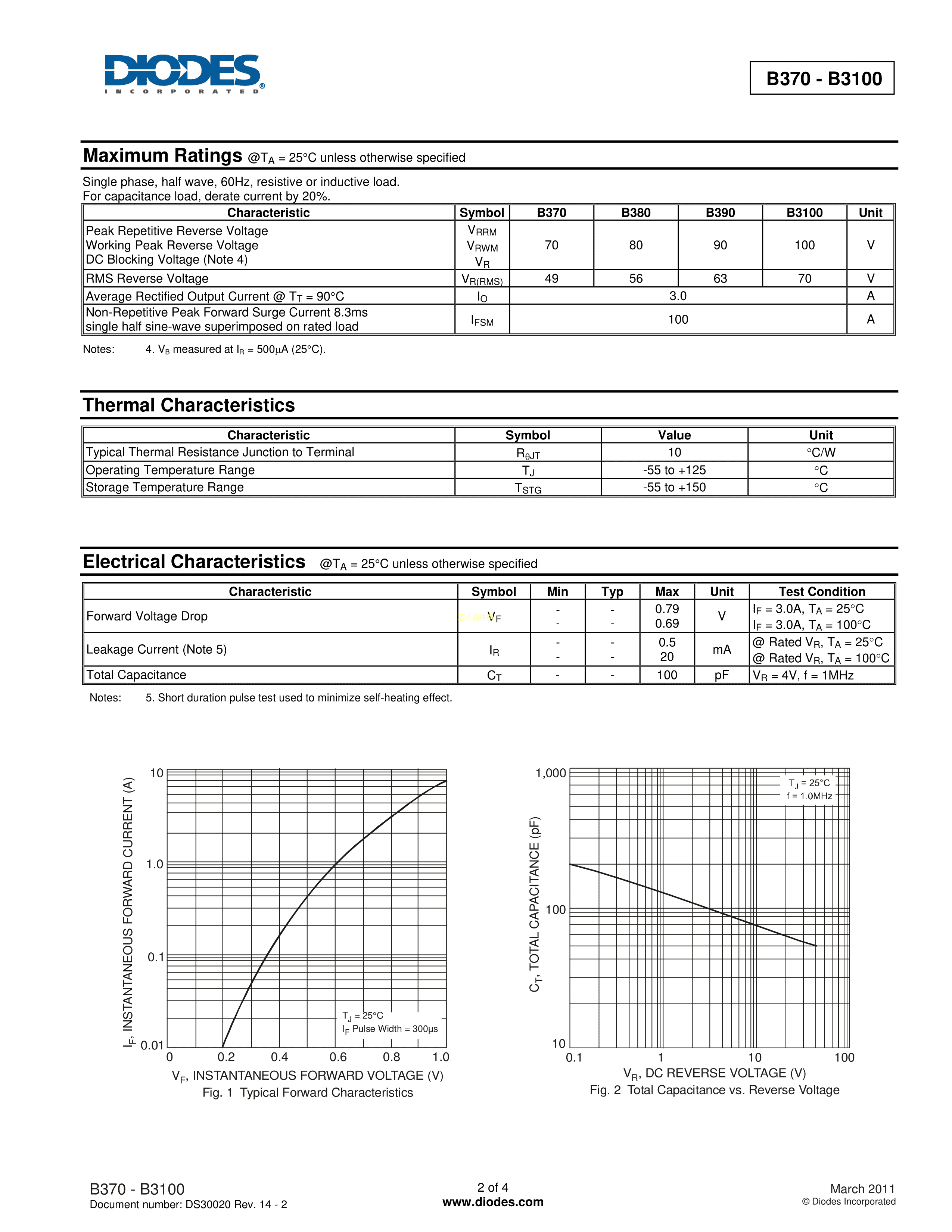 B390-13-F数据手册SMC(DO-214AB)封装DIODES(美台)PDF规格书,中英文下载