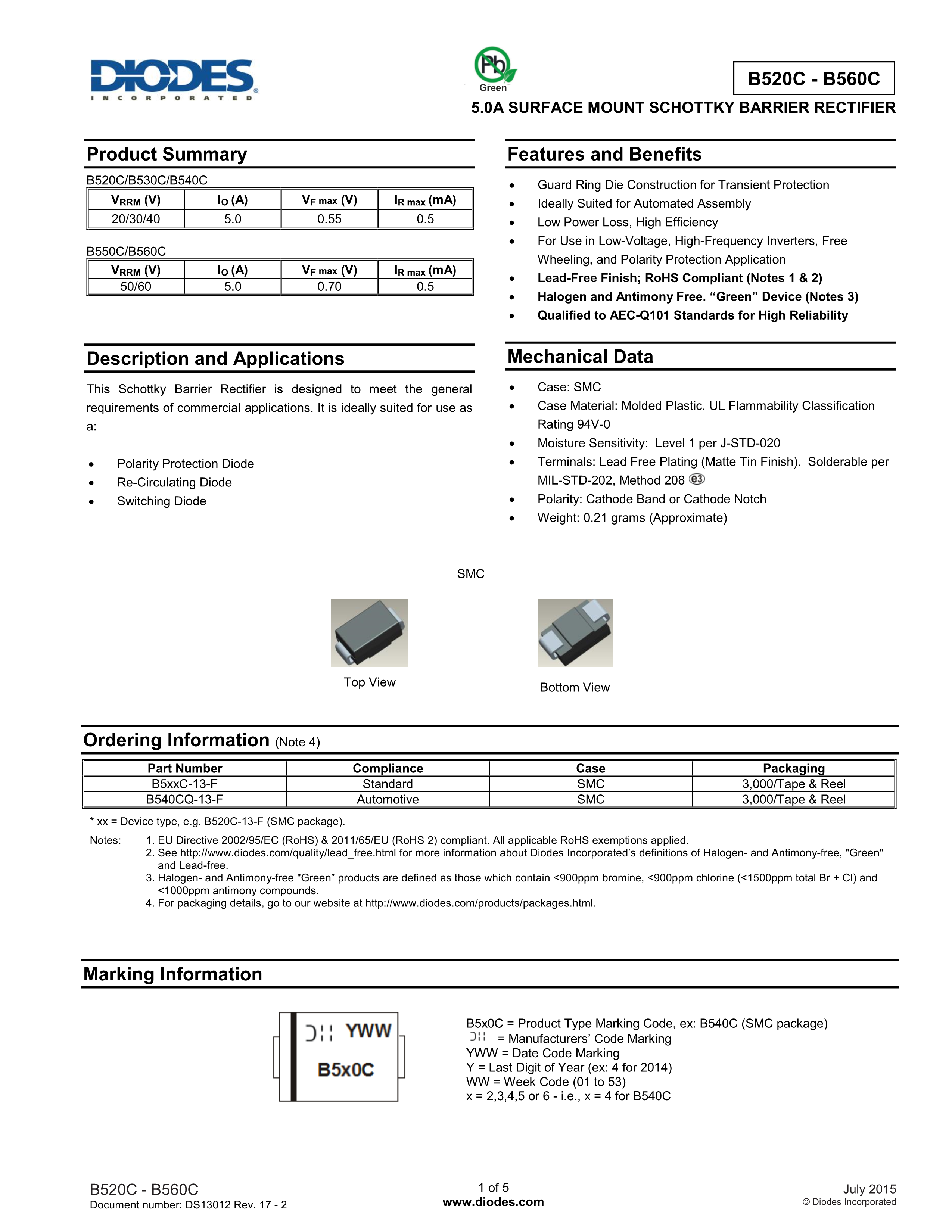 B550C-13-F数据手册SMC(DO-214AB)封装DIODES(美台)PDF规格书,中英文下
