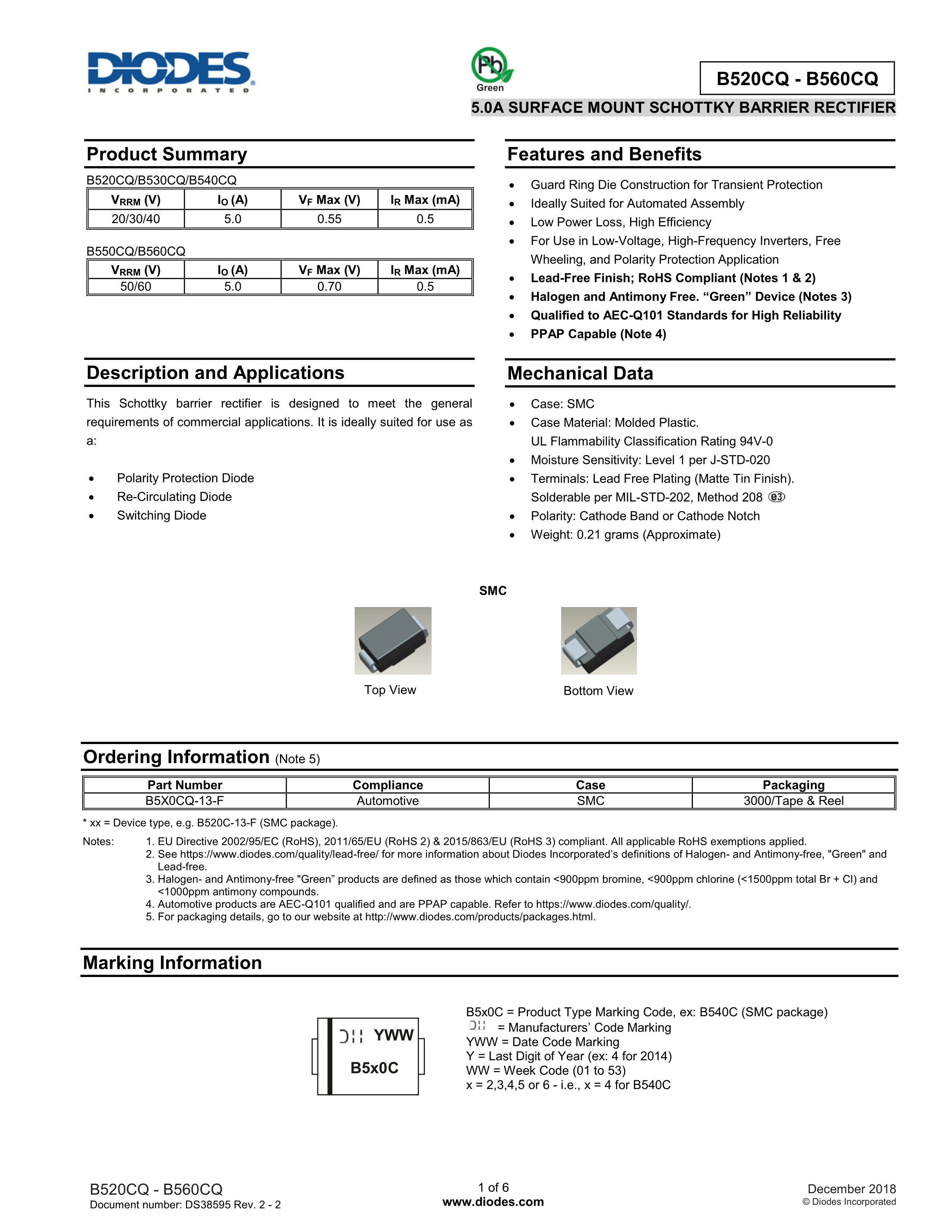 B560CQ-13-F数据手册SMC封装DIODES(美台)PDF规格书,中英文下载