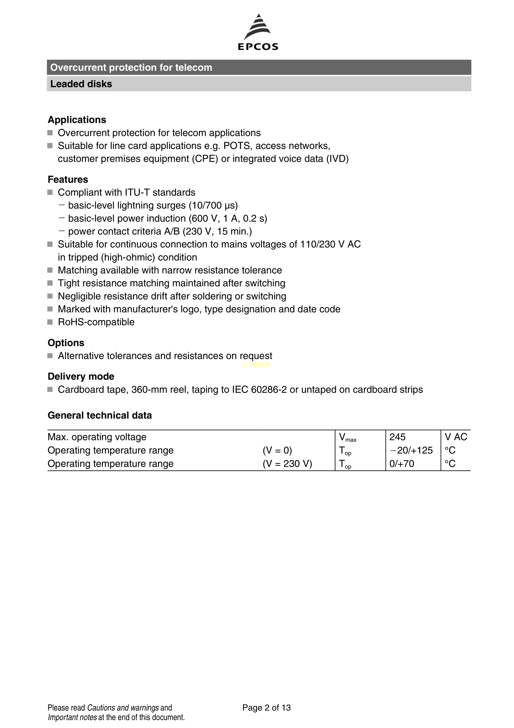 B59069B1120A051数据手册径向引线P5mm封装TDKPDF规格书,中英文下载