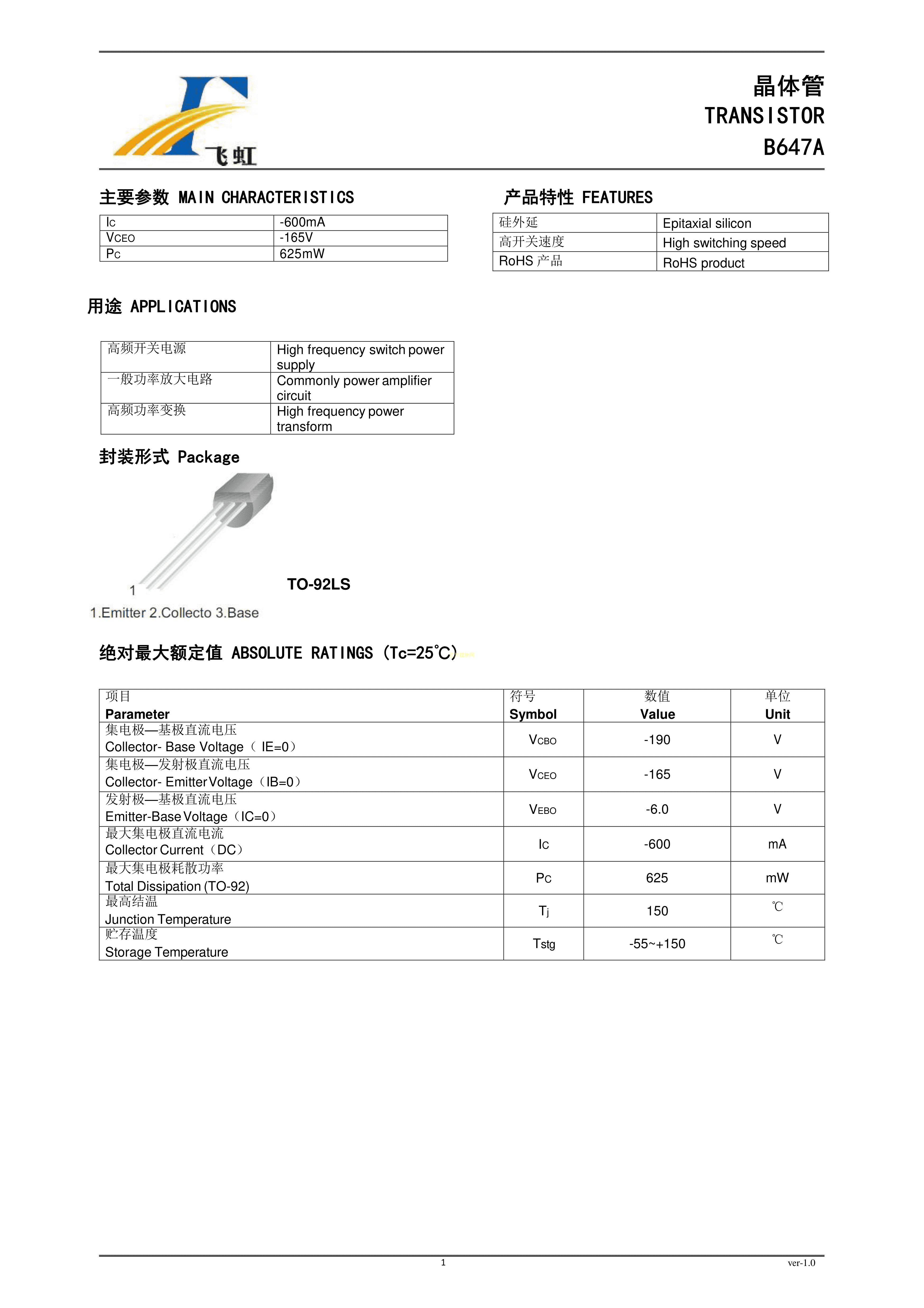 B647A数据手册TO-92LS封装FeiHong(飞虹)PDF规格书,中英文下载