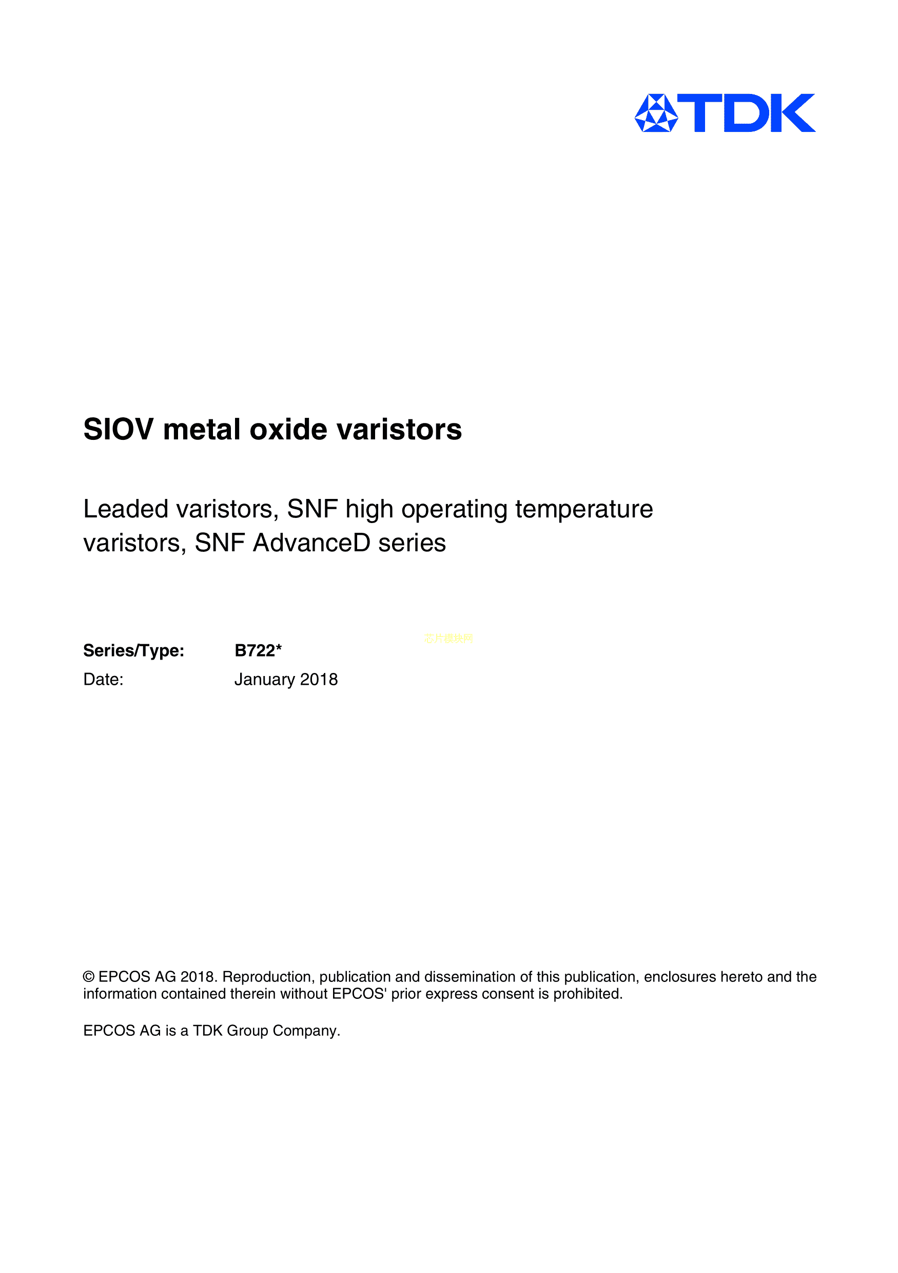 B72207U2271K501数据手册径向引线封装TDKPDF规格书,中英文下载