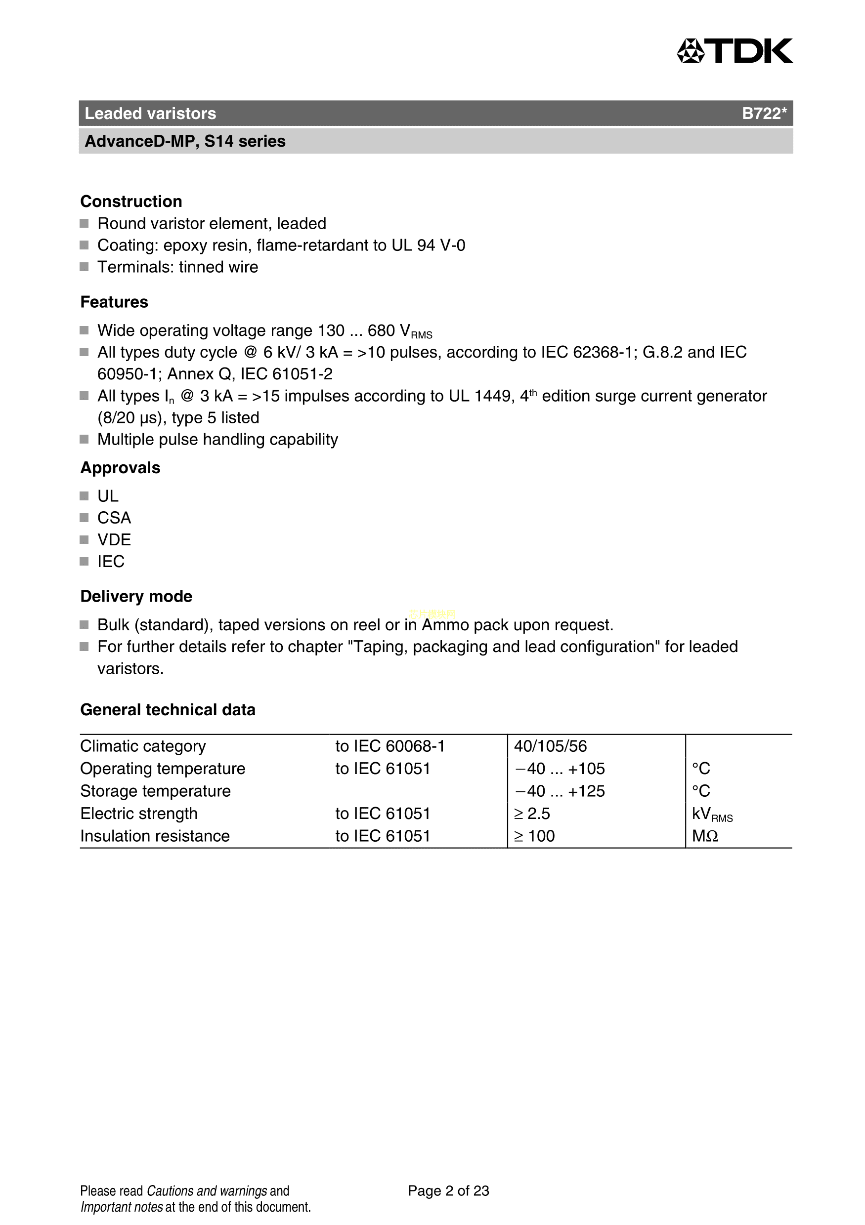 B72214P2141K101数据手册径向引线封装TDKPDF规格书,中英文下载