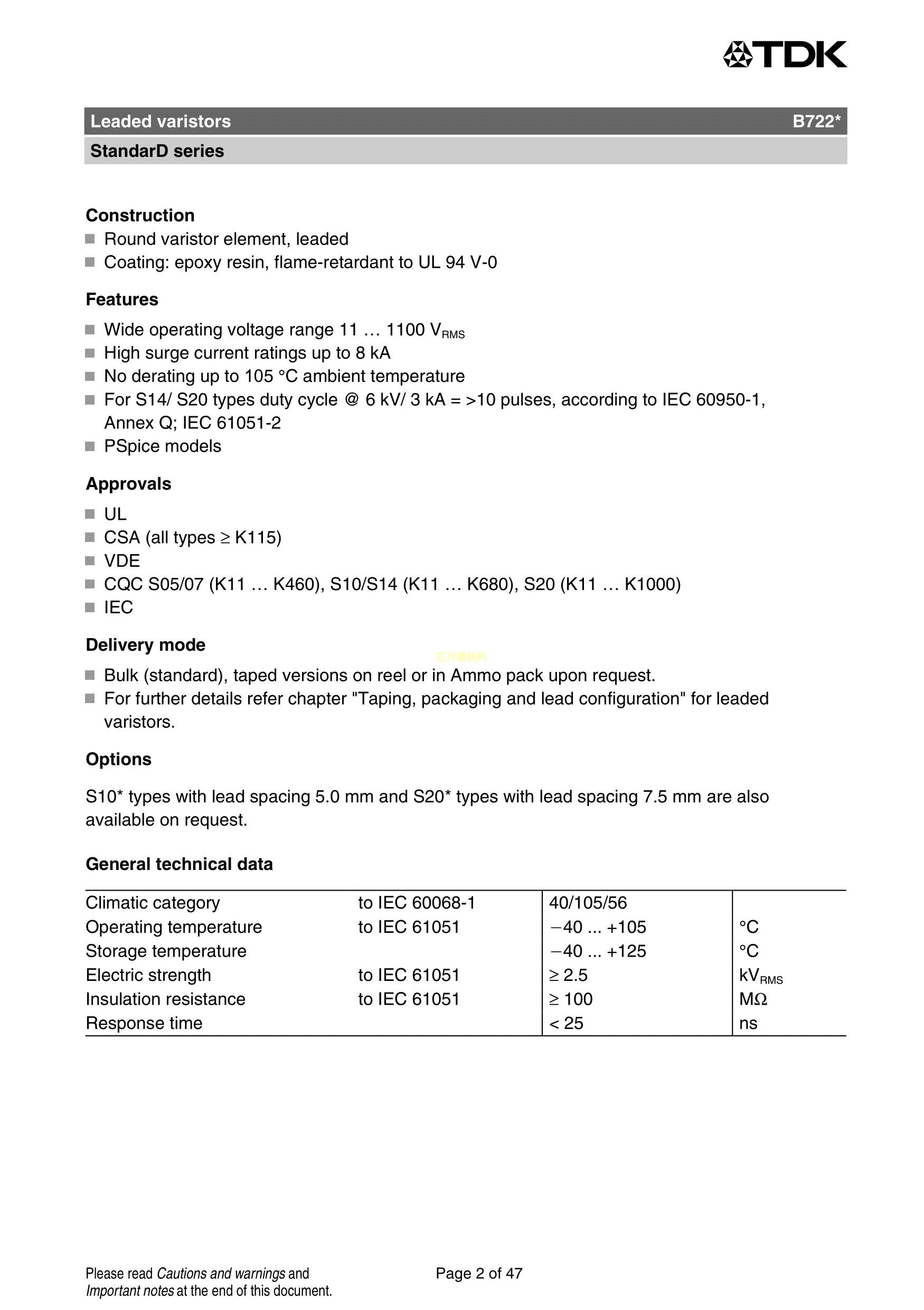 B72214S0111K101数据手册径向引线封装TDKPDF规格书,中英文下载