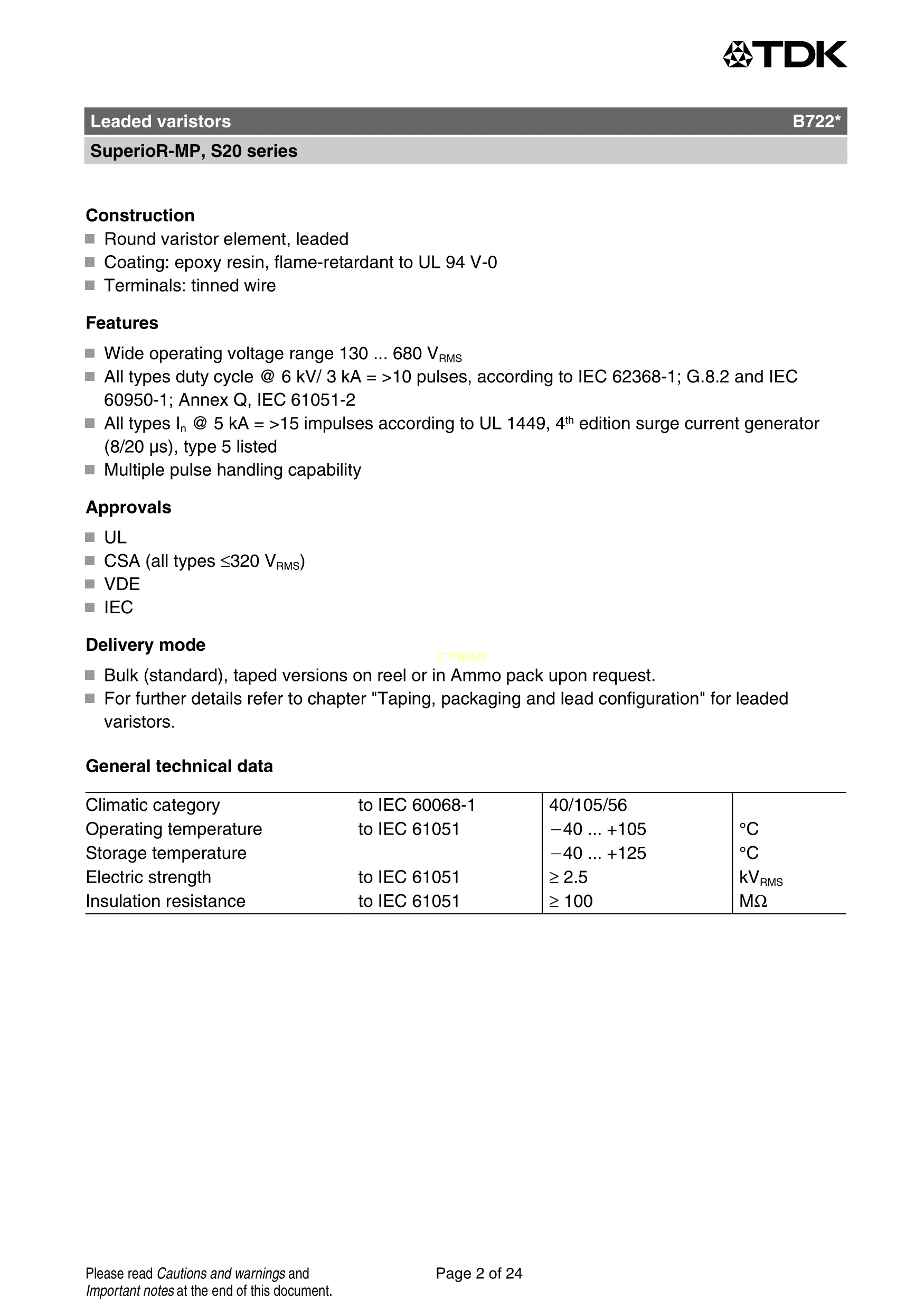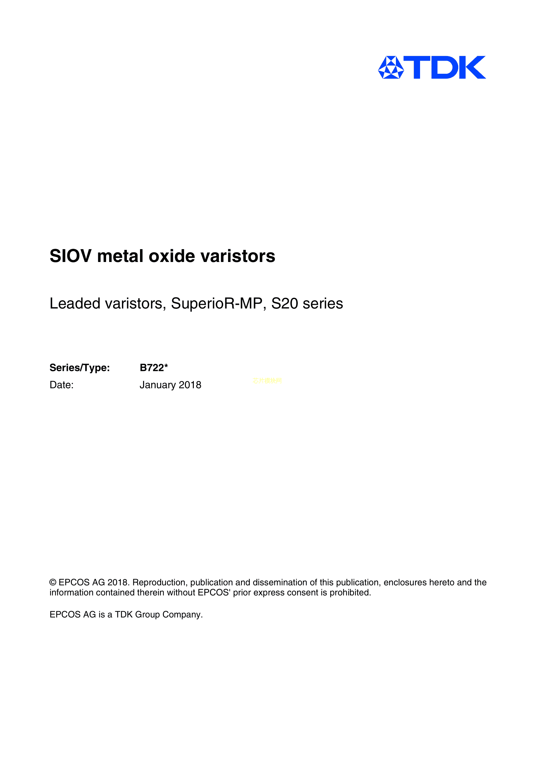 B72220P3351K101数据手册径向引线封装TDKPDF规格书,中英文下载