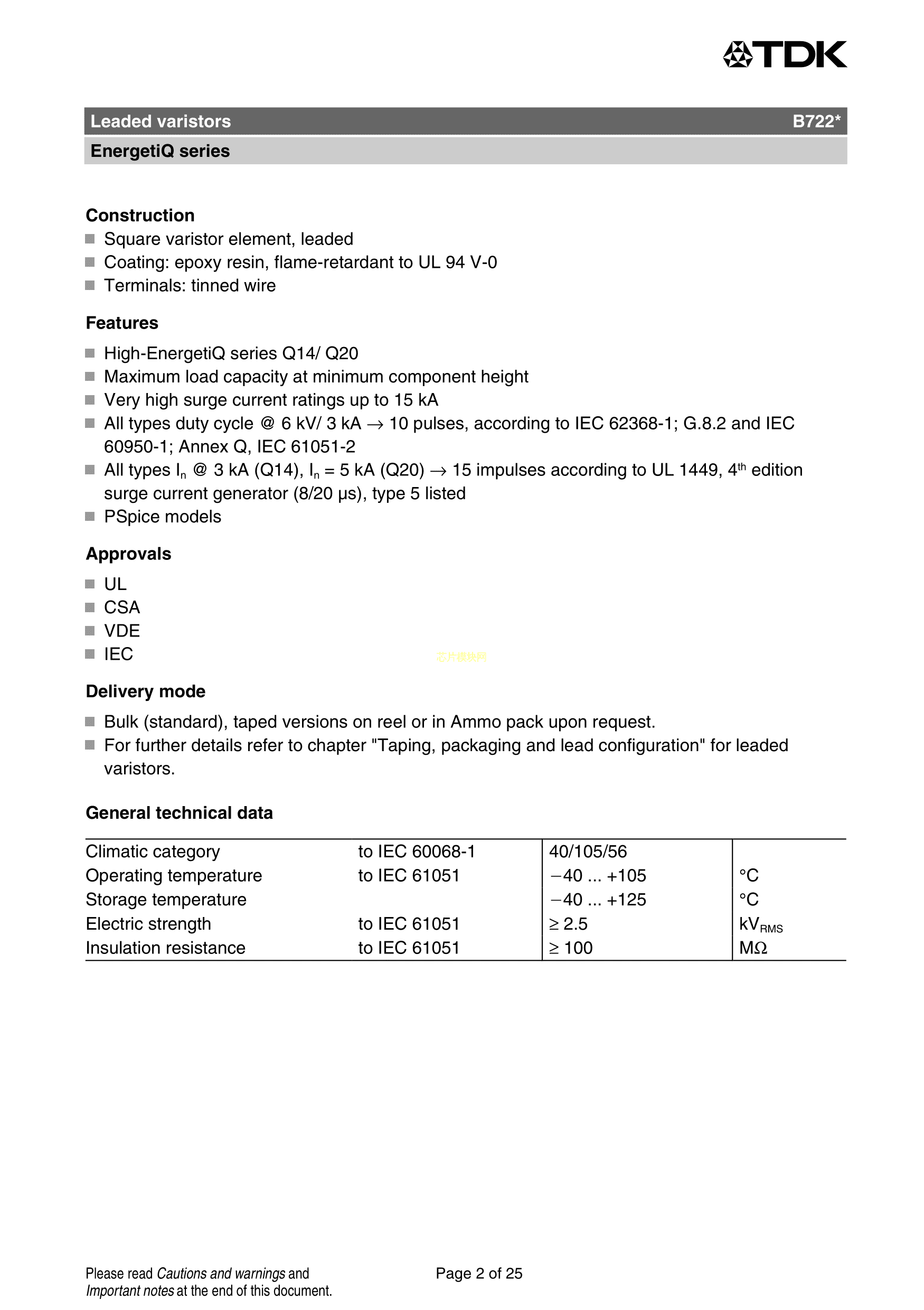 B72220Q0381K101数据手册径向引线封装TDKPDF规格书,中英文下载