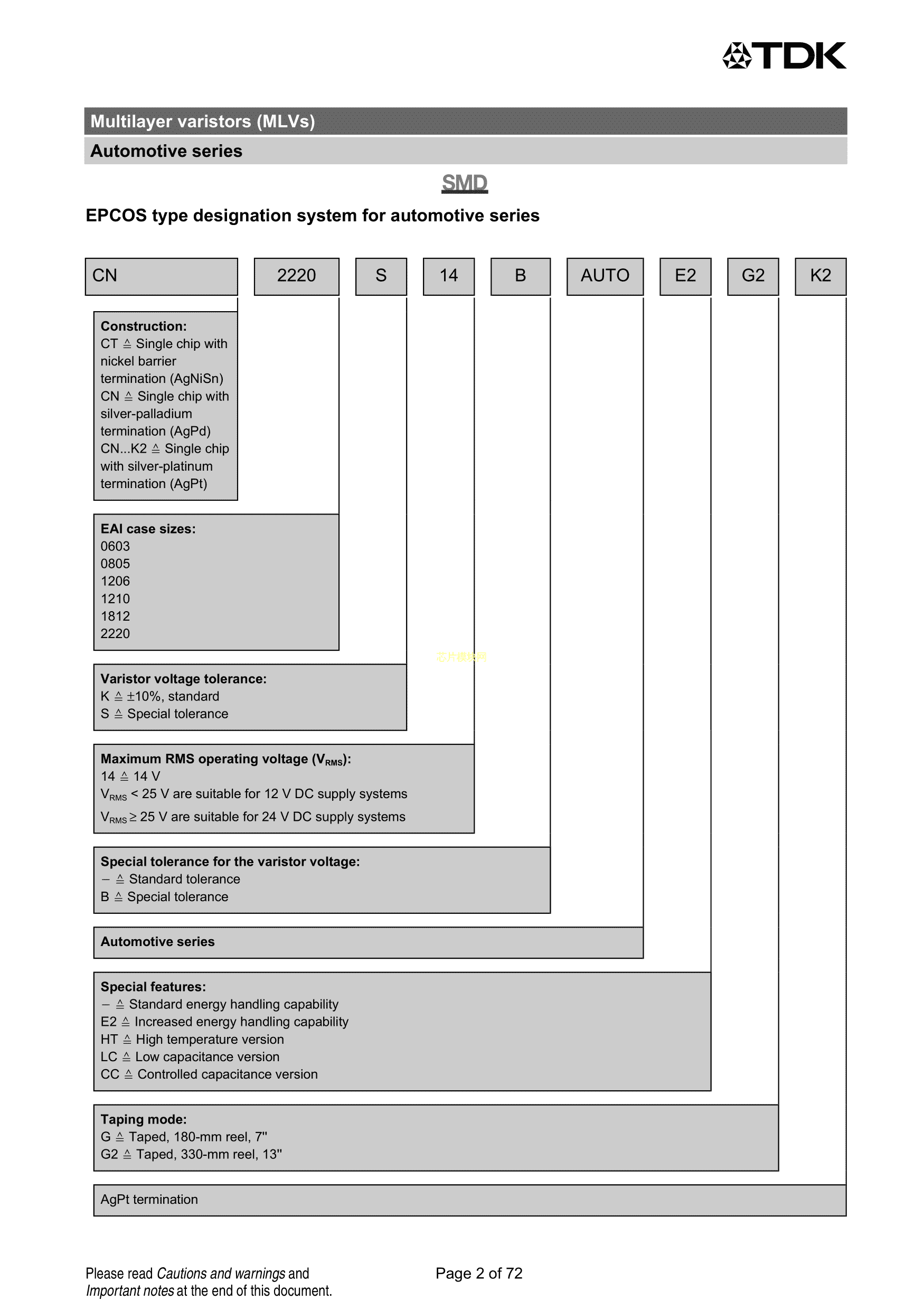 B72530T1140S272数据手册1210封装TDKPDF规格书,中英文下载
