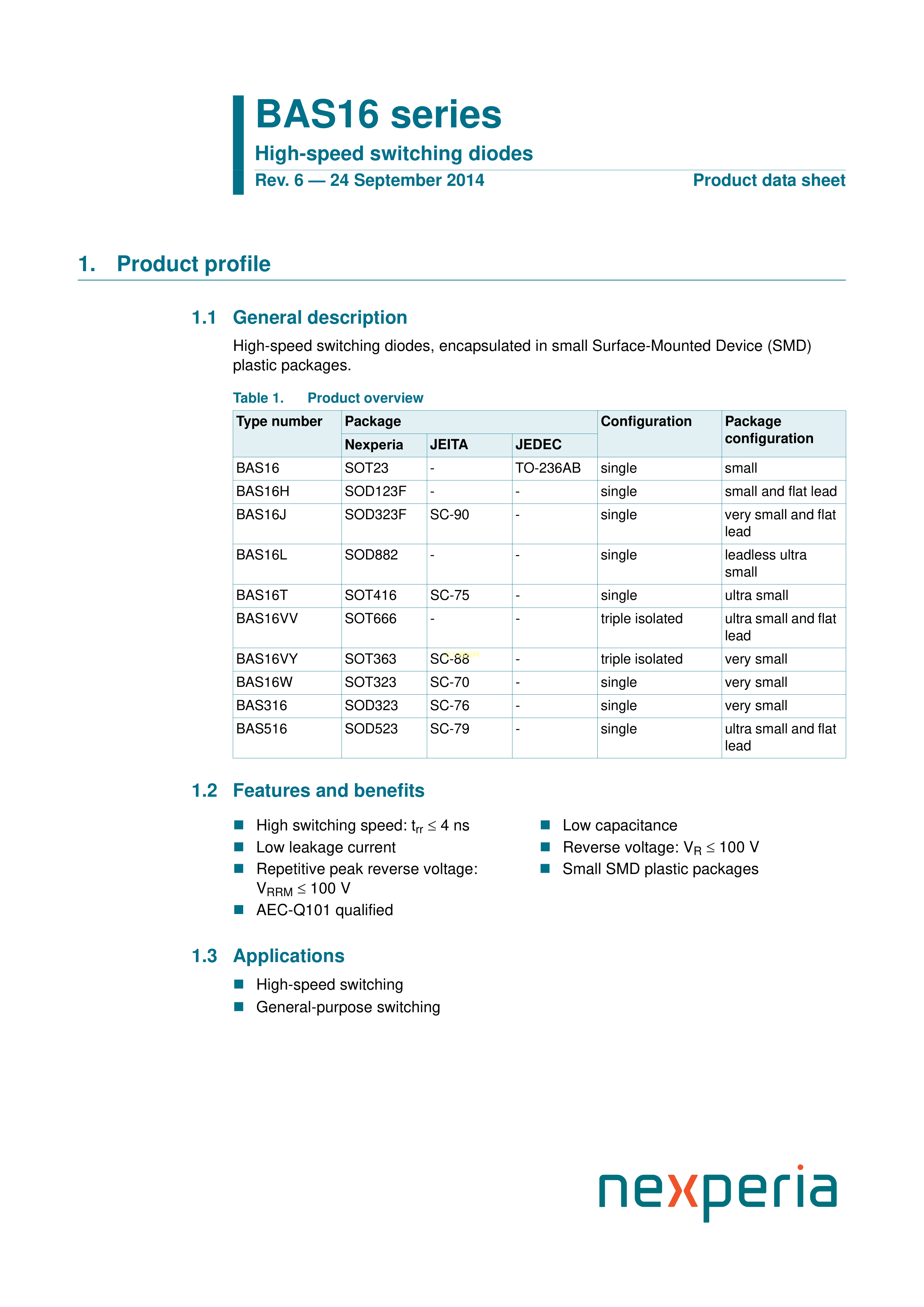 BAS16H115数据手册SOD-123F封装Nexperia(安世)PDF规格书,中英文下载
