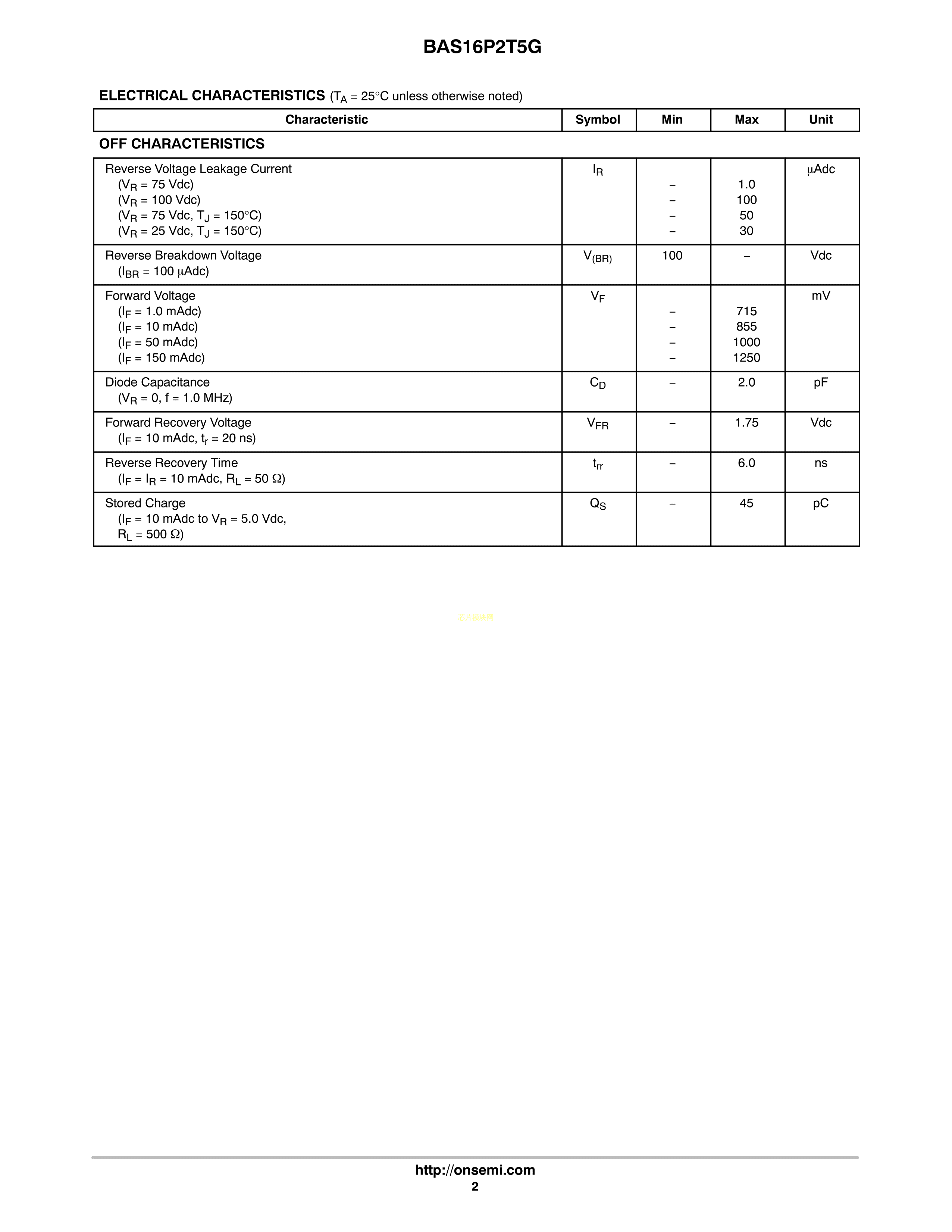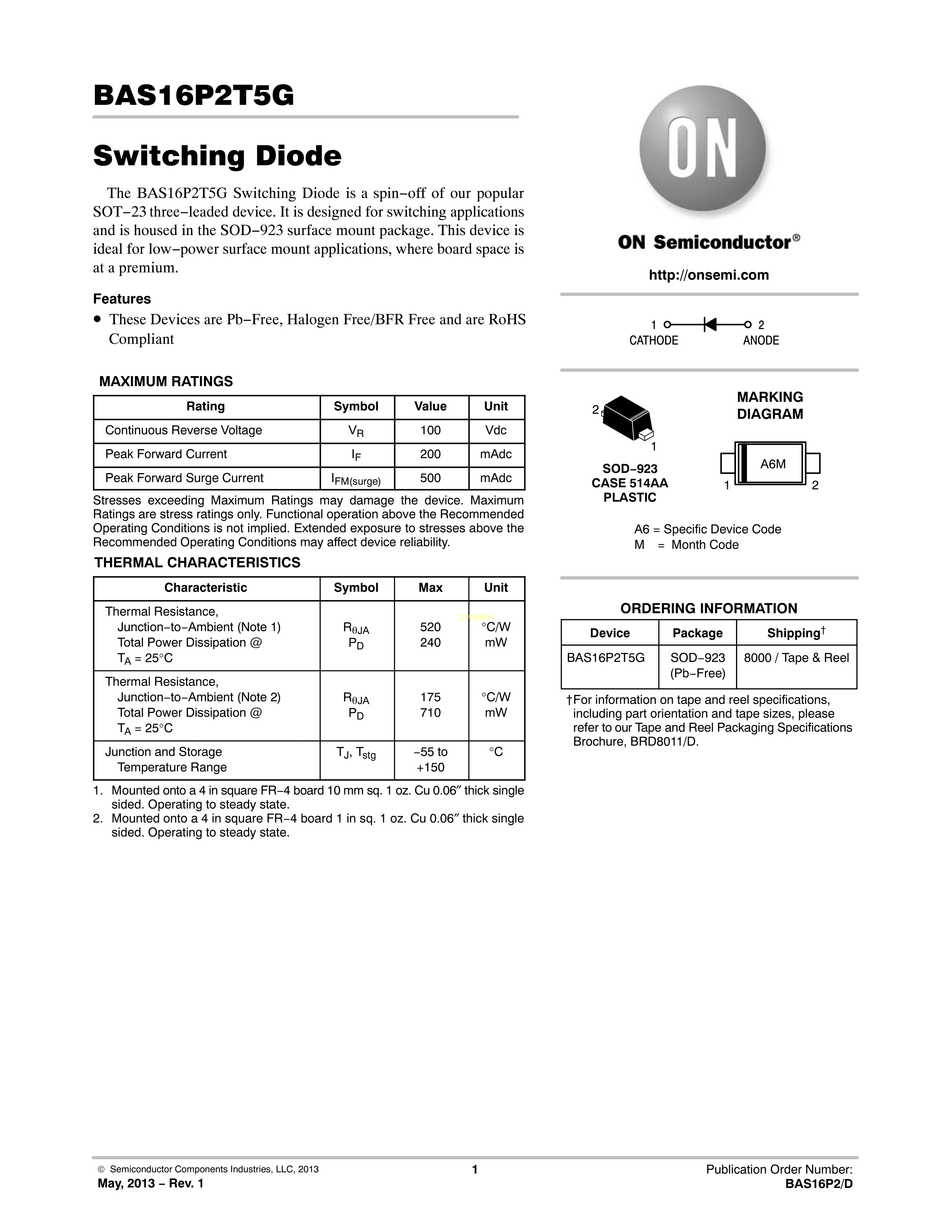 BAS16P2T5G数据手册SOD-923封装onsemi(安森美)PDF规格书,中英文下载