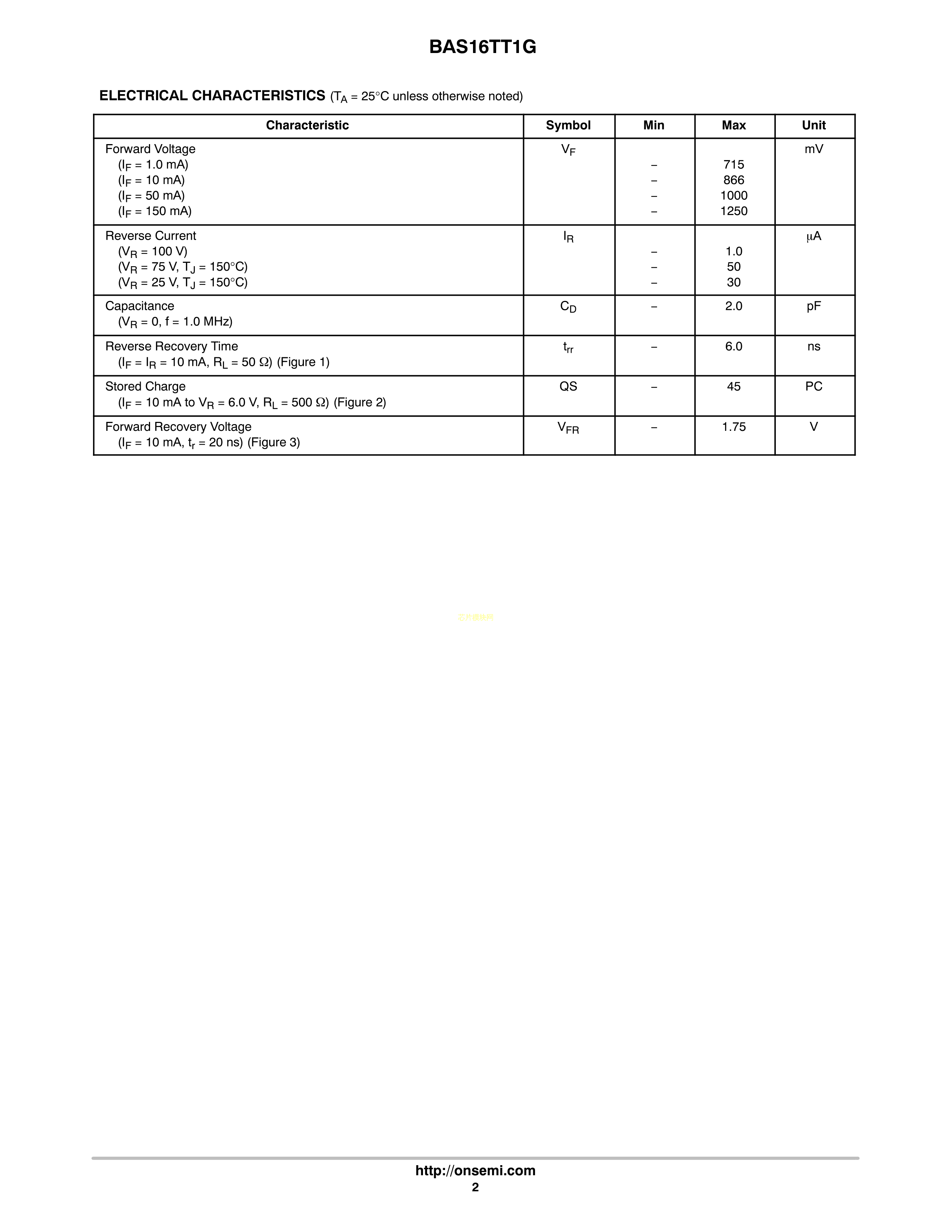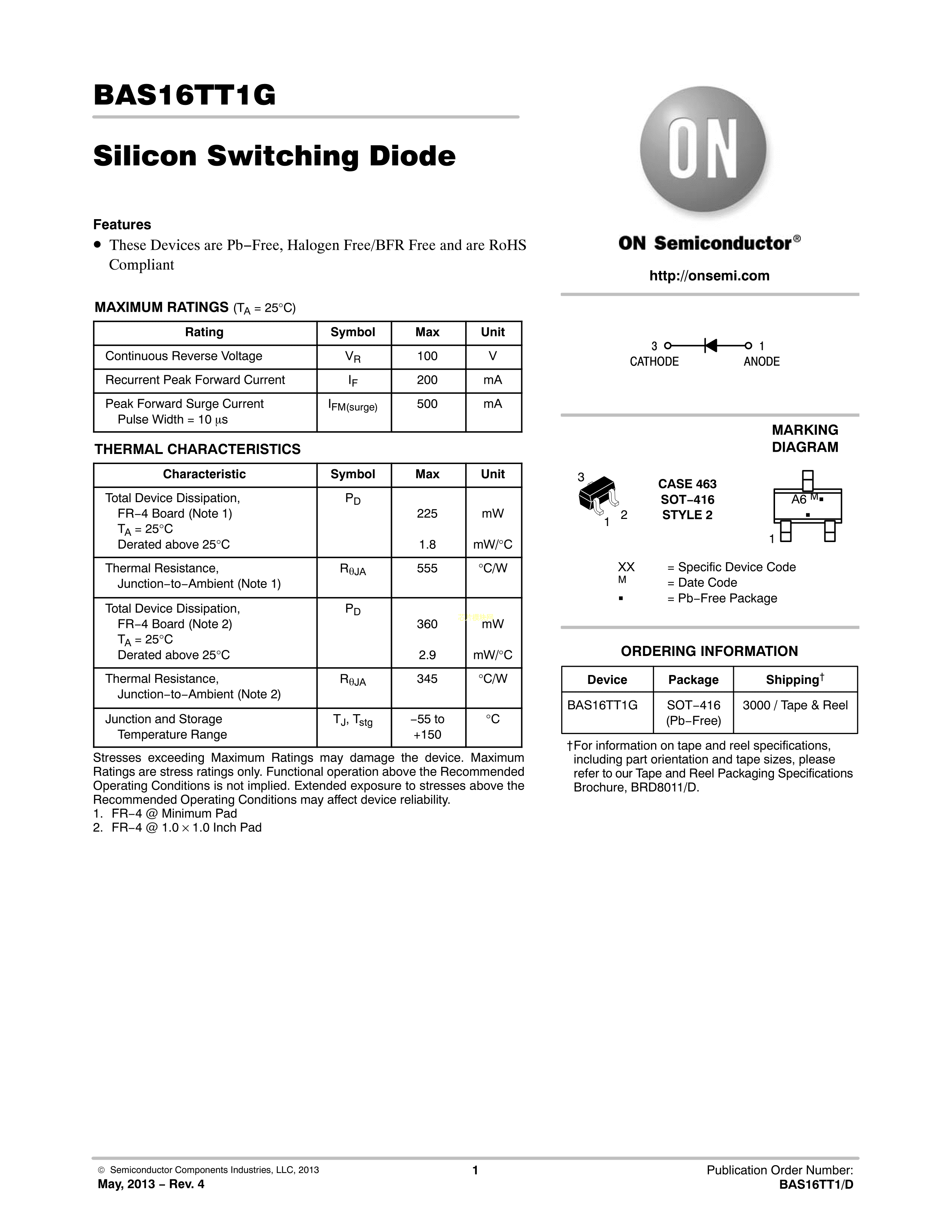 BAS16TT1G数据手册SOT-416封装onsemi(安森美)PDF规格书,中英文下载