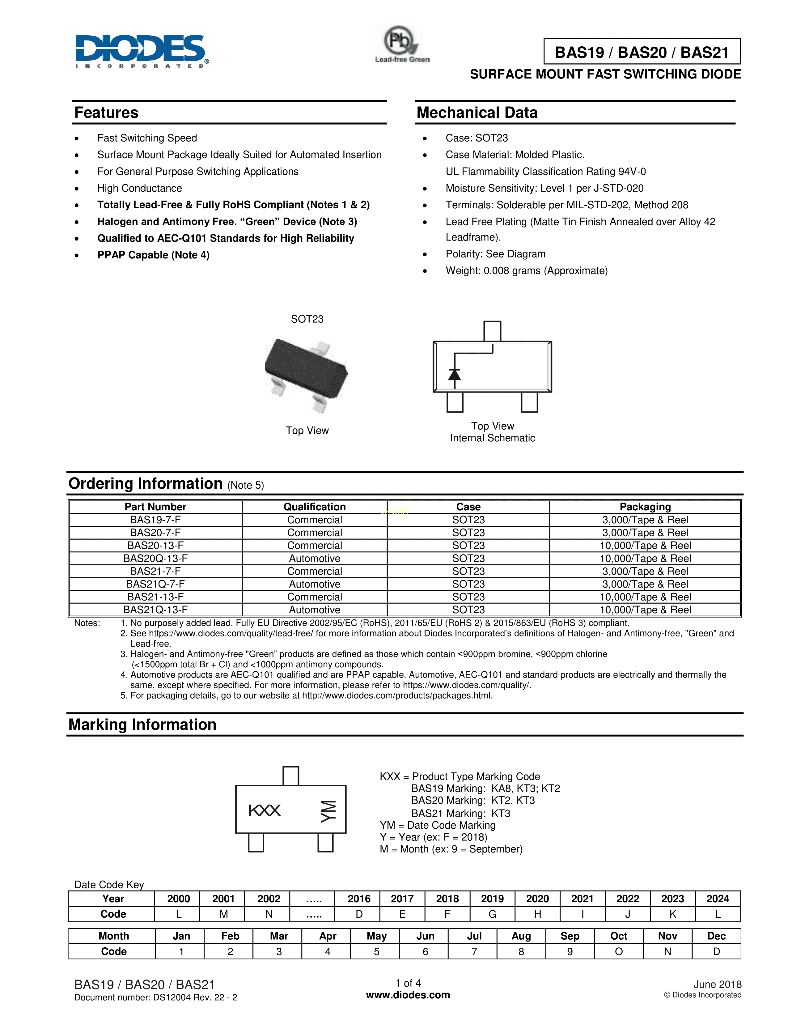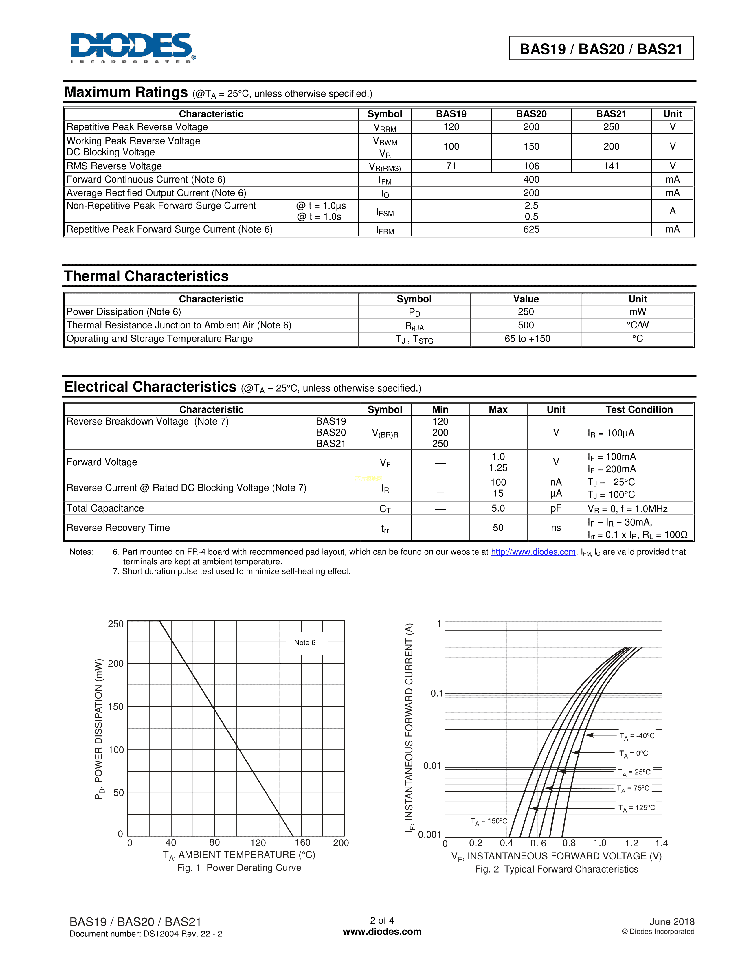 BAS19-7-F数据手册SOT-23封装DIODES(美台)PDF规格书,中英文下载