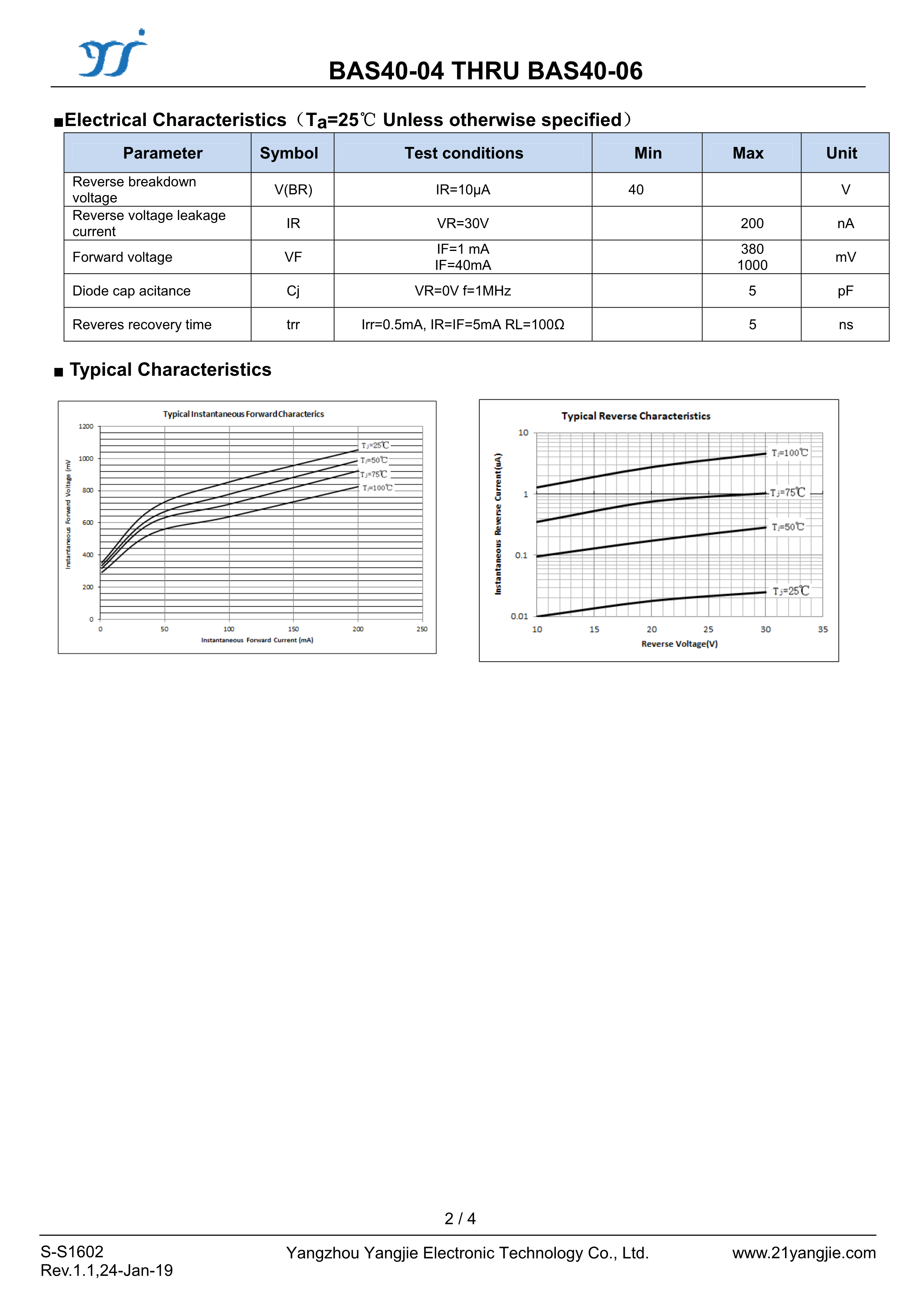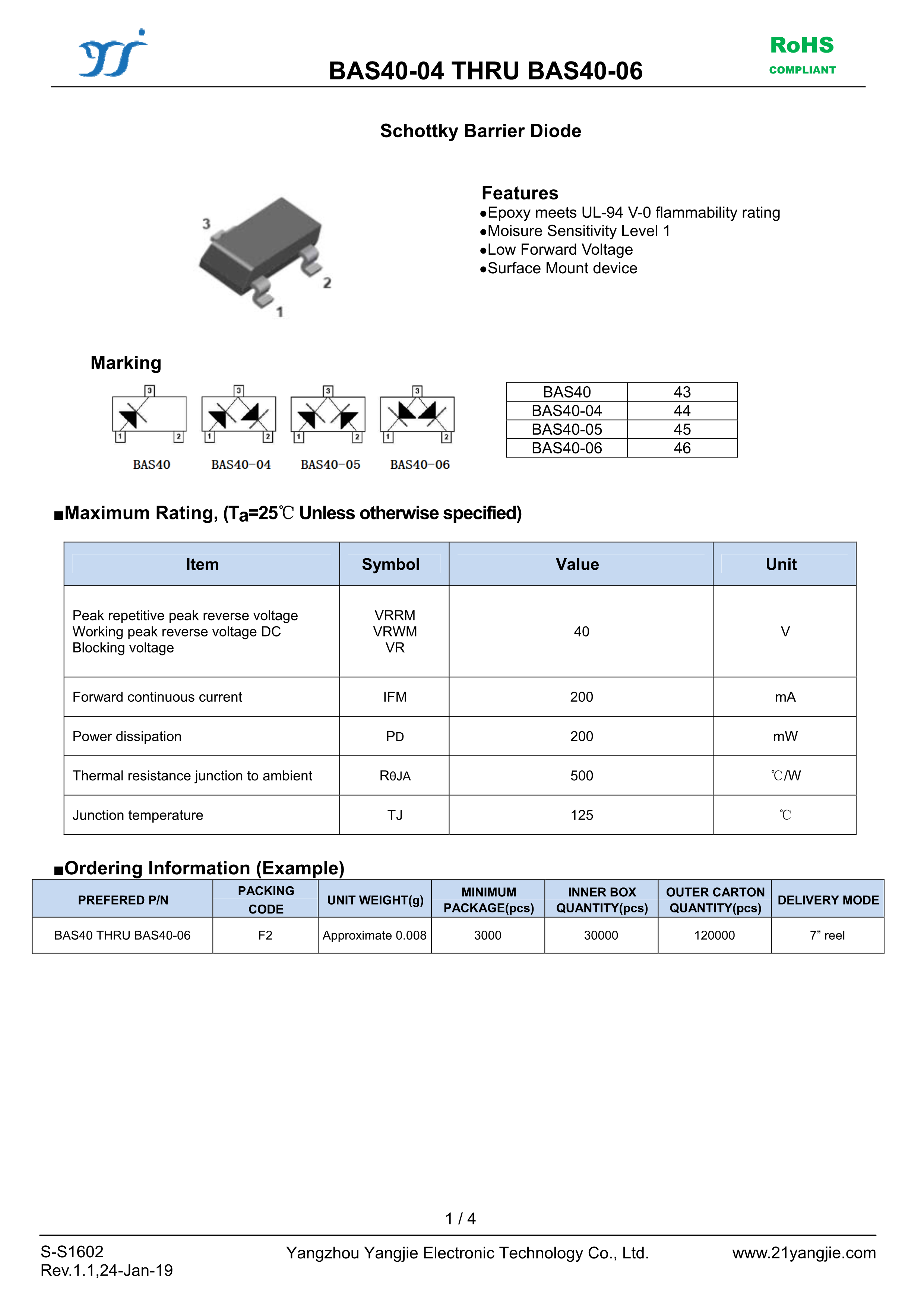 BAS40-06数据手册SOT-23封装YANGJIE(扬杰)PDF规格书,中英文下载