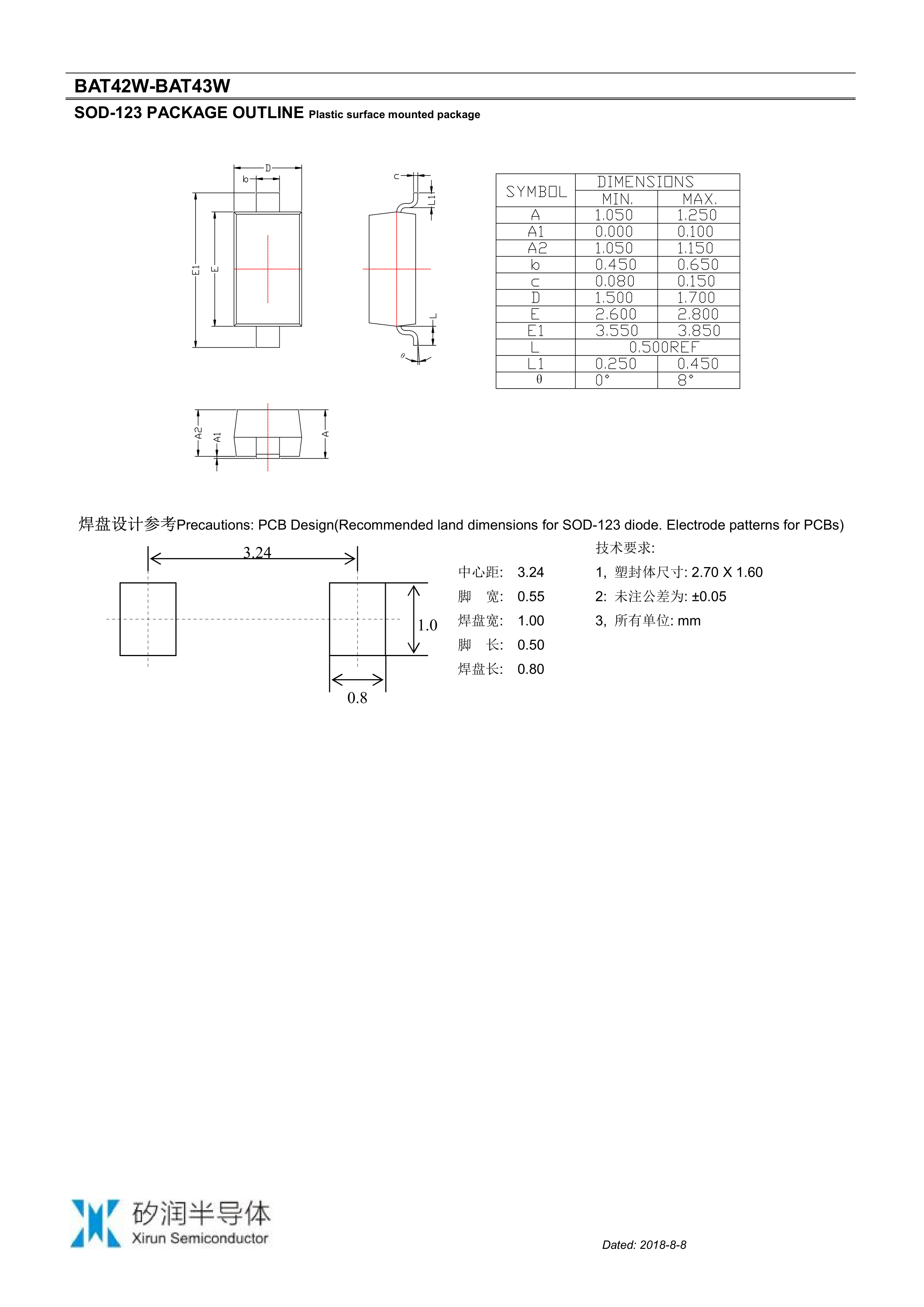 BAT42W-S7数据手册SOD-123封装ZRE(治润)PDF规格书,中英文下载