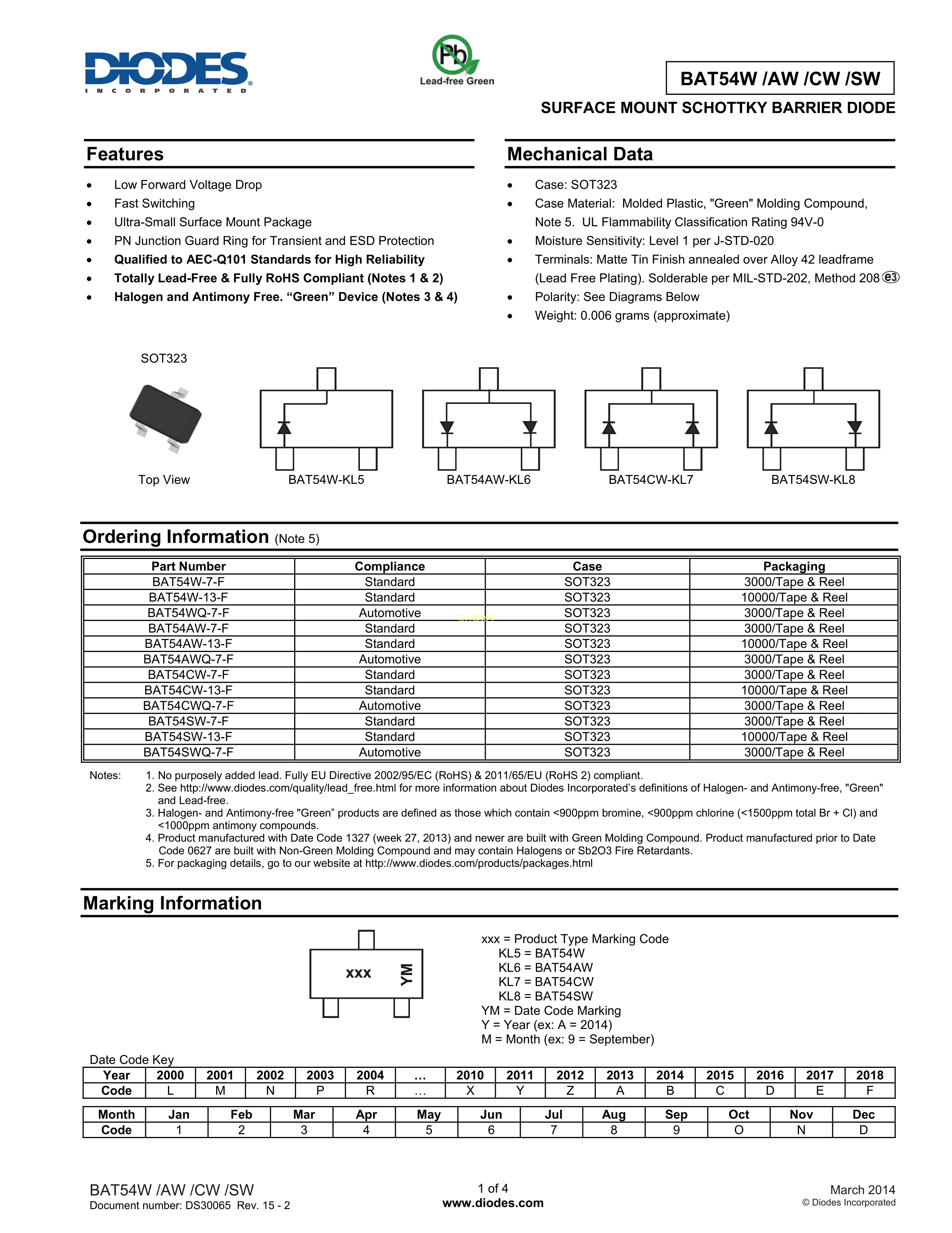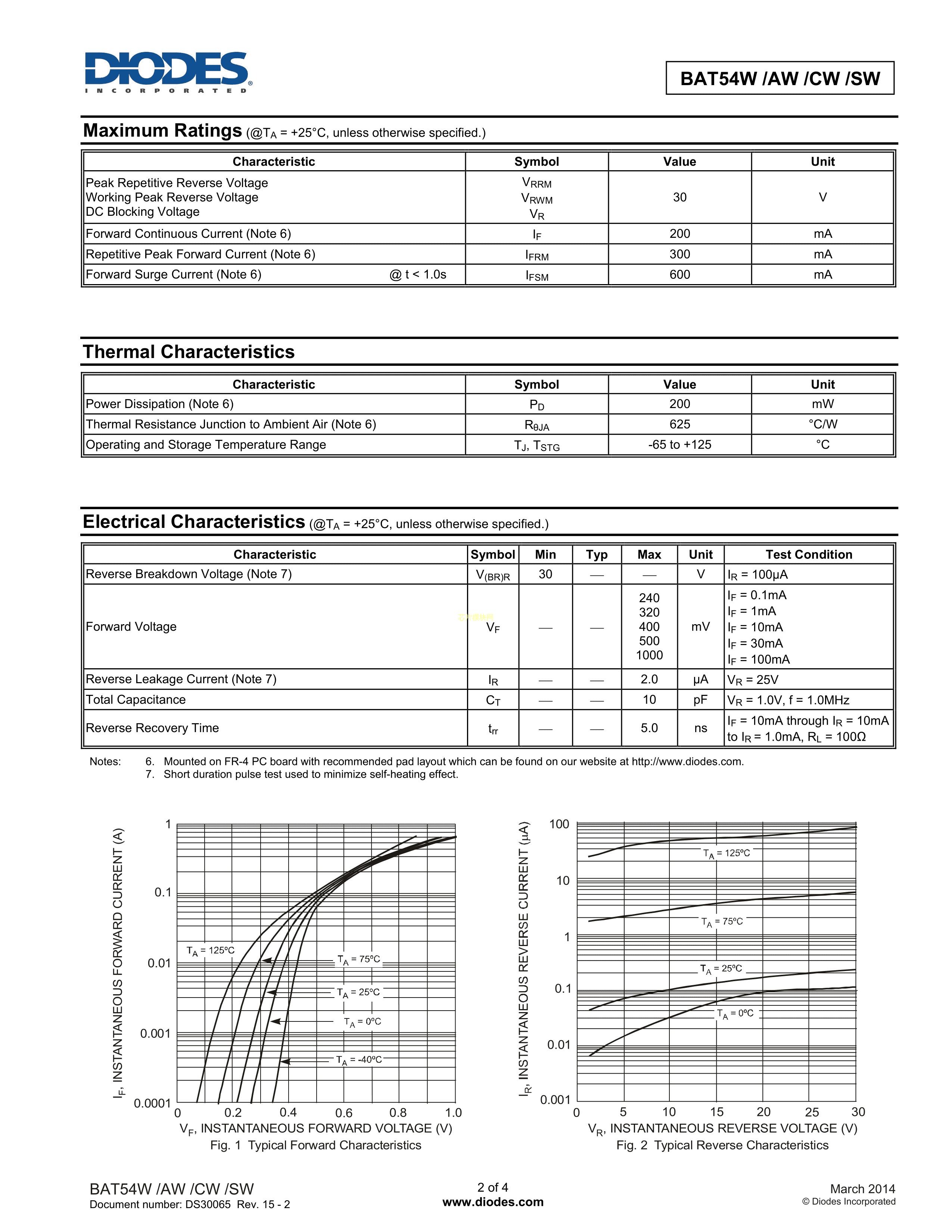 BAT54CW-7-F数据手册SOT-323(SC-70)封装DIODES(美台)PDF规格书,中英文下载