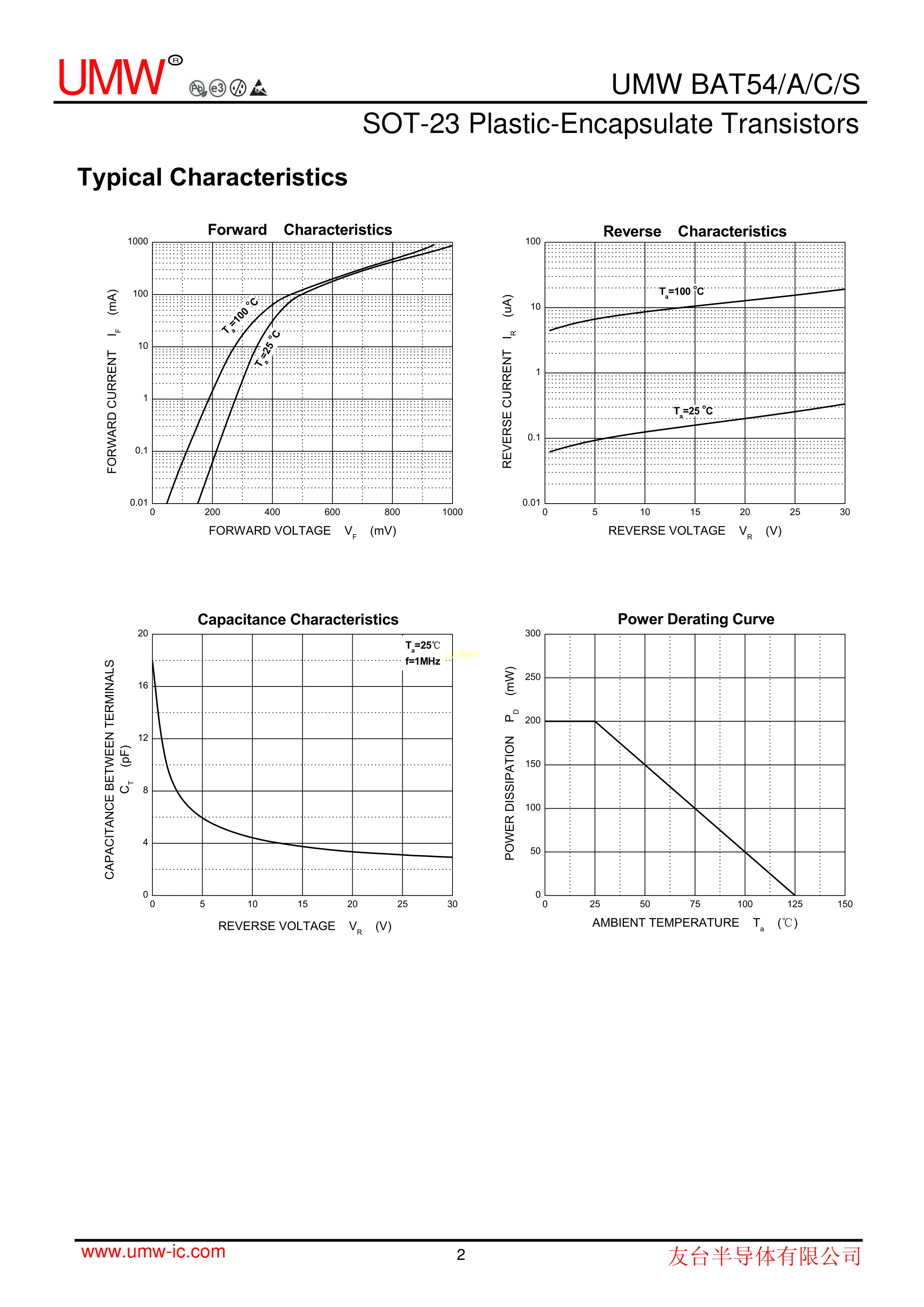 BAT54S数据手册SOT-23-3封装UMW(友台半导体)PDF规格书,中英文下载