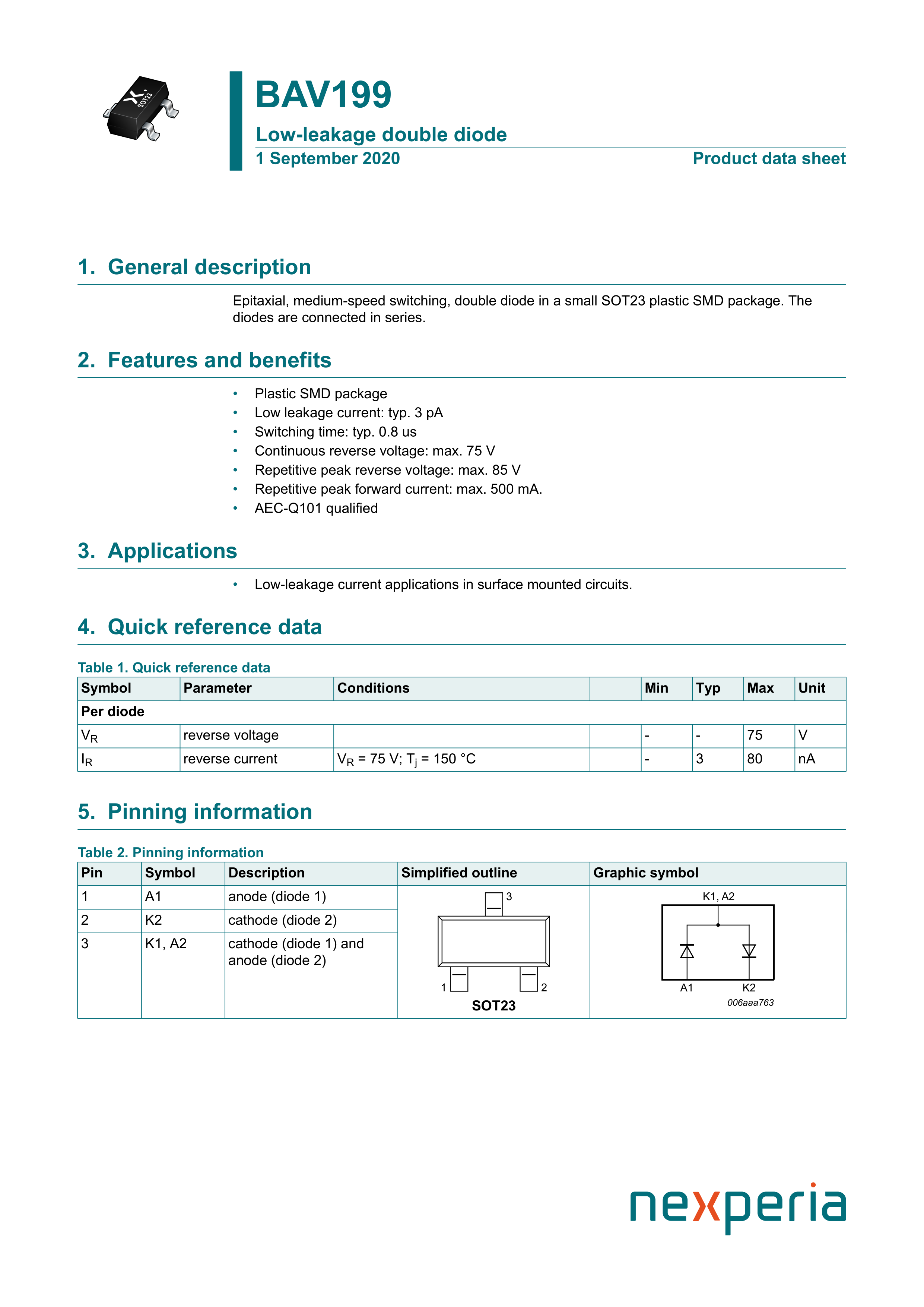 BAV199235数据手册SOT-23封装Nexperia(安世)PDF规格书,中英文下载