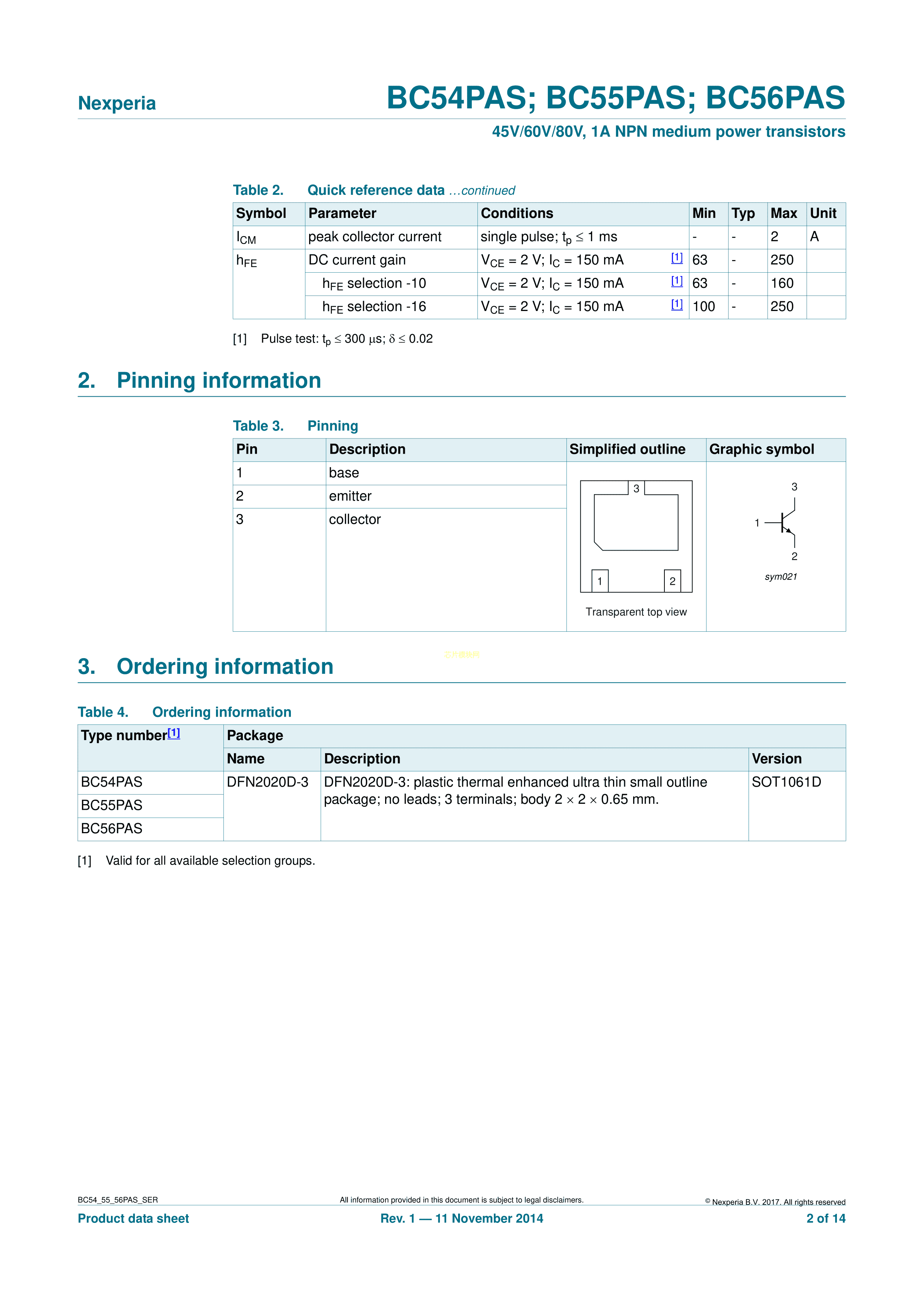 BC54-16PASX数据手册DFN2020D-3封装Nexperia(安世)PDF规格书,中英文下
