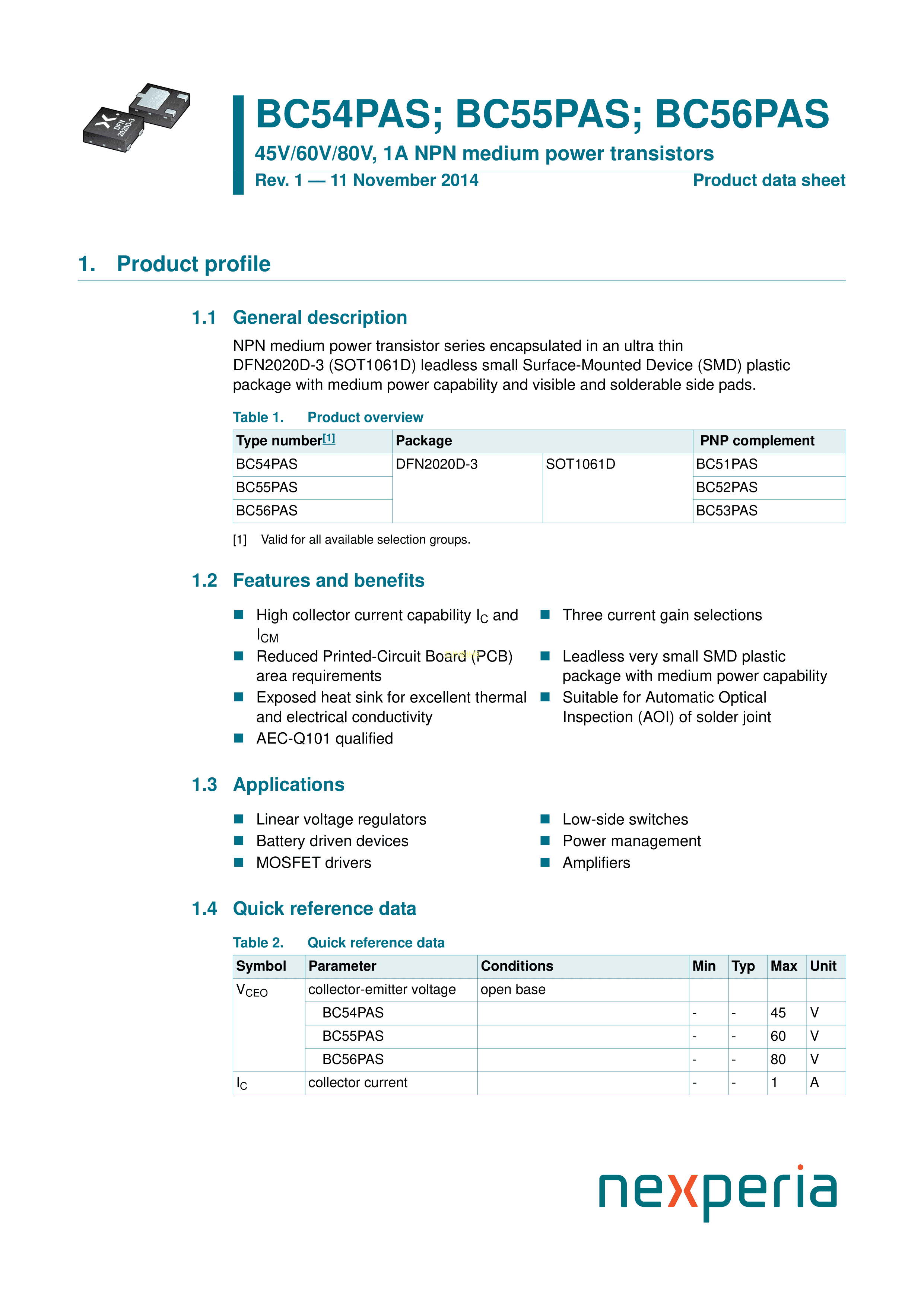 BC56-16PASX数据手册DFN2020D-3封装Nexperia(安世)PDF规格书,中英文下
