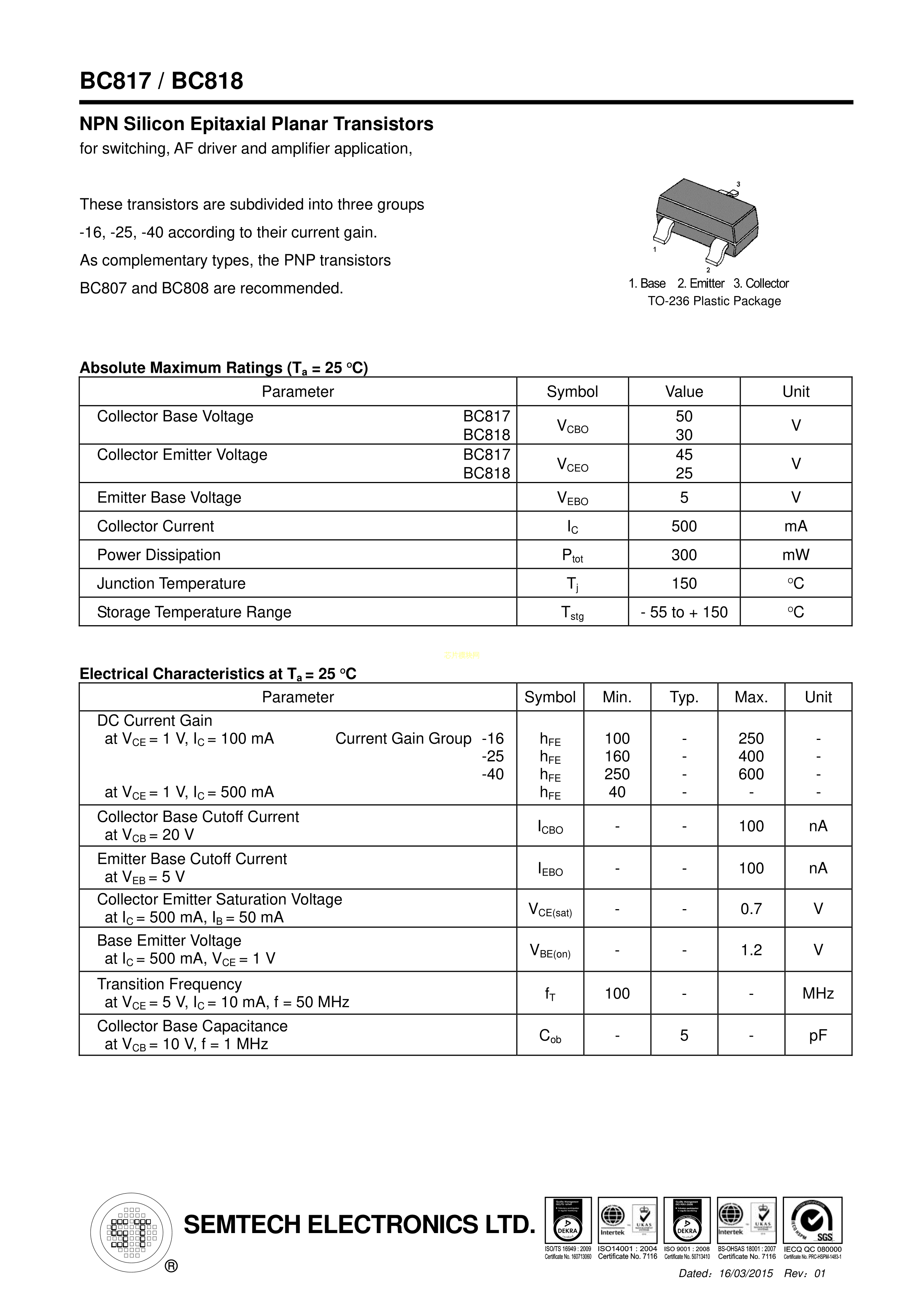 BC817-40(6CT)数据手册SOT-23(SOT-23-3)封装ST(先科)PDF规格书,中英