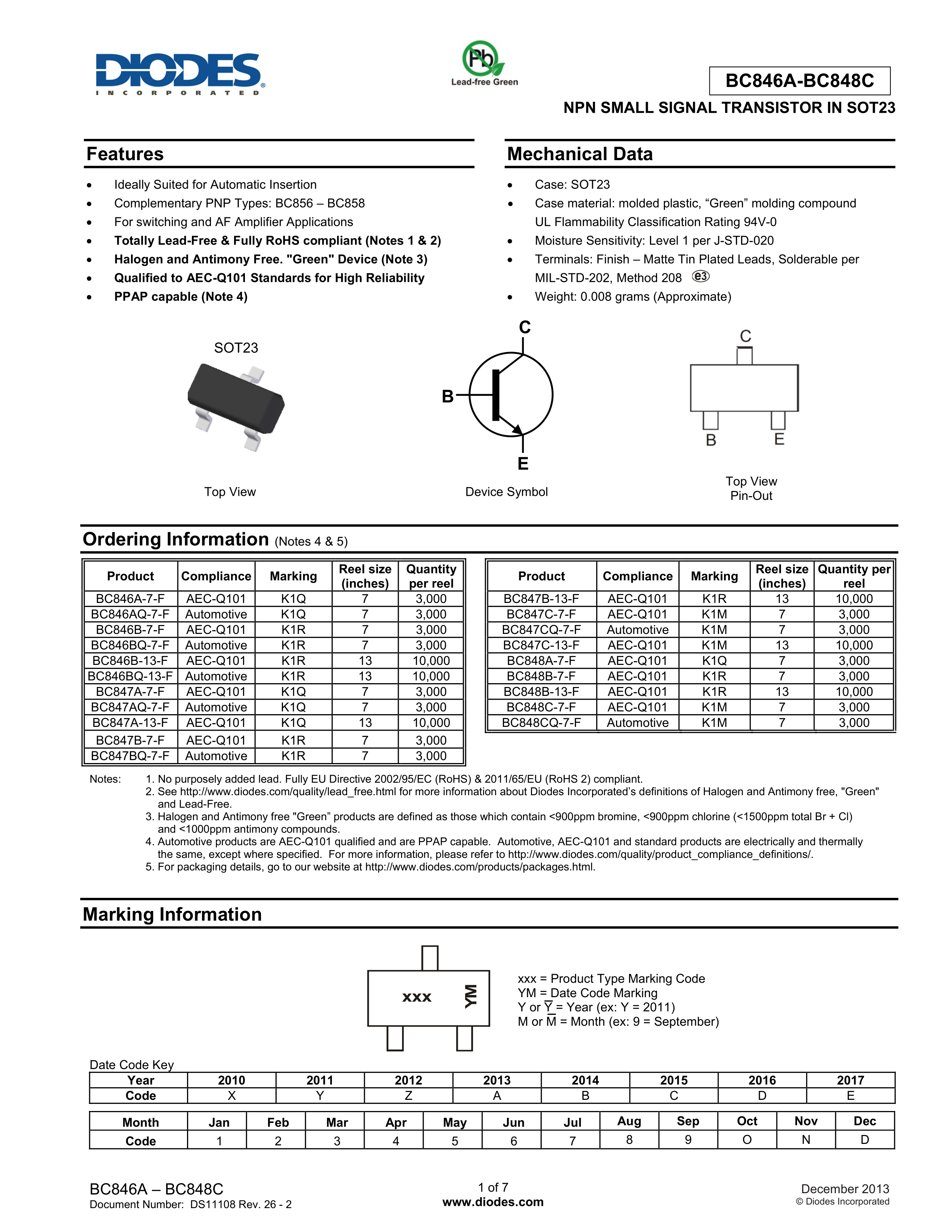 BC846BQ-7-F数据手册SOT-23封装DIODES(美台)PDF规格书,中英文下载