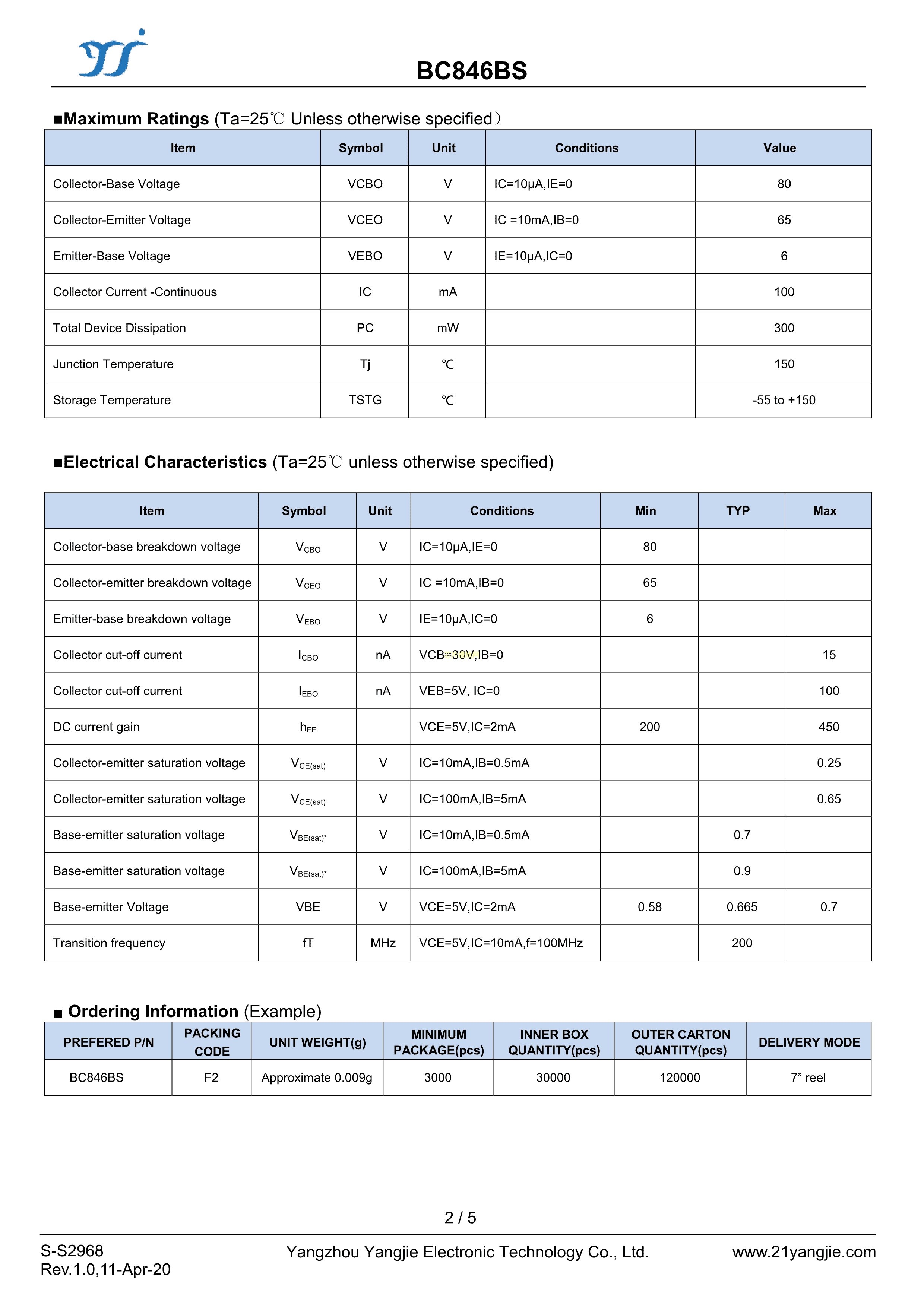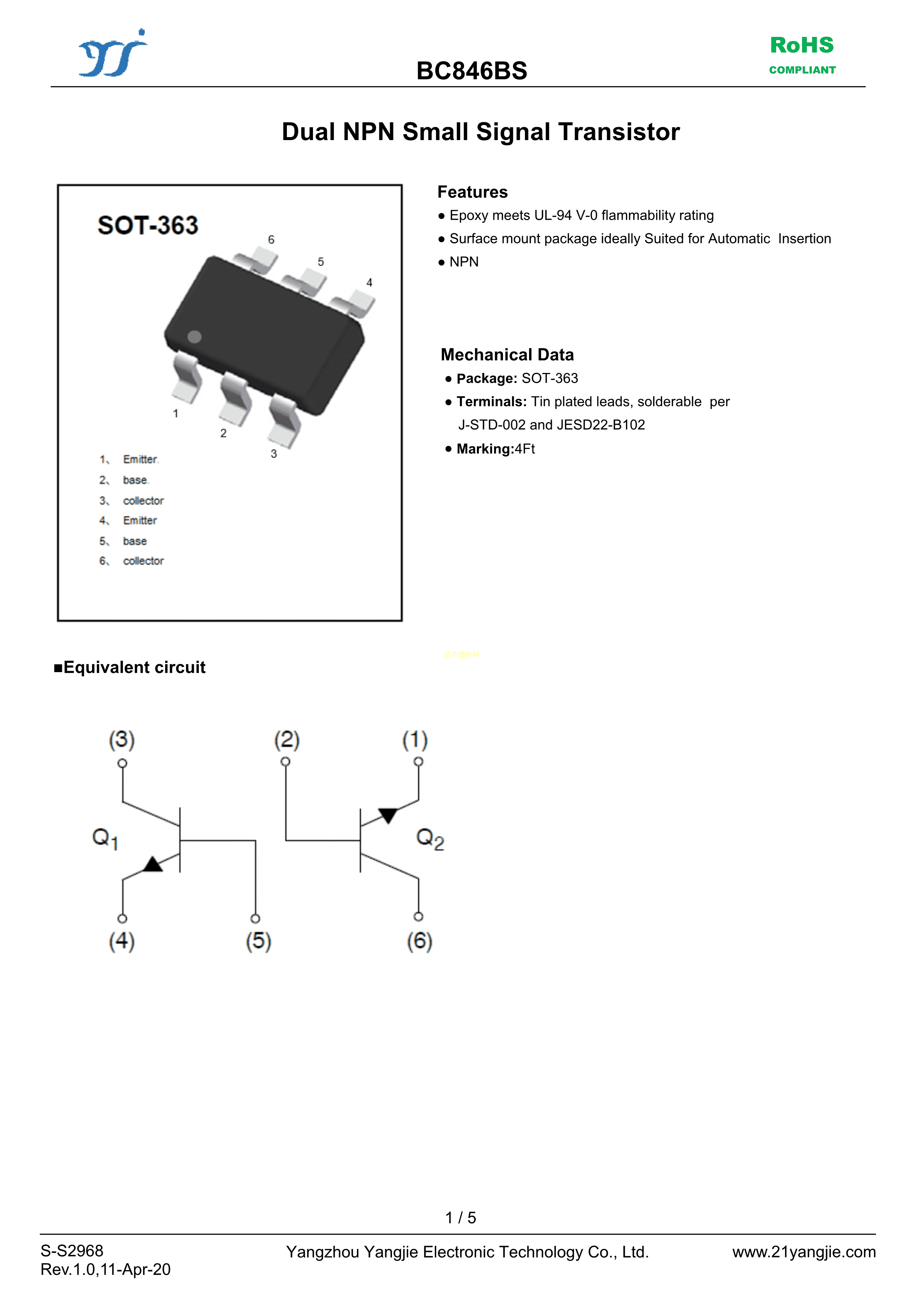BC846BS数据手册SOT-363封装YANGJIE(扬杰)PDF规格书,中英文下载