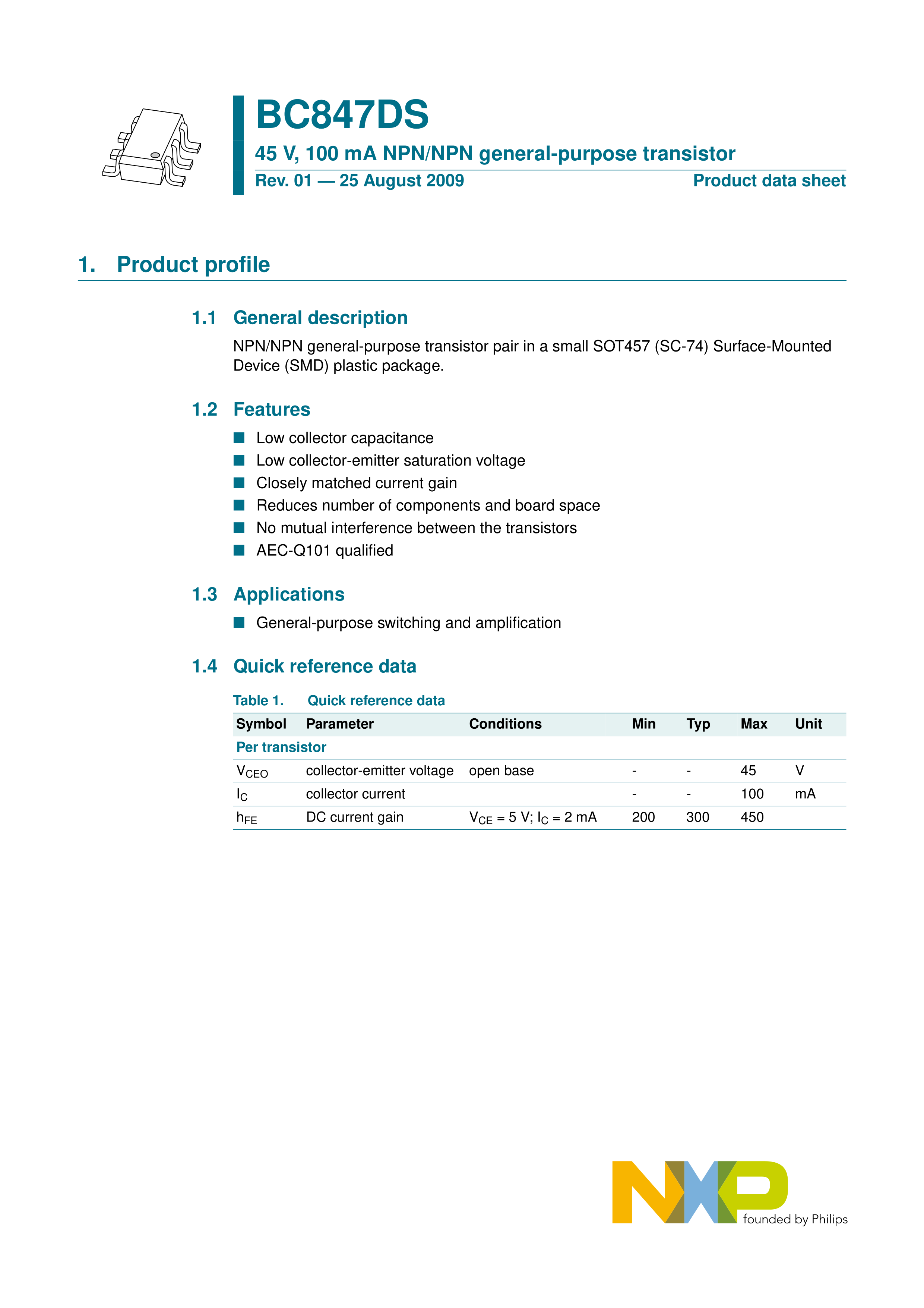 BC847DS115数据手册SC-74封装Nexperia(安世)PDF规格书,中英文下载