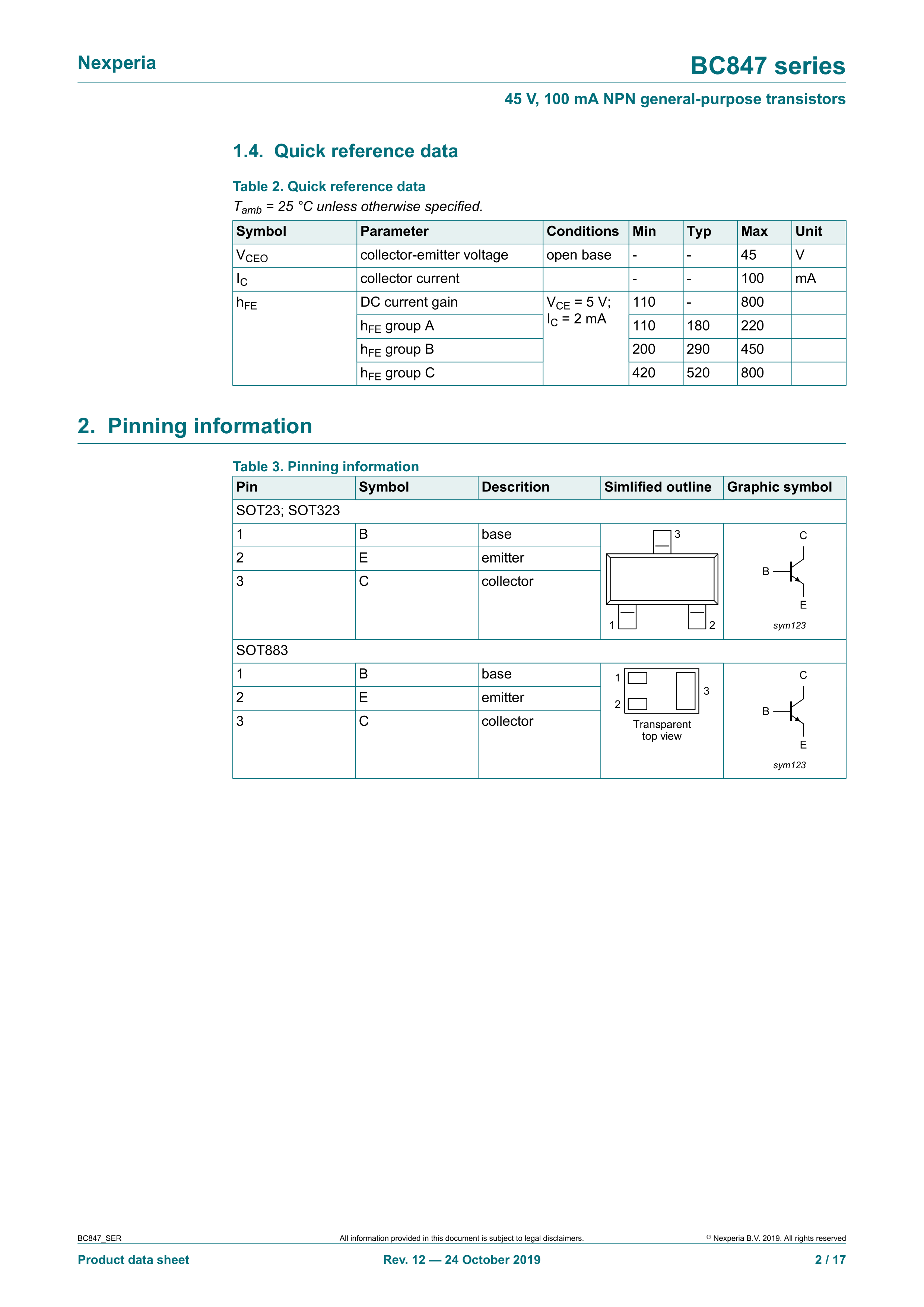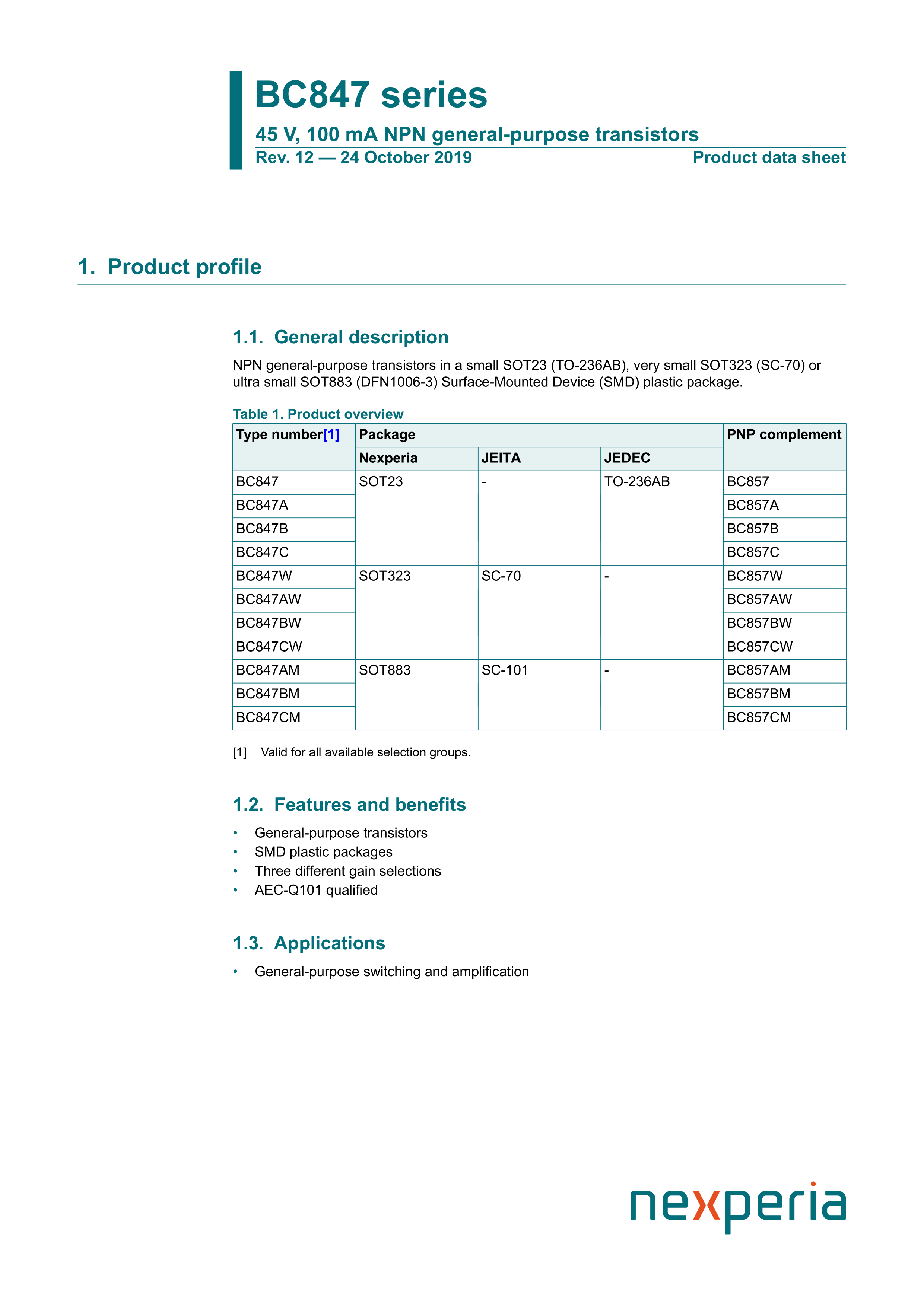 BC847W135数据手册SOT-323(SC-70)封装Nexperia(安世)PDF规格书,中英