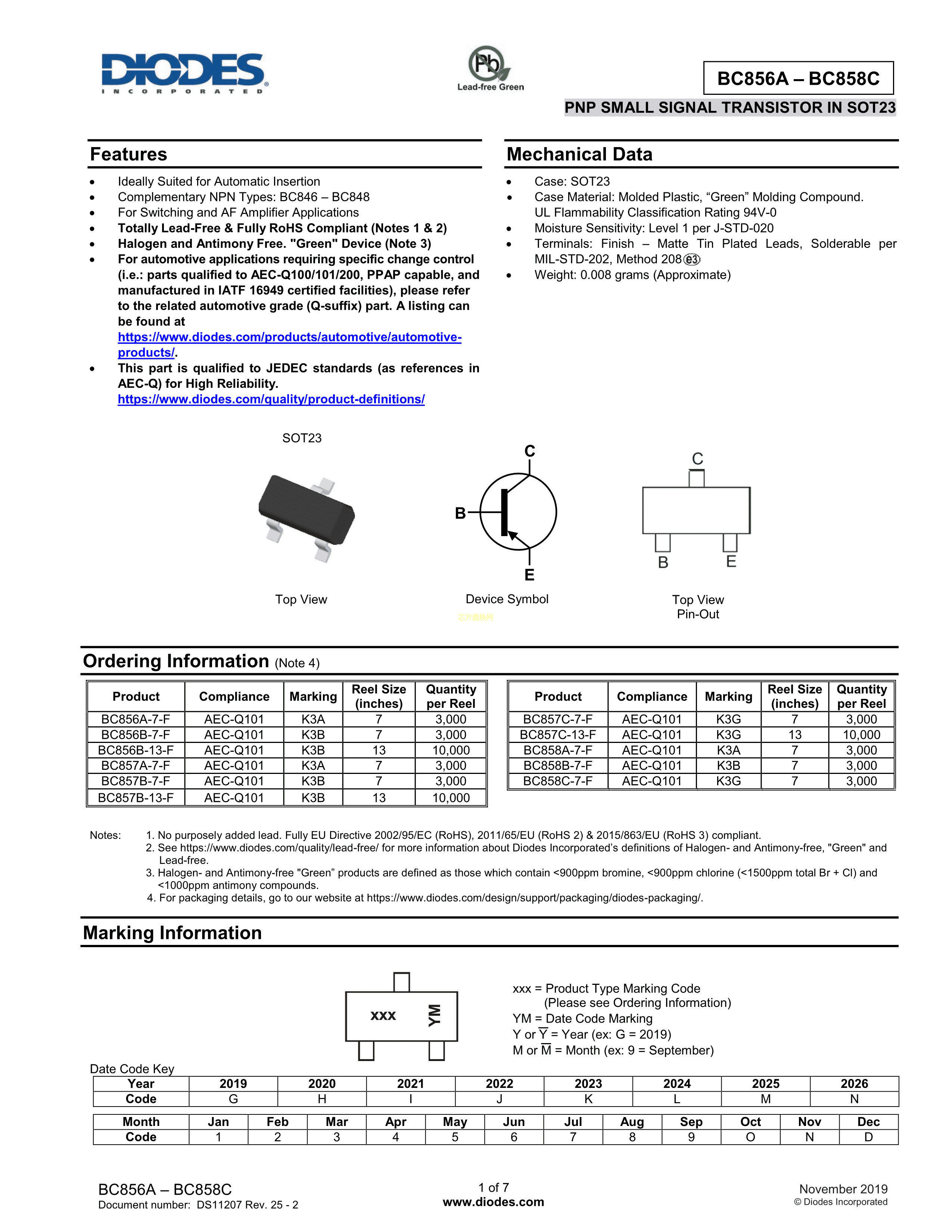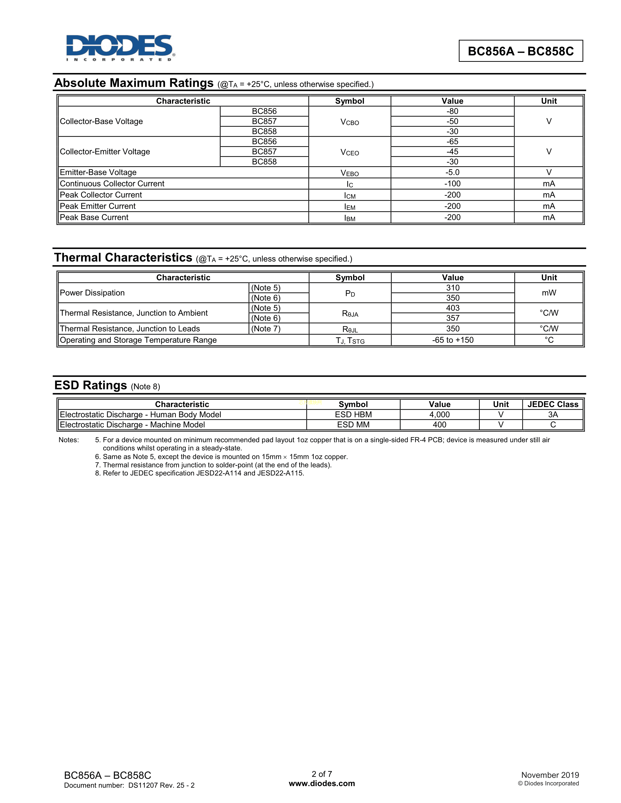 BC856A-7-F数据手册SOT-23封装DIODES(美台)PDF规格书,中英文下载