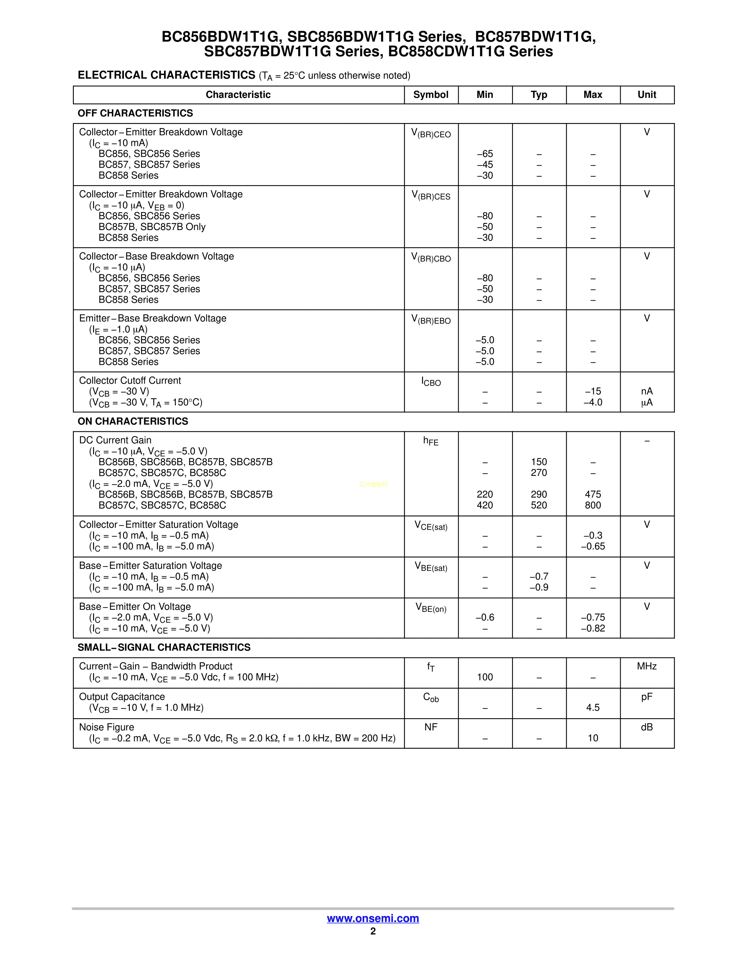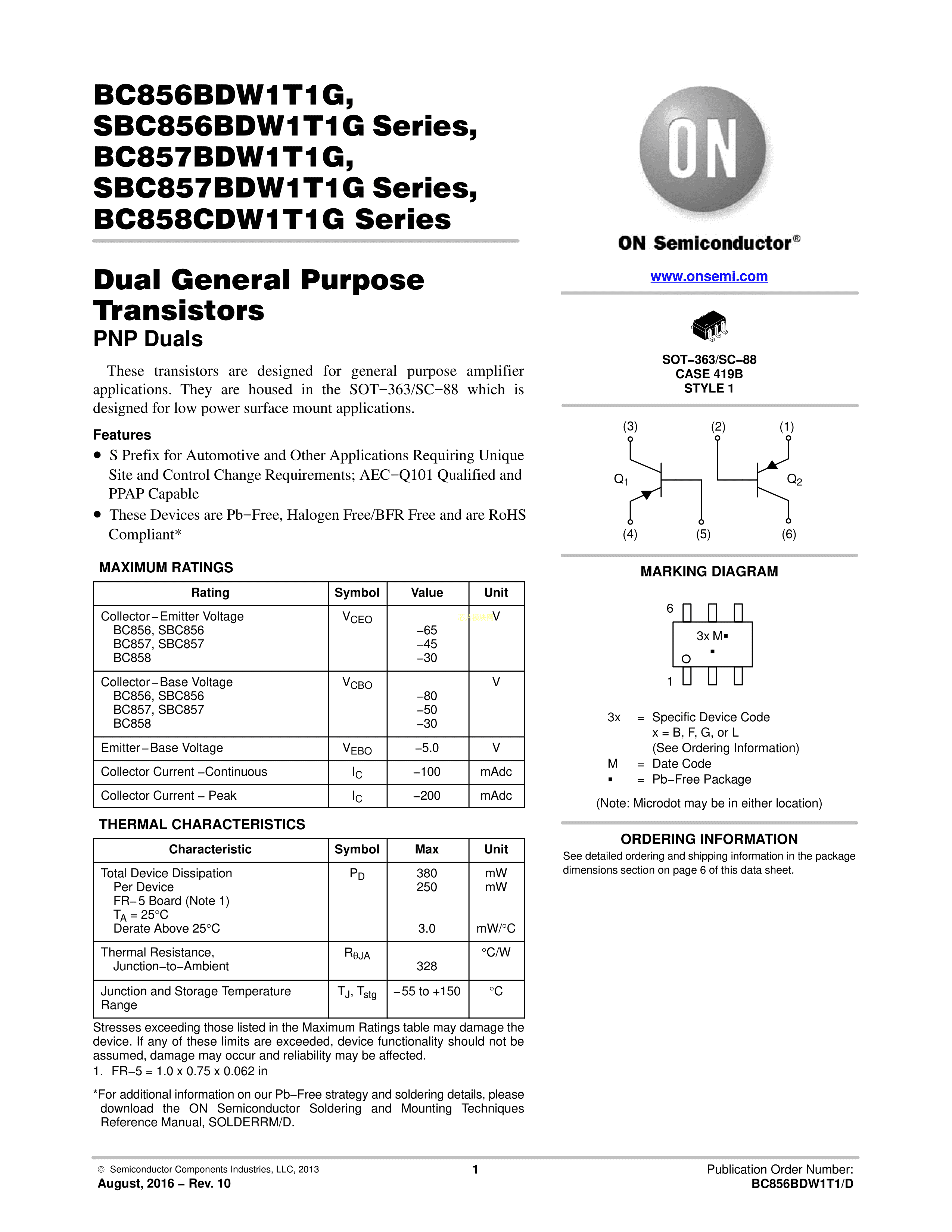 BC856BDW1T3G数据手册SOT-363封装onsemi(安森美)PDF规格书,中英文下载