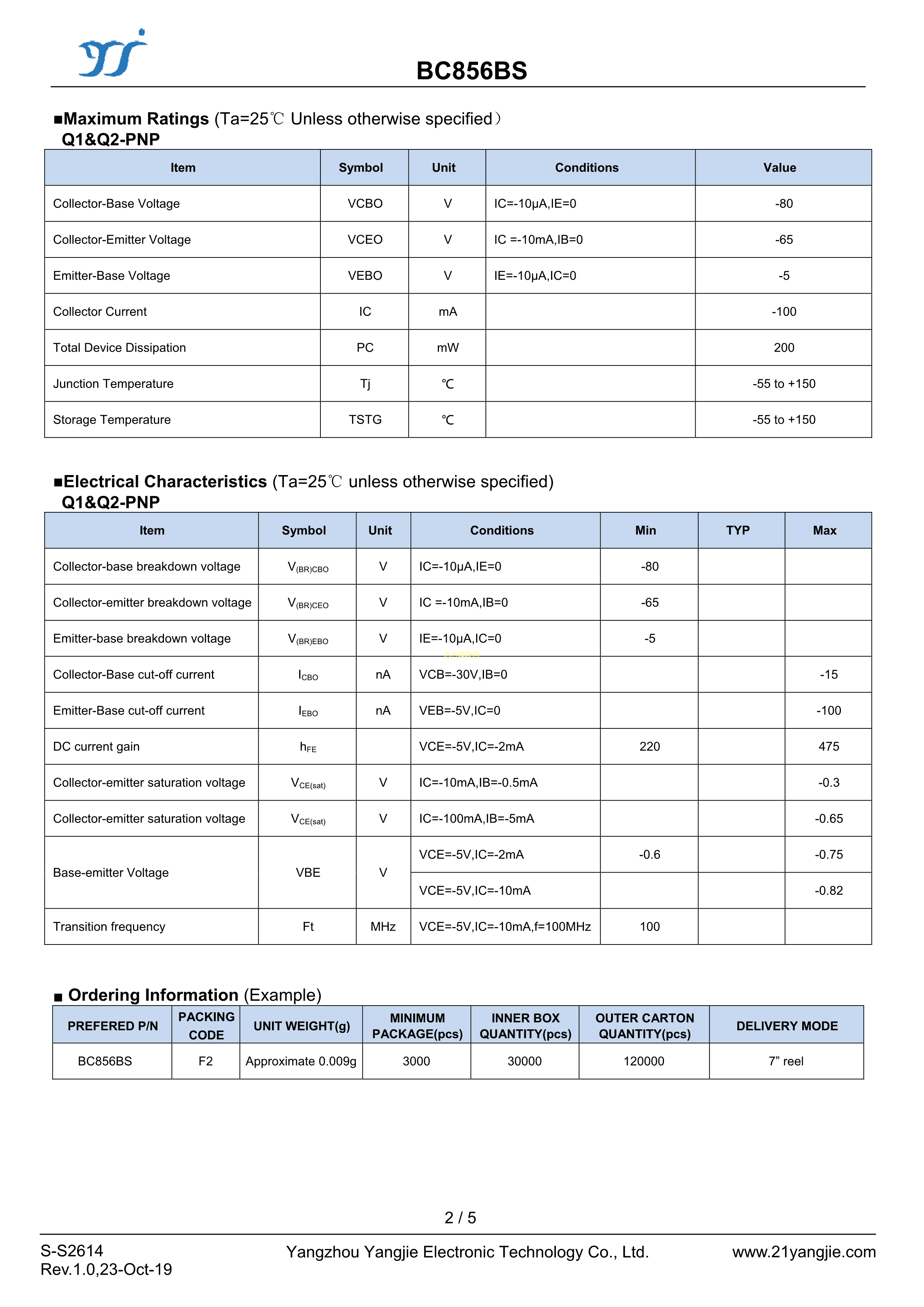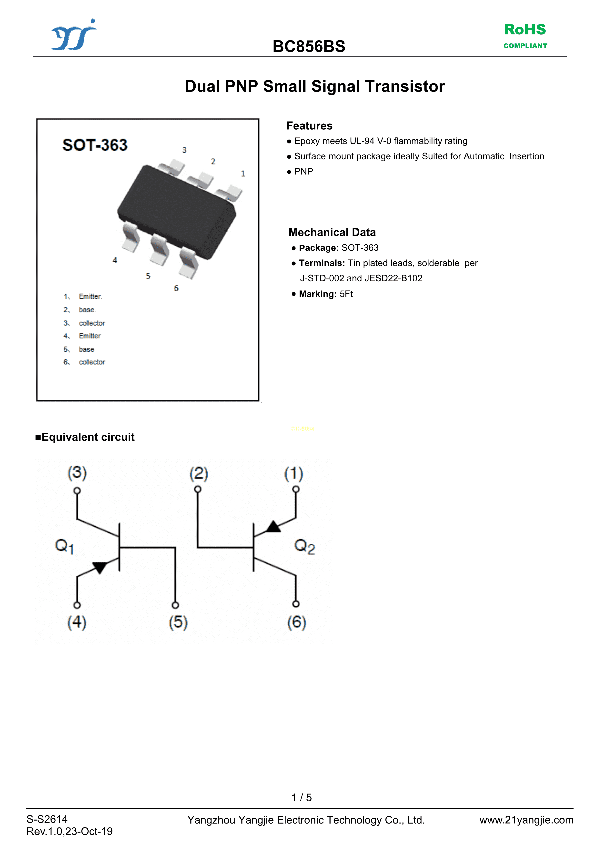 BC856BS数据手册SOT-363封装YANGJIE(扬杰)PDF规格书,中英文下载