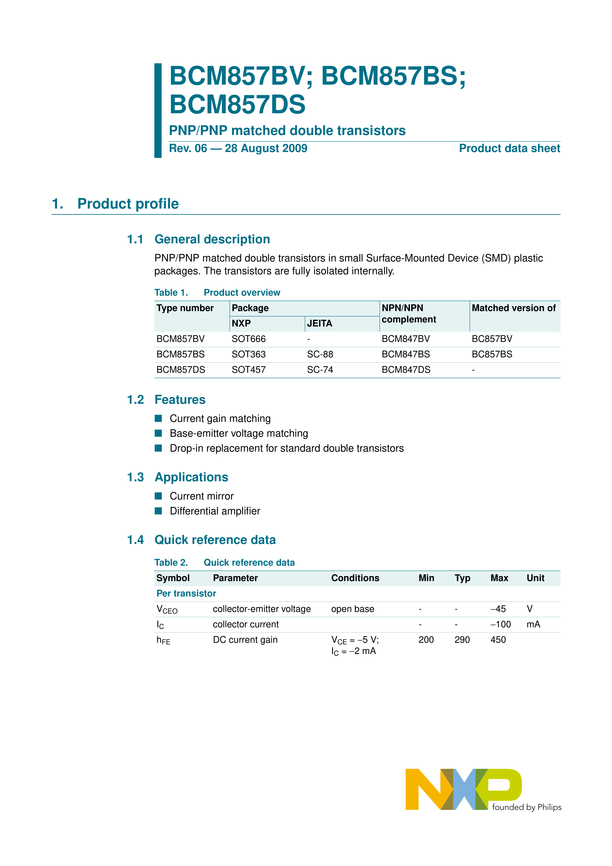 BCM857BV115数据手册SOT-666封装Nexperia(安世)PDF规格书,中英文下载