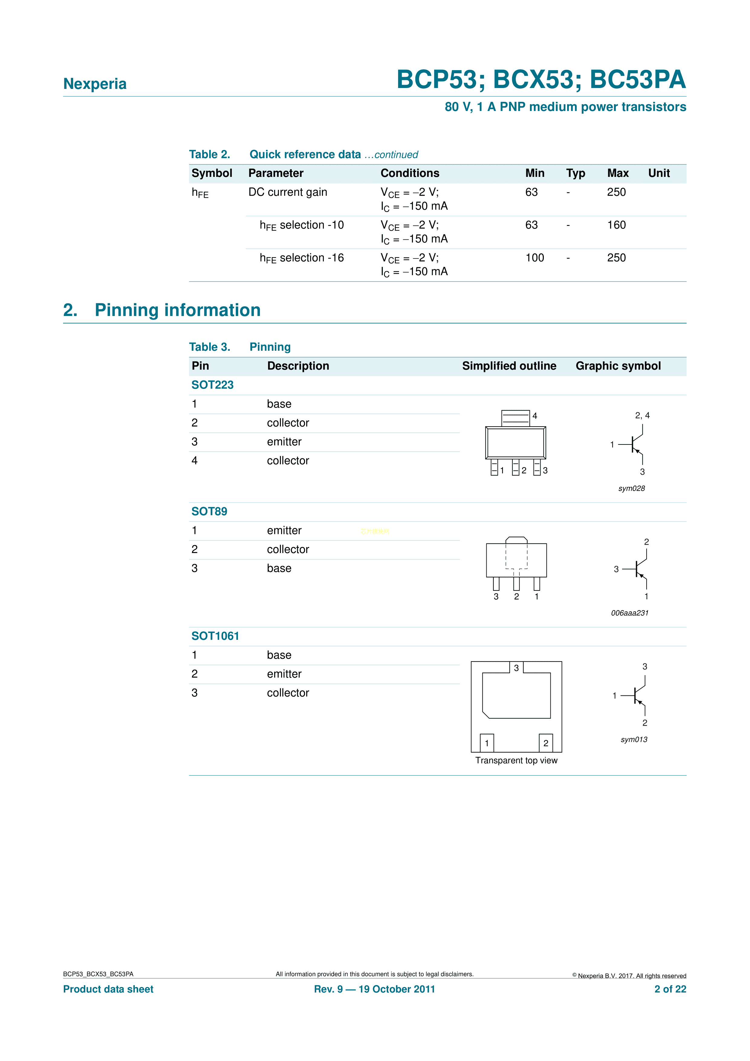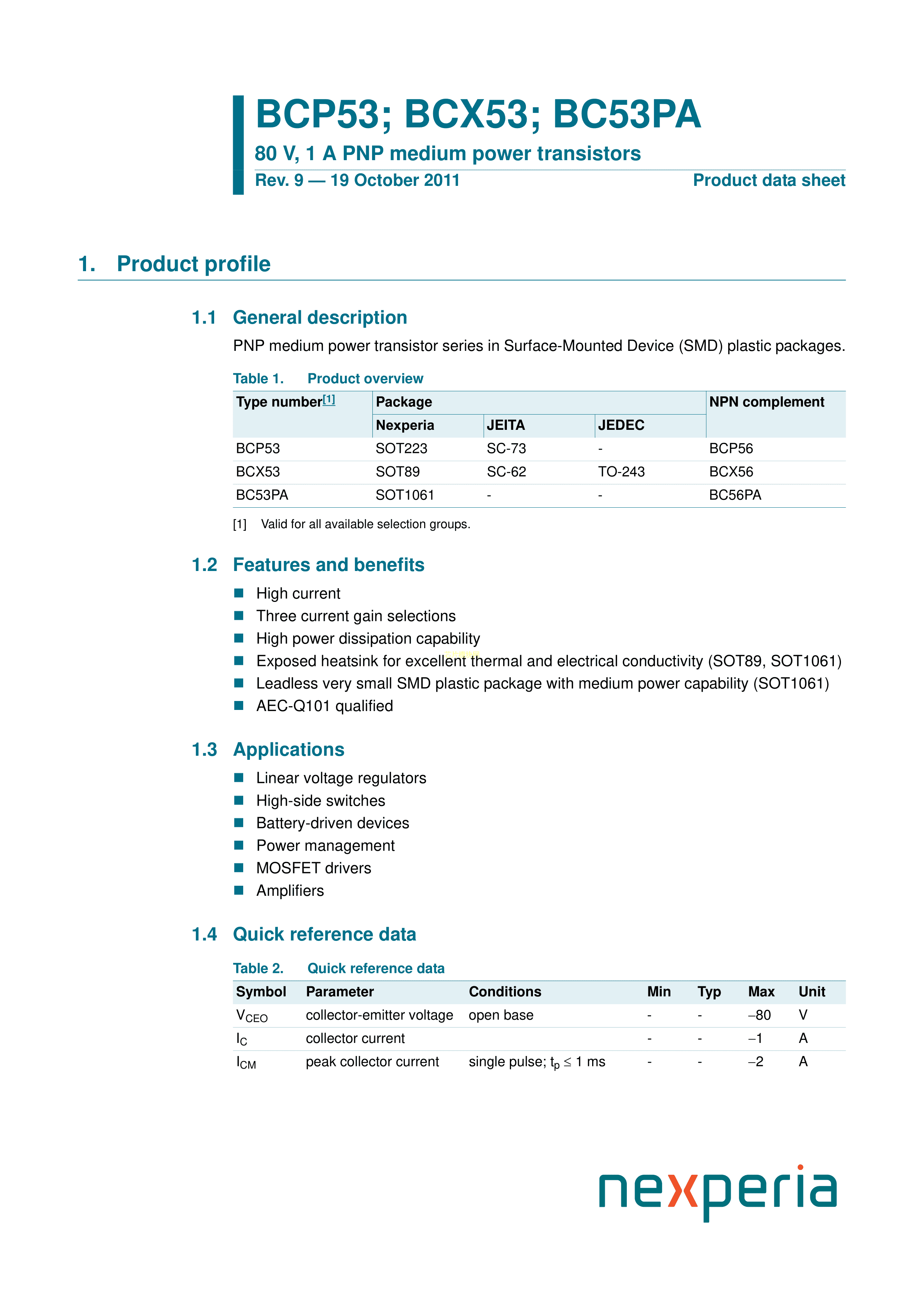 BCP53-10115数据手册SOT-223封装Nexperia(安世)PDF规格书,中英文下载