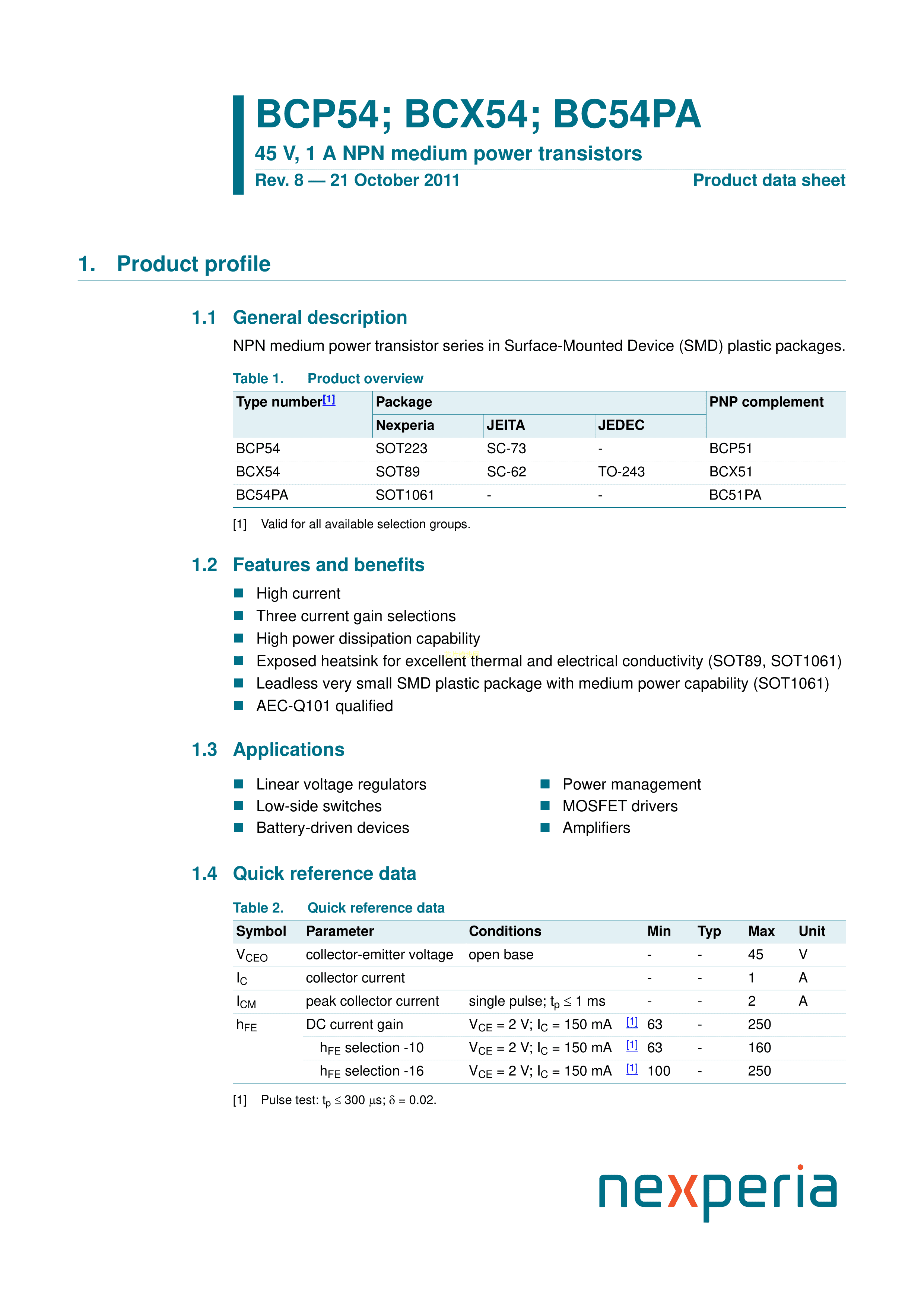 BCP54135数据手册SOT-223封装Nexperia(安世)PDF规格书,中英文下载
