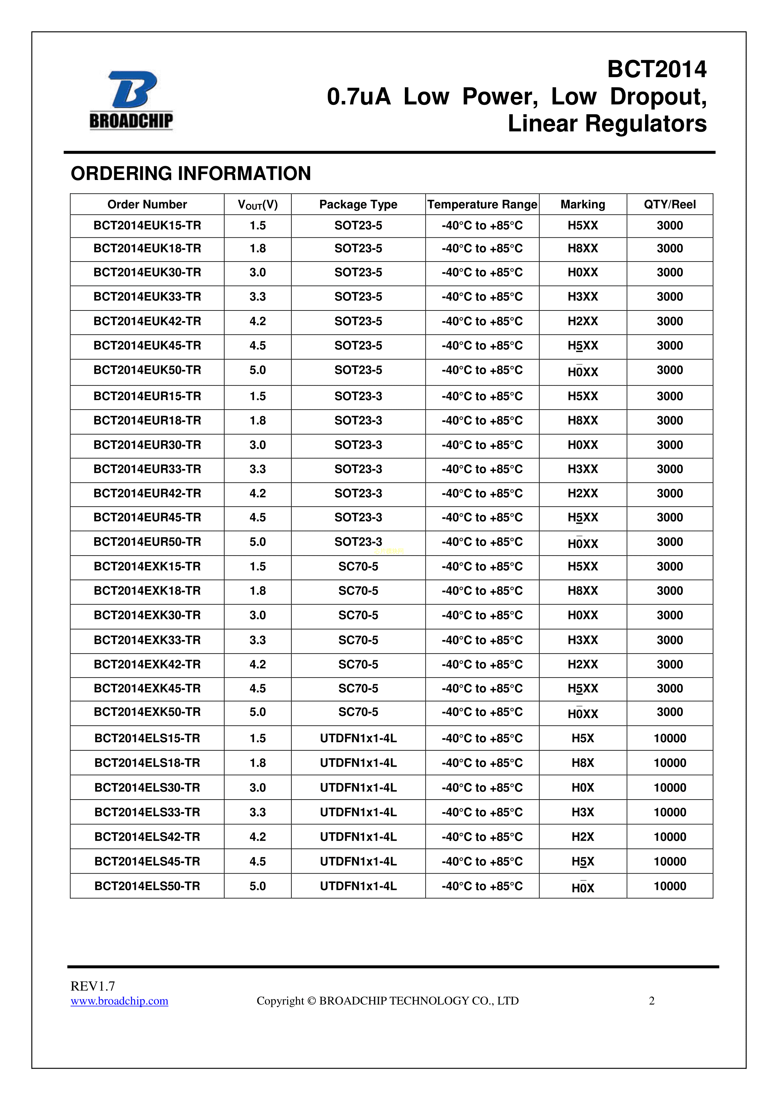 BCT2014EJR18-TR数据手册SOT-89-3封装BROADCHIP(广芯电子)PDF规格书