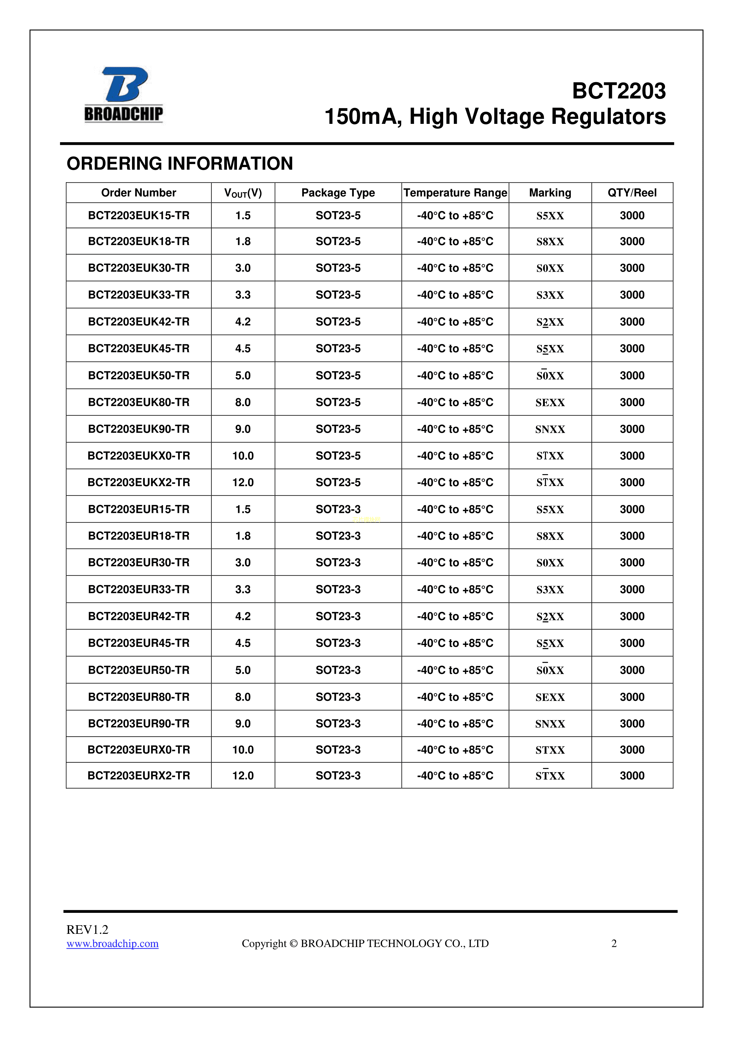 BCT2203EJR33-TR数据手册SOT-89-3封装BROADCHIP(广芯电子)PDF规格书
