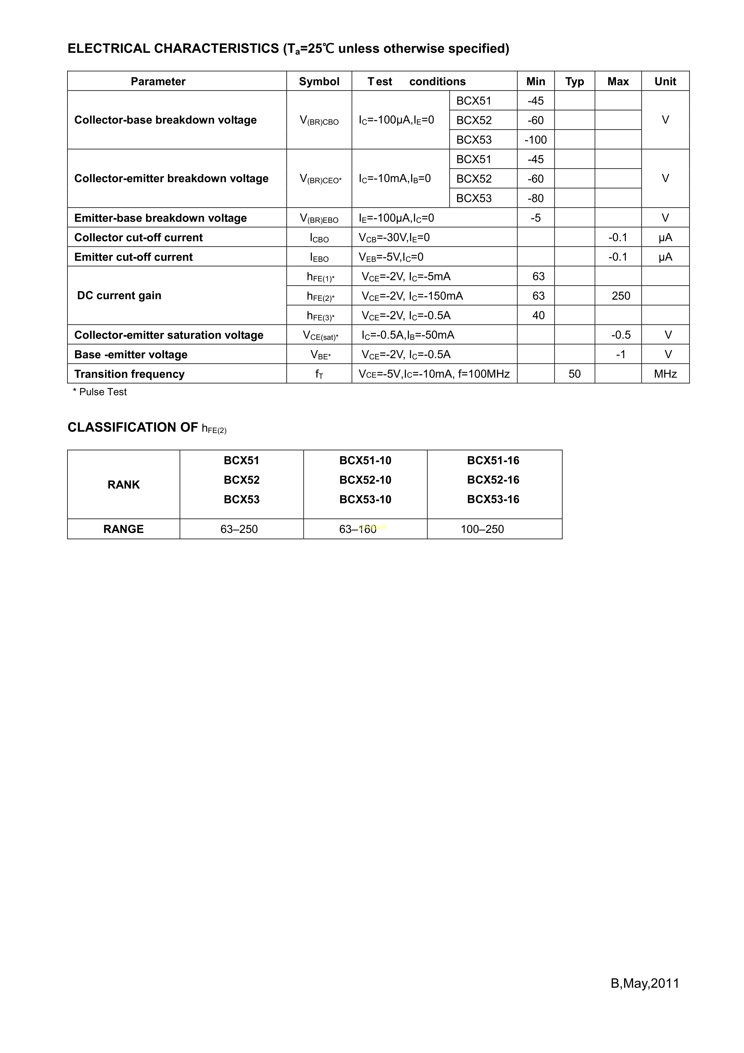 BCX51-16数据手册SOT-89(SOT-89-3)封装CJ(江苏长电-长晶)PDF规格书,中英