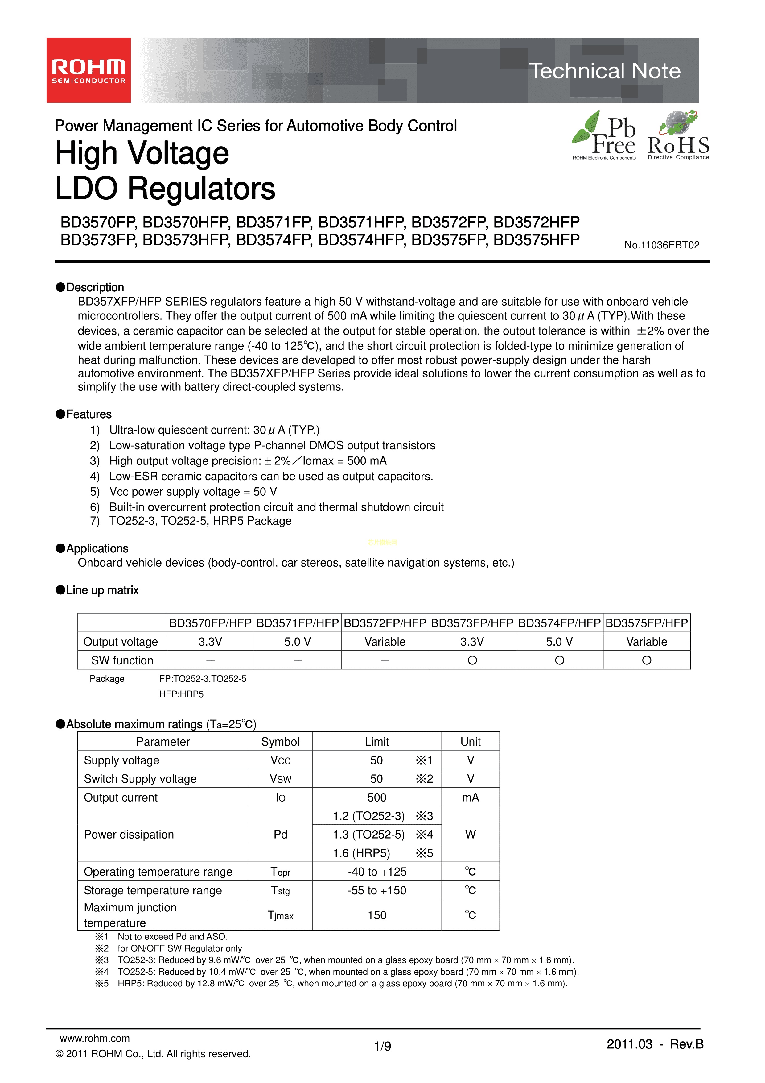 BD3570FP-E2数据手册TO-252-2(DPAK)封装ROHM(罗姆)PDF规格书,中英文下