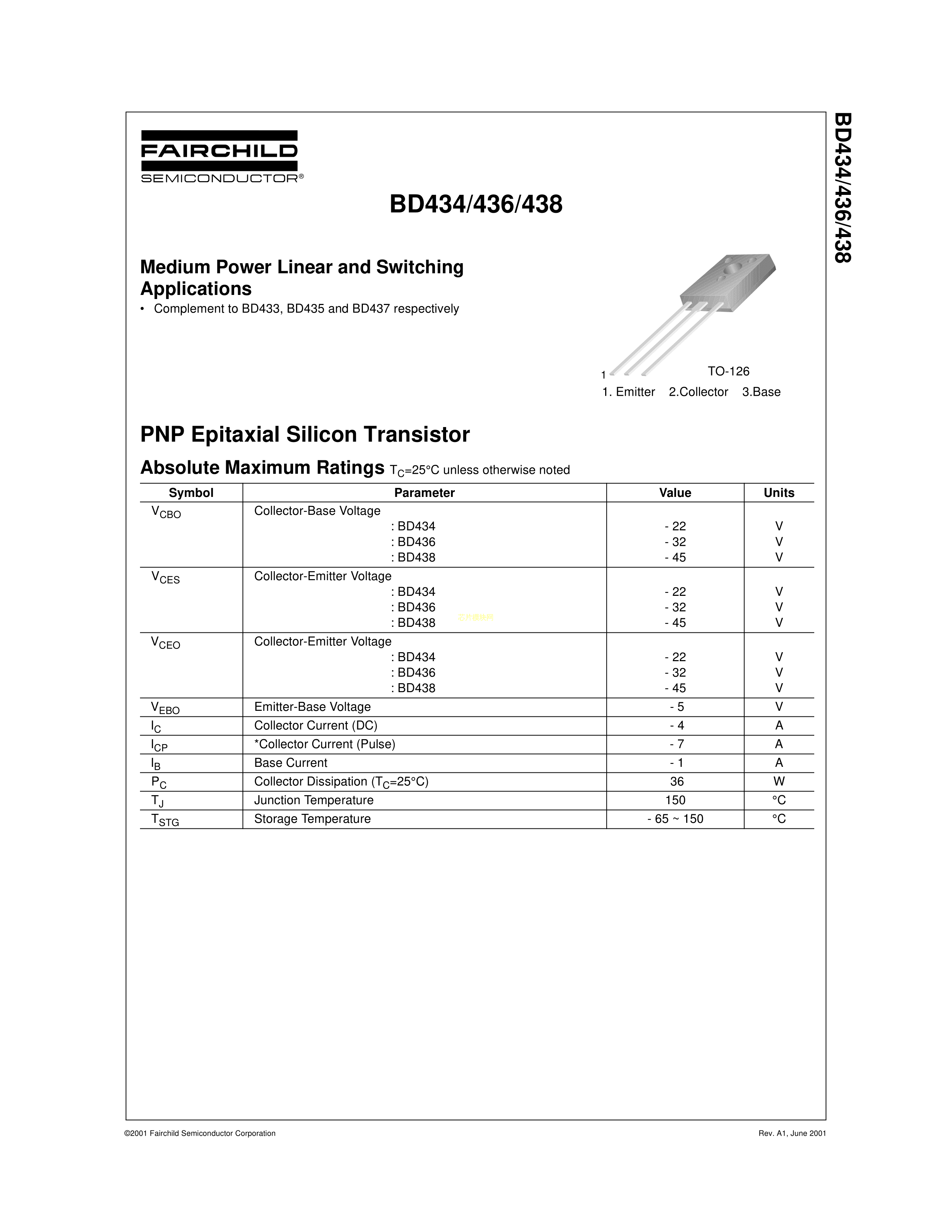 BD434S数据手册TO-126封装onsemi(安森美)PDF规格书,中英文下载