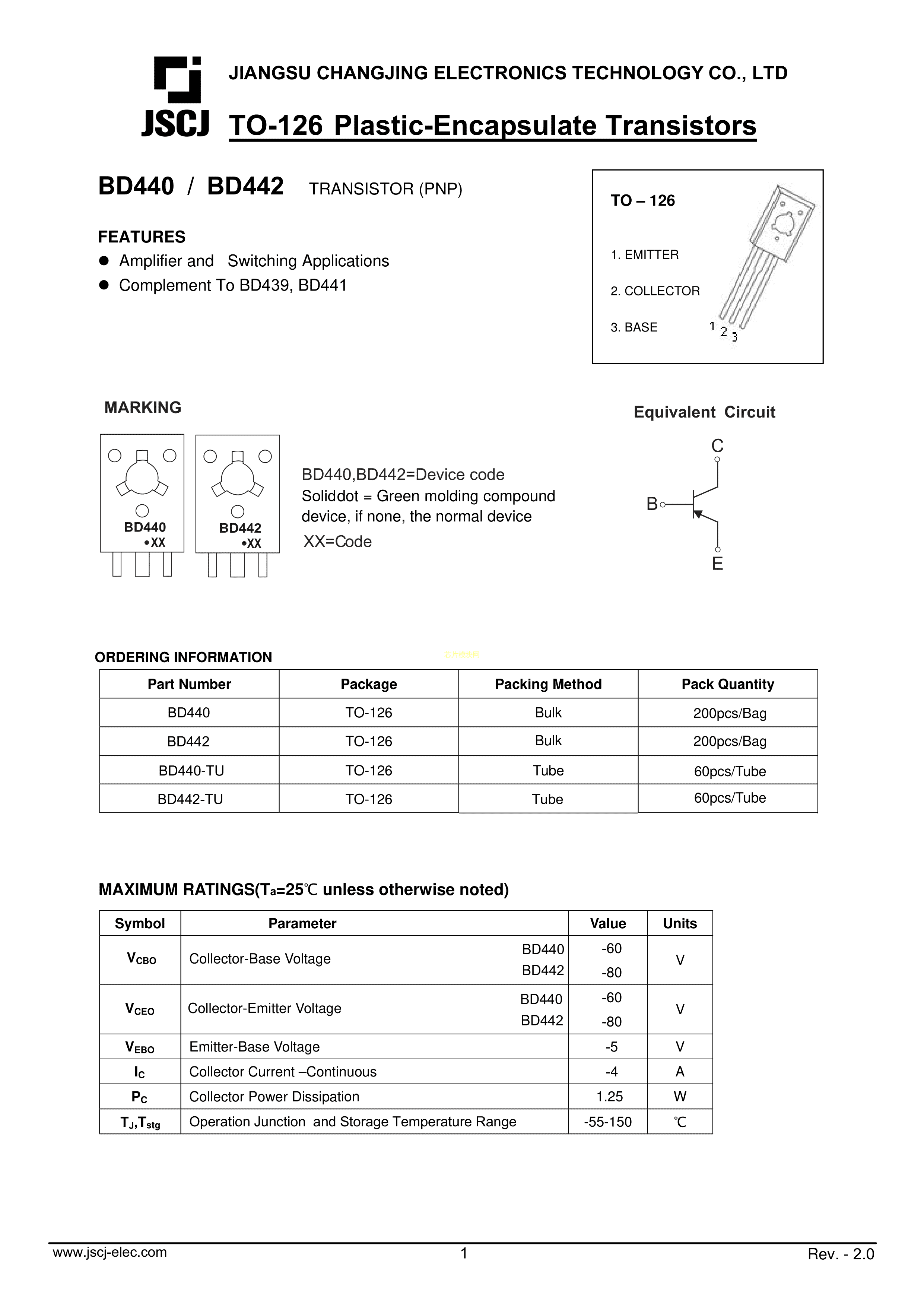 BD440数据手册TO-126封装CJ(江苏长电-长晶)PDF规格书,中英文下载