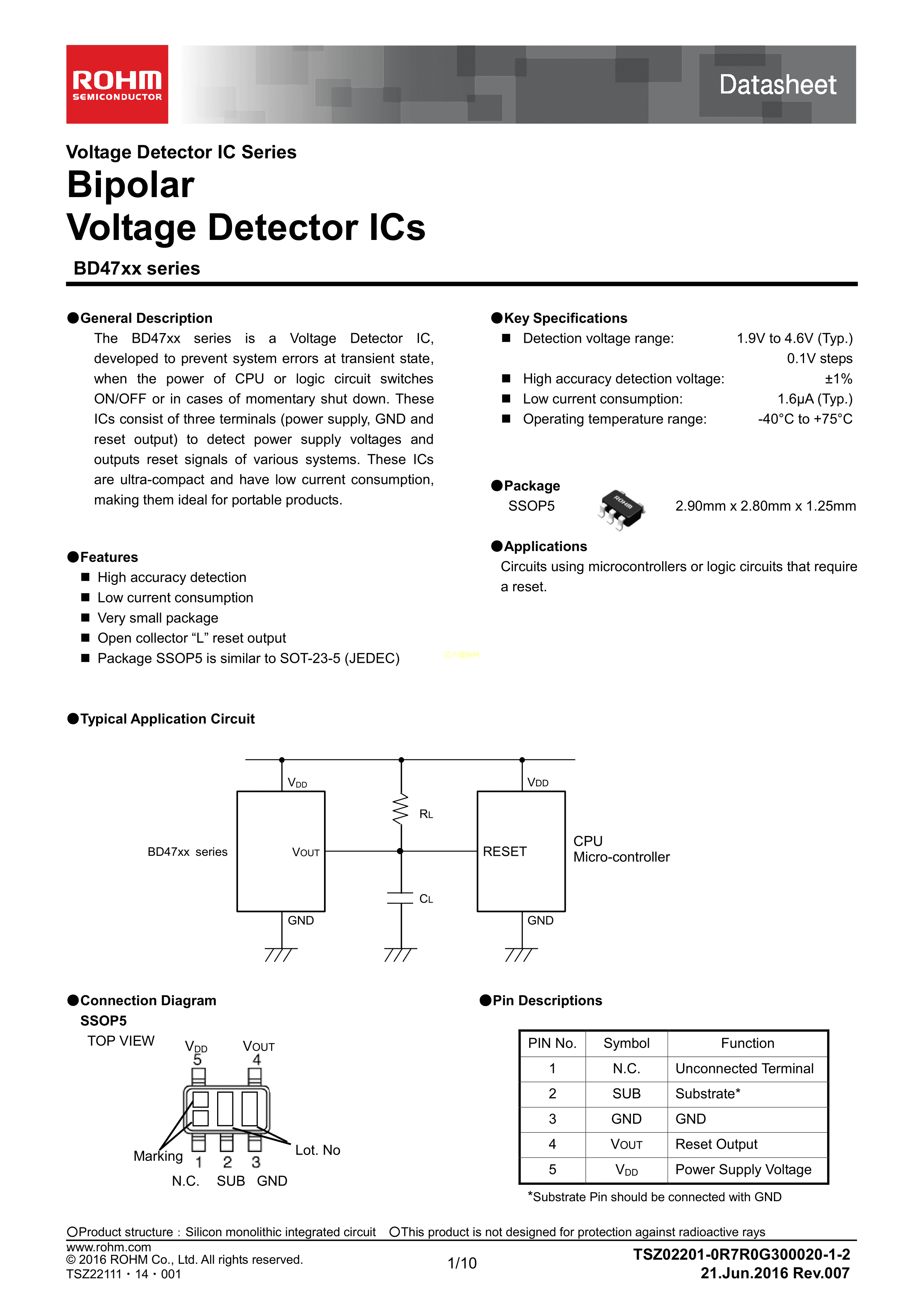 BD4723G-TR数据手册SSOP-5封装ROHM(罗姆)PDF规格书,中英文下载