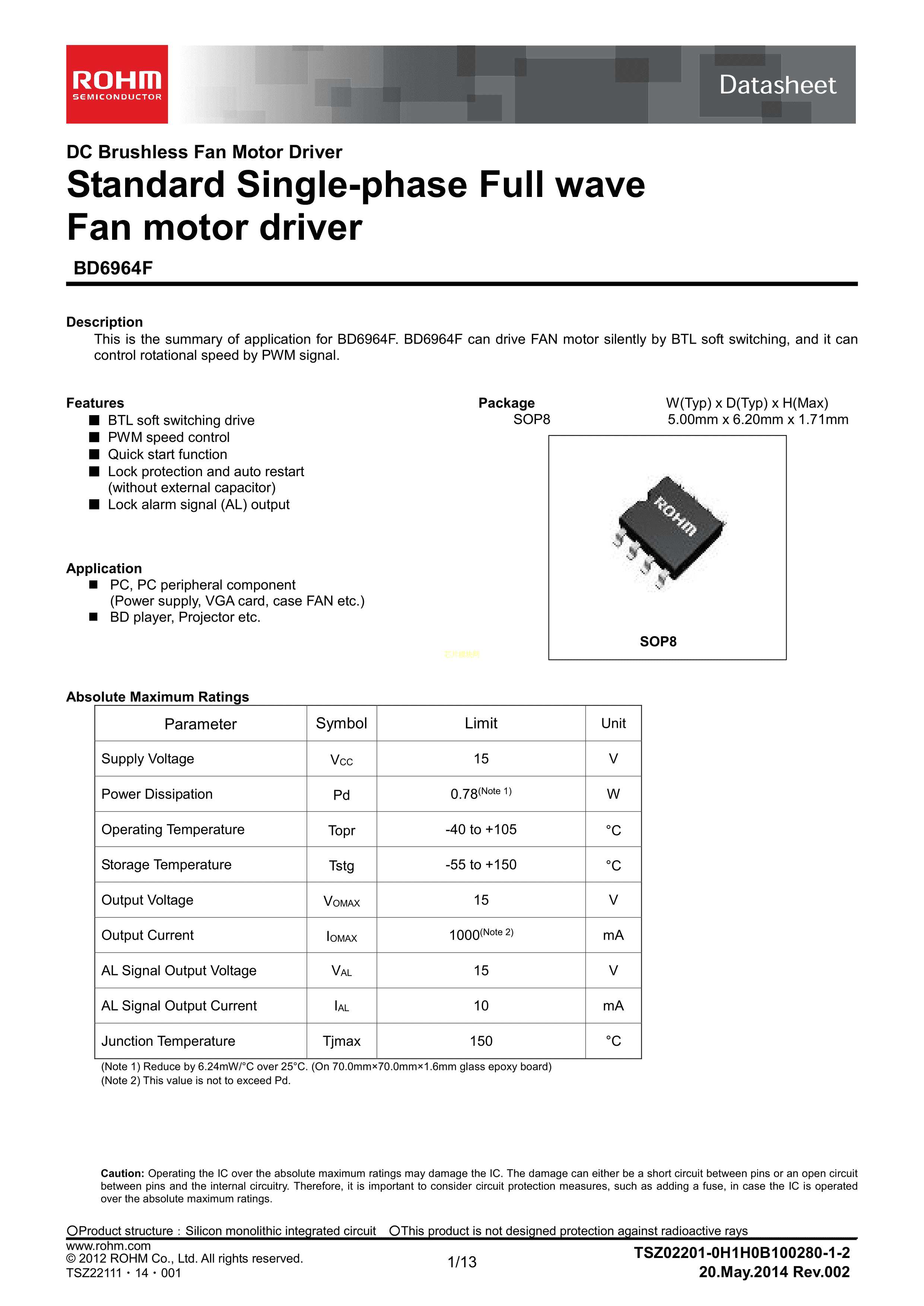 BD6964F-GE2数据手册SOP-8封装ROHM(罗姆)PDF规格书,中英文下载